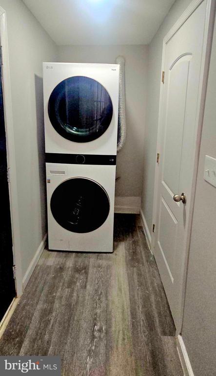 Dryer-front loading, Oven-Single, Refrigerator, Stainless Steel Appliances, Washer-front loading, Washer/Dryer Stacked, Stove