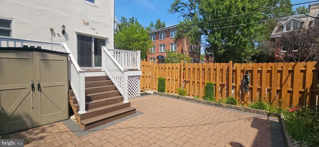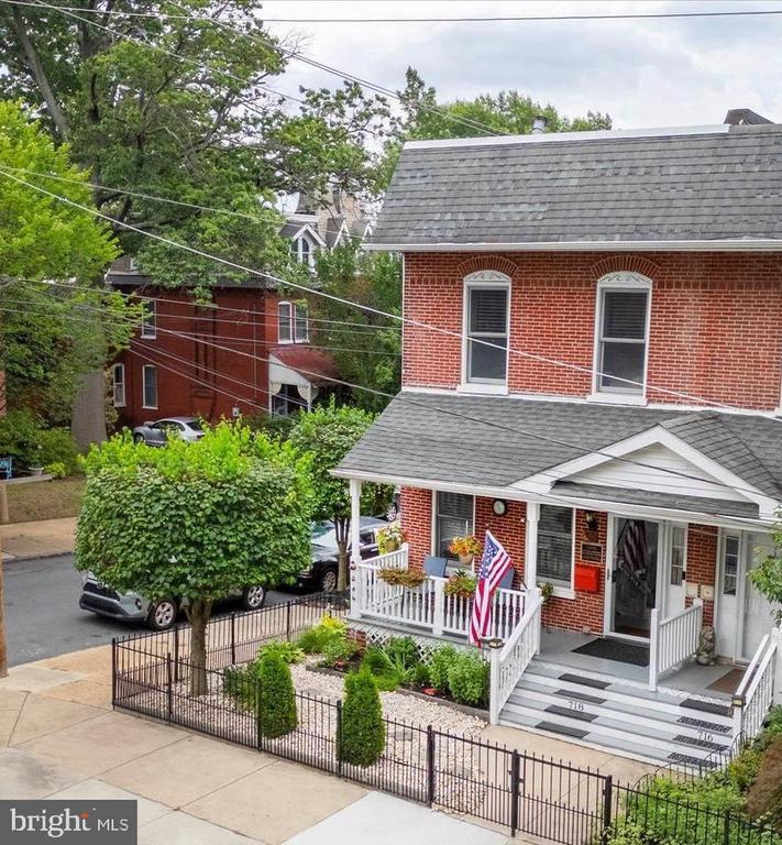 Historic Cool Spring property turn key ready! Renovated spacious corner twin overlooking Tilton Park. Charming front yard with welcoming front porch. Enter you will see the remarkable high ceilings and open floor plan. Great light and flexible living/ dining area. Main level also includes powder room and large eat in kitchen, stainless steel appliances and ample 42" cabinetry. Sliding glass doors leads you to entertaining size "trex" deck with paver landscaped fenced in low maintenance backyard. Street entry lower ground level has finished au pair / in law suite with bedroom, full bath, living room and kitchenette. Additional storage in basement. The grand staircase to upper level from main level living room provides the feel of a much larger home. Upper level has main bedroom with ensuite bathroom , two additional bedrooms with jack and jill bathroom. Upper level laundry room. Some recent updates include new HVAC in 2024. Enjoy living in the popular Cool Spring neighborhood with its award winning cafe, historic sites and parks, annual festivals , Cool Spring Reservoir, the city's largest organized community garden, porch parties, convenient to 95 Exit 7, Rt 52 Corridor, Downtown, Little Italy , and nearby Trolley Square. Ample street permit parking .