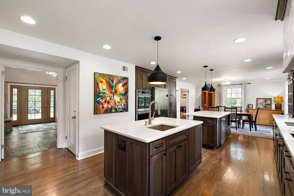 Discover your dream home in the heart of Woodbrook, one of North Wilmington's most cherished neighborhoods! This beautifully updated 4-bedroom, 2.5-bath residence is a true gem, offering a harmonious blend of modern elegance and cozy charm. Step inside to be greeted by a welcoming covered porch with natural, serene views of deeded parkland. A grand two-story foyer sets the stage for the stunning interior that awaits. The heart of the home is its gourmet kitchen, a culinary oasis featuring high-end finishes, two expansive islands, both a full-size refrigerator and freezer, and 2 smart convection ovens featuring advanced technology to integrate with your choice of smart device. The oven’s intuitive touchscreen interface features a culinary center with curated recipes and cooking guides. Whether you're a passionate cook or love hosting gatherings, the kitchen's abundant storage, seating, and cooking space will exceed your expectations. Adjacent to the kitchen, the dining area invites you to entertain effortlessly, flowing seamlessly into the open-concept space. A dedicated USB charging station at the doorway into the kitchen keeps mealtimes uninterrupted. To the left, the large living room boasts a fireplace with a wood-burning stove insert, perfect for cozying up on chilly evenings. To the right, the spacious family room offers a second wood-burning fireplace with a striking stacked stone hearth, providing an ideal backdrop for relaxation and conversation. The main level also includes a stylishly updated powder room, a convenient laundry room with a chute from the second floor, and a serene screened porch where you can unwind with a good book or enjoy the fresh air. Venture upstairs to find four generously sized bedrooms, each with ample closet space and beautiful hardwood floors. The primary suite is a tranquil retreat, featuring an ensuite bath with heated floors, a luxurious steam shower, and a Japanese-style soaking tub for complete relaxation. A walk-in closet and additional storage space add to the suite's allure. The hall bath is elegantly appointed with a double sink vanity and a tub/shower combination. This home is brimming with thoughtful updates, including new tile flooring in the back hallway, new hardwood floors in the kitchen, and upgraded Anderson and Pella windows in key areas. A newer roof, siding, HVAC system, front and back doors, and tankless water heater ensure peace of mind. The extra-deep two-car garage, complete with a new carriage-style door and added attic insulation, offers both functionality and style. Unfinished basement with egress offers generous space for all your storage needs. Plenty of room in the almost acre yard for gardening or recreational activities like enjoying the fire pit on a cool evening. Enjoy growing your own veggies in the fenced in area that will keep nature’s visitors out. Situated in a prime location, you're just a short stroll from the DuPont Country Club, where golf, tennis, pickleball, swimming, and more await. Drive to the clubhouse in under three minutes for ultimate convenience. Easy access to Concord Pike for quick commute to numerous restaurants and shops, downtown Wilmington and train station, and an easy connection to I95 to get to the Philadelphia International Airport which is less than 30 miles away. Don't miss the opportunity to make this remarkable house your home. Experience its incredible features and inviting atmosphere today!