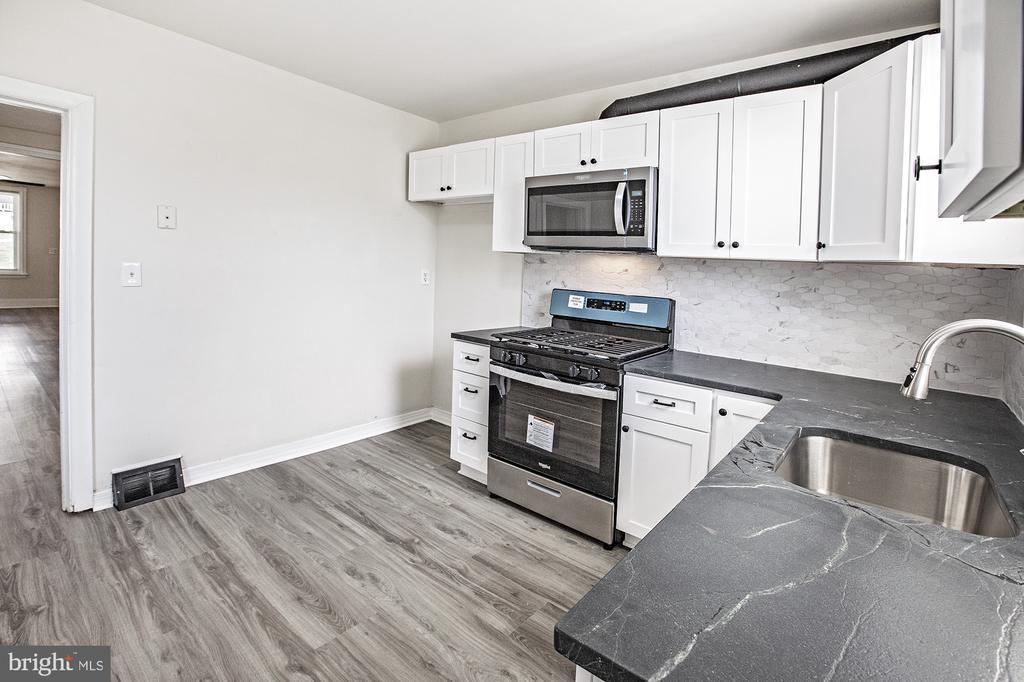 Stay cool all summer long in this beautifully updated 3 bedroom townhome with Central Air conditioning located in the sought-after Hilltop section of Wilmington. This home has been recently refreshed with a host of new finishes throughout. Step inside to discover a welcoming covered front porch, perfect for enjoying the outdoors. The open floor plan on the main level is highlighted by a brand new kitchen boasting white shaker cabinets with plywood sides and dovetail drawers. The kitchen also features leathered granite countertops, stainless steel appliances (including a microwave that vents to the outside), and a stylish marble look backsplash. The flooring has been completely replaced in this home, with wood look luxury vinyl plank on the first level, complete with an extra durable wear layer. Upstairs, you'll find all three bedrooms, each featuring plush gray wall-to-wall carpeting for added comfort. The bathroom has been spruced up with modern touches and finishes. One of the standout features of this home is the bonus porch on the second level, offering breathtaking city skyline views, perfect for relaxing or entertaining guests. Don't miss out on this opportunity to own this tastefully updated home in a convenient and desirable location.