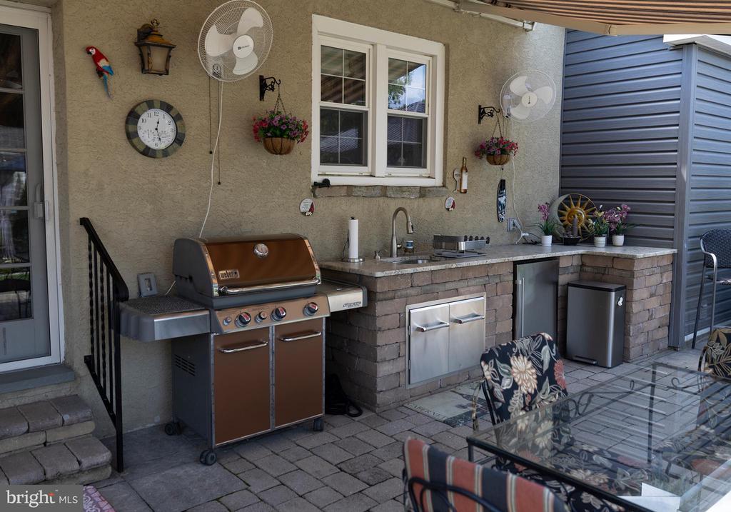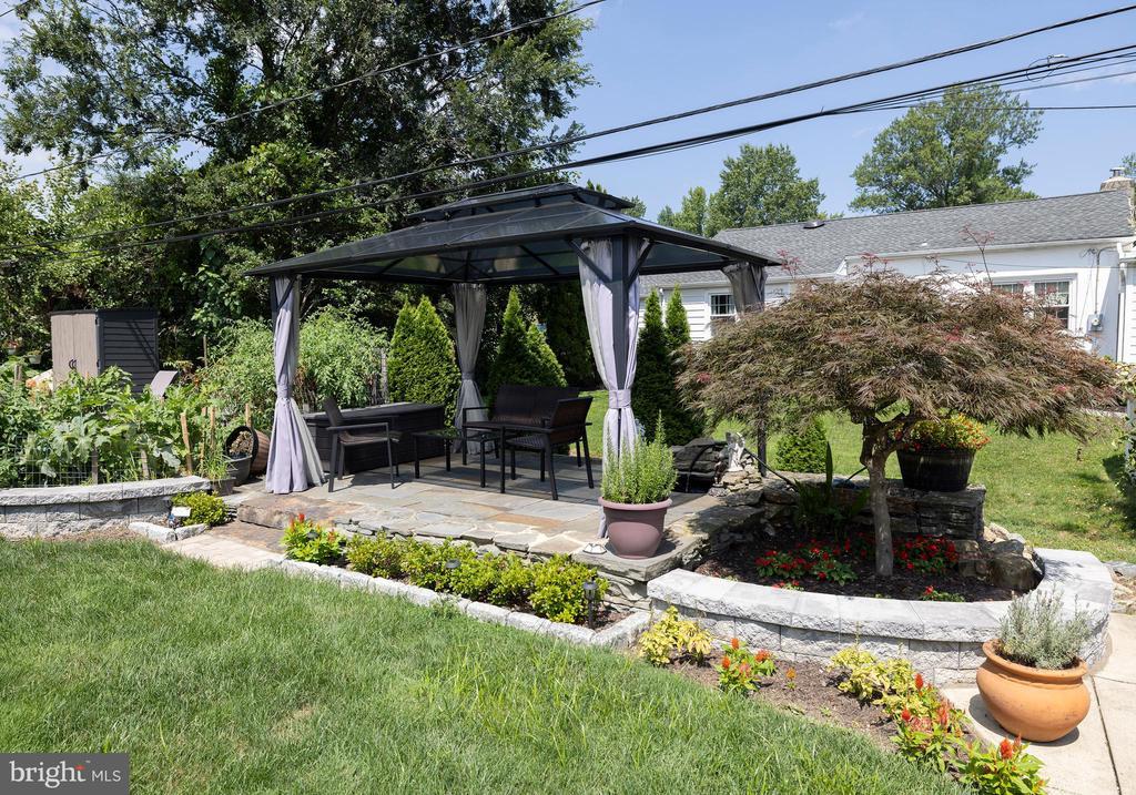 Awning(s), BBQ Grill, Extensive Hardscape, Exterior Lighting, Flood Lights, Gutter System, Street Lights, Water Fountains, Other, Patio, Porch(es)