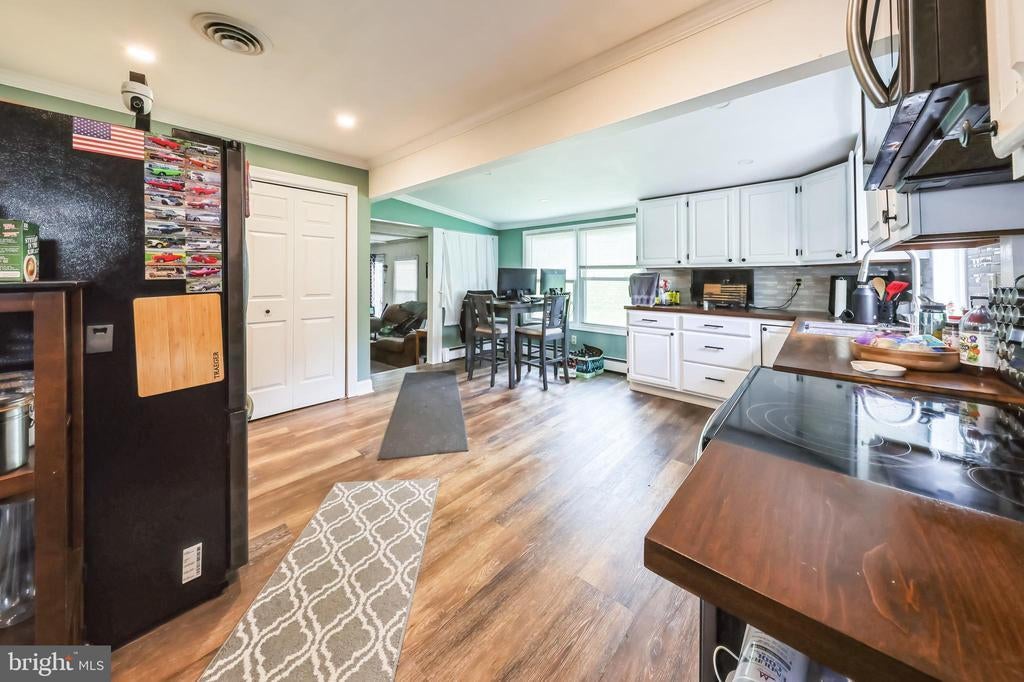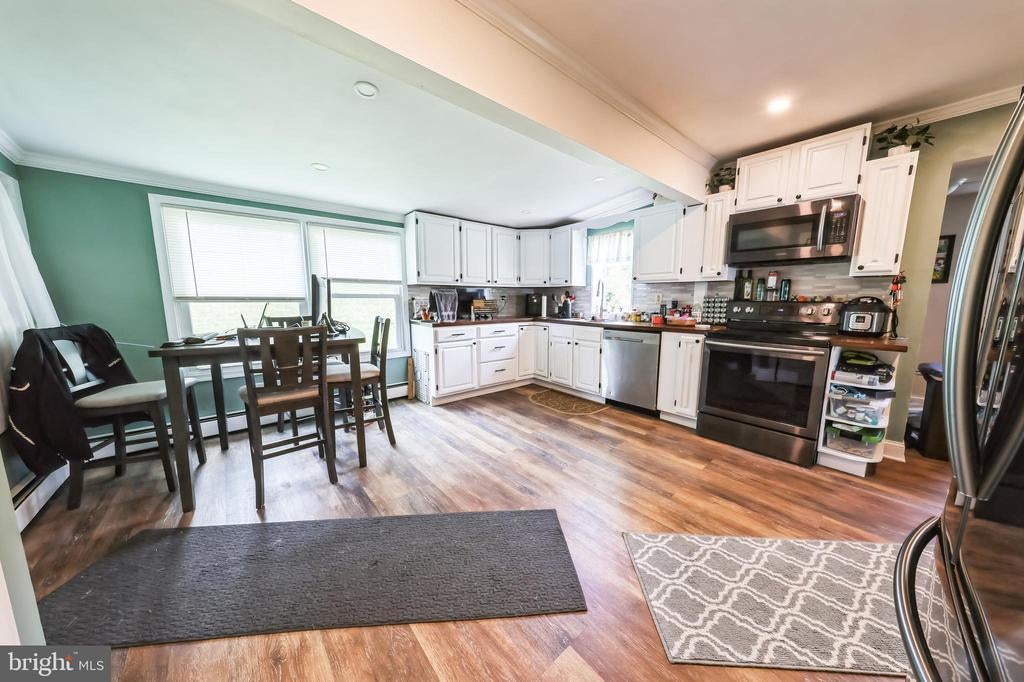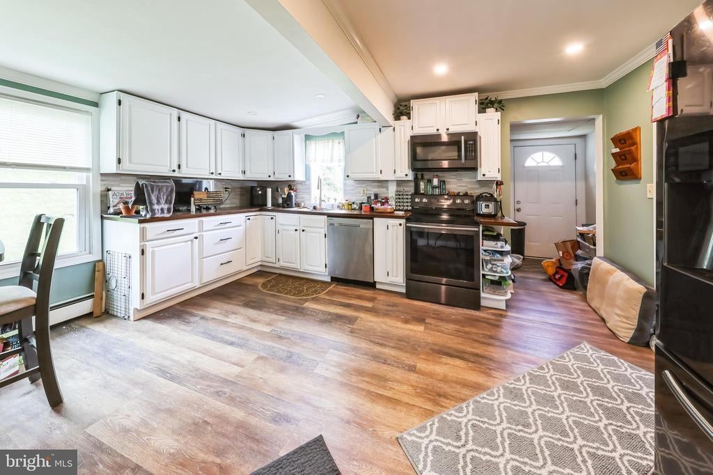 Welcome to 2472 Hammond Place, a beautifully maintained rancher located in the highly sought-after Kirkwood Gardens community of Wilmington. Offering 3 spacious bedrooms and approximately 1,500 square feet of living space, this home blends comfort, functionality, and timeless appeal. From the moment you step inside, you’ll appreciate the inviting open-flow layout designed for both relaxation and entertaining. The large living room features rich vinyl plank flooring, a charming brick wood-burning fireplace, and an oversized front window that fills the space with natural light. Just beyond, the bright and airy kitchen boasts classic white cabinetry, stainless steel appliances, luxury vinyl flooring, recessed lighting, and a generous pantry closet. With plenty of room for a dining table, it’s perfect for casual meals or hosting family and friends. At the rear of the home, the family room offers a warm, cozy retreat with its wood-burning stove, vinyl plank flooring, multiple windows, and sliding glass door leading to the deck. This seamless connection to the outdoors makes it easy to enjoy your morning coffee or evening gatherings in the fresh air. The primary bedroom is comfortably sized and features plush carpet, a ceiling fan with overhead light, and large windows. Two additional bedrooms provide versatility for guests, a home office, or hobbies, each with ample closet space. The hall bath showcases a large vanity, full mirror, and attractive tile flooring, while a convenient laundry room is located just off the kitchen for easy access. Set on a 0.18-acre lot, the exterior offers a low-maintenance yard, a ground-level deck for outdoor enjoyment, and a well-kept shed for additional storage. A large driveway provides plenty of off-street parking. Recent upgrades to the major systems include a new roof (2024) & new AC (≈2020). Ideally situated, this home is close to popular restaurants, shopping centers, and just minutes from major highways, including Routes 7 and 4 and I-95, making commuting and daily errands a breeze. Whether you’re drawn to the warm interior charm, the convenient single-level living, or the excellent location, 2472 Hammond Place is move-in ready and waiting for you to make it your own. Schedule your private tour today and experience all this delightful home has to offer!