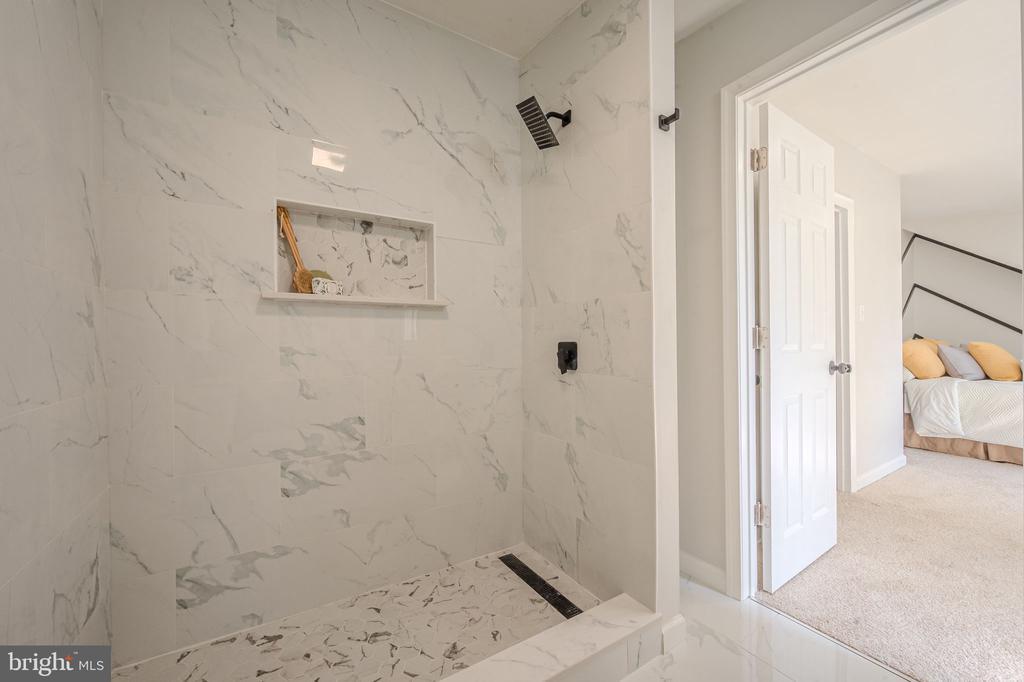 Stall Shower, Tub Shower, Bathroom - Walk-In Shower, Exposed Beams, Recessed Lighting