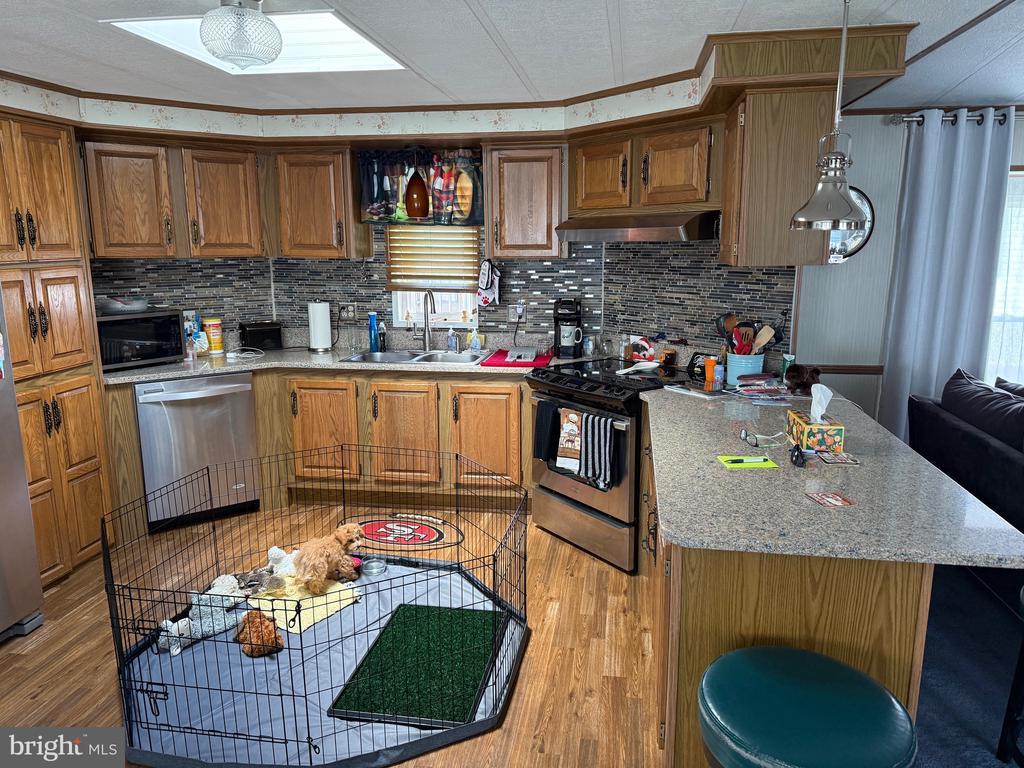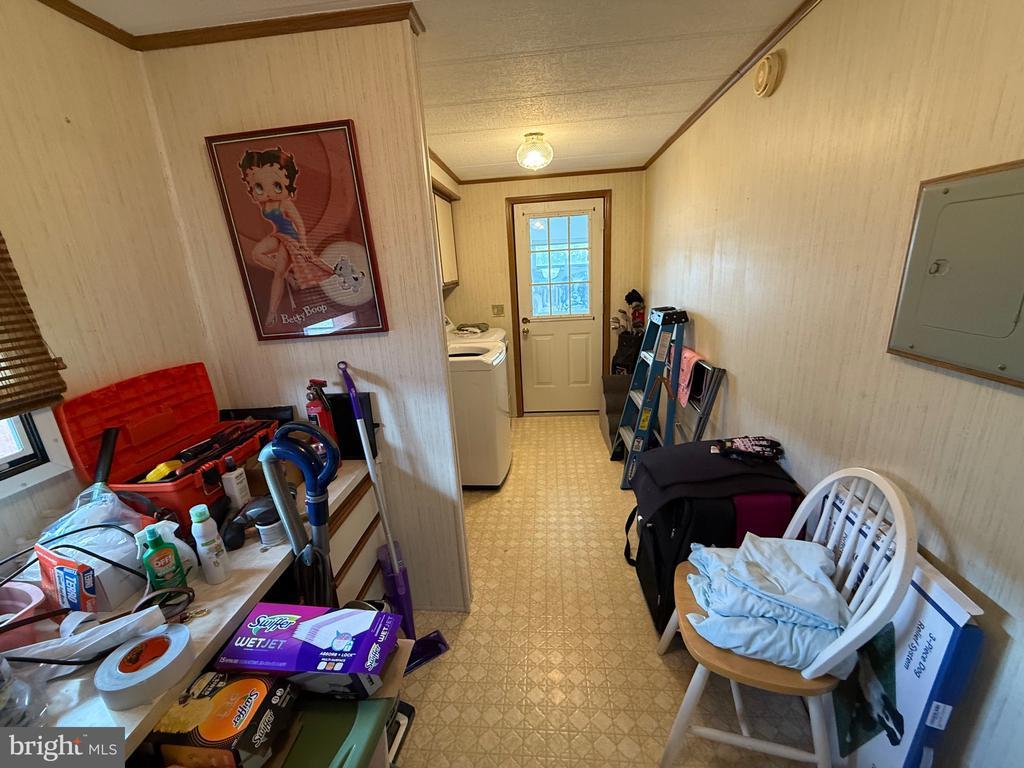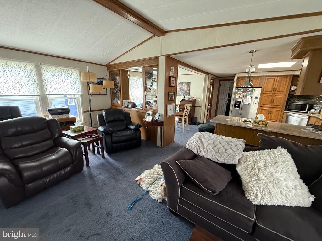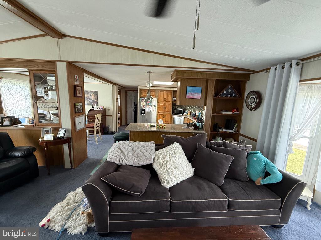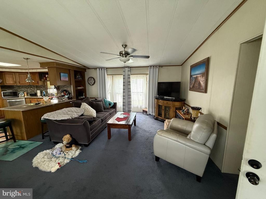 Beautifully updated and meticulously maintained mobile home with $30K+ in renovations, including 22 new windows ($13K), Hunter ceiling fans in every room, $3,200 custom shades, updated bathroom faucets, and new front porch flooring. Kitchen boasts granite countertops, tiled backsplash, double sink, flat-top stove, and Whirlpool stainless steel refrigerator and dishwasher. Both full baths feature Kohler toilets, new vanities, a shower stall, and vinyl flooring. The primary suite offers a walk-in closet, mirrored closets, and a private bath; the second bedroom has two closets and six built-in drawers. Two enclosed porches, including a beachy front porch, new berber carpeting, a ceiling fan with couches, and most decorations staying. Large shed with electric, flagpole, and most furniture included. Lot rent covers water, trash, and Xfinity cable. Exceptionally clean and available due to the seller relocating to Arizona. Call today!