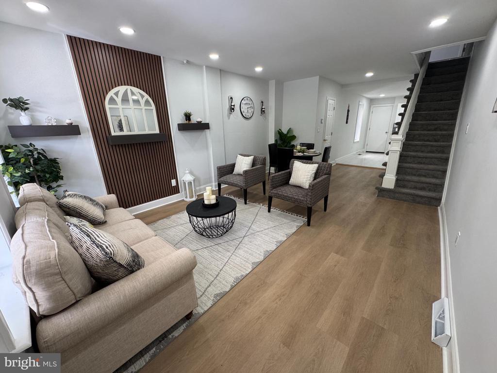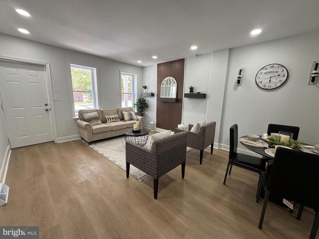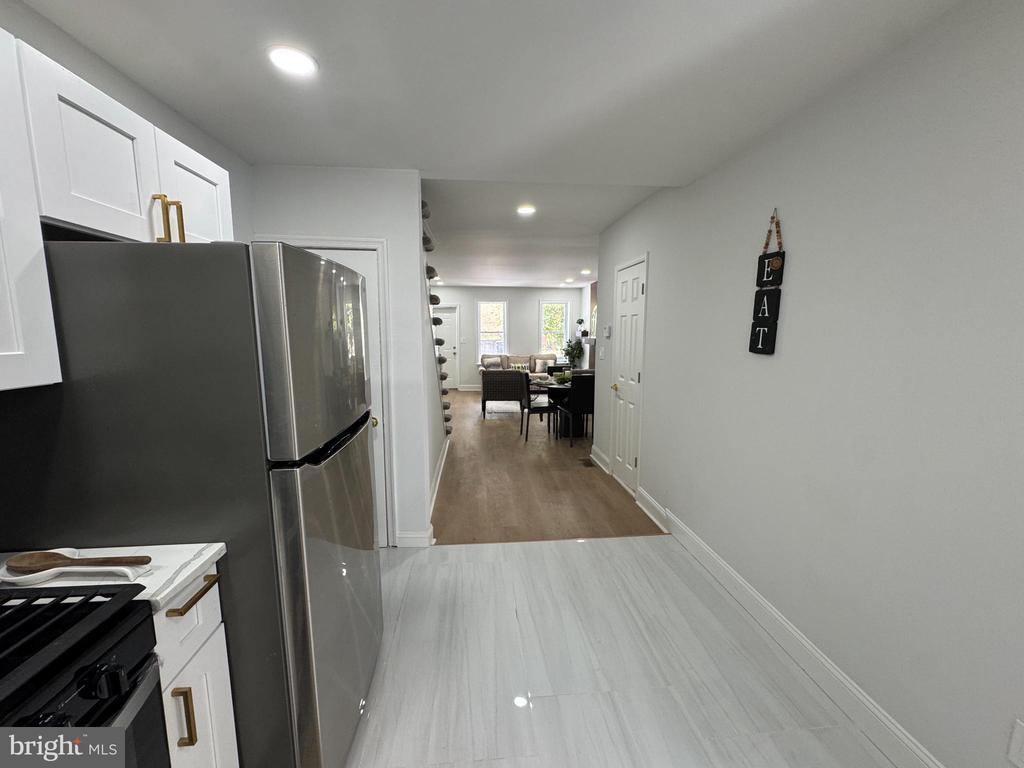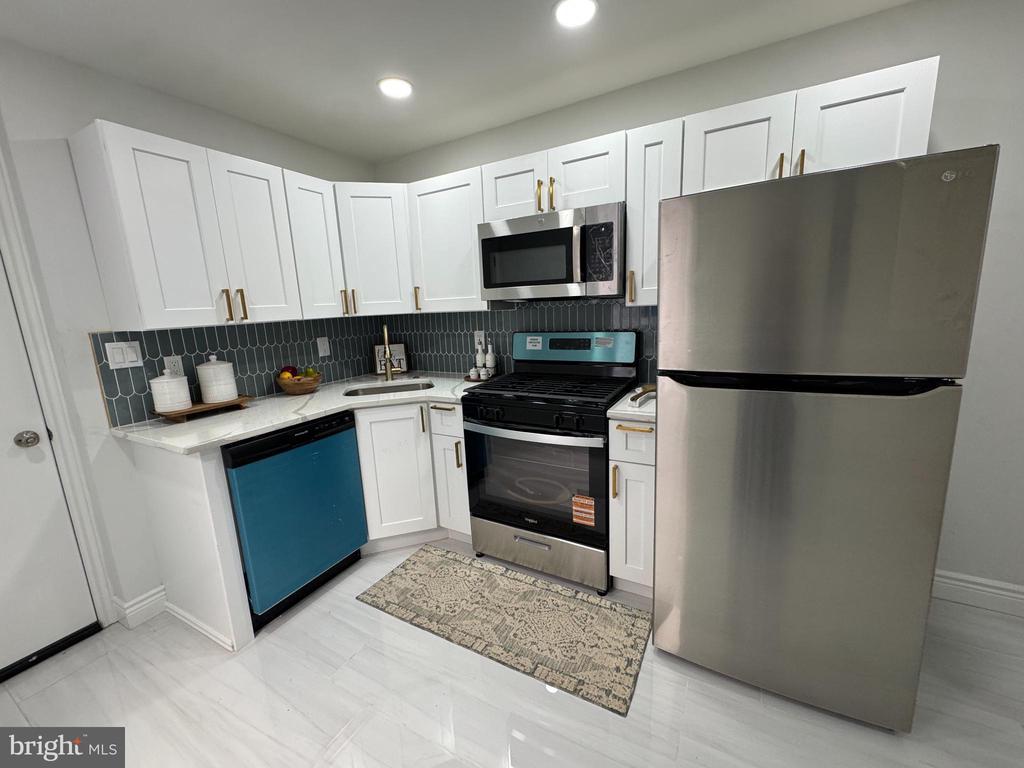 Step onto the spacious front porch and into a beautifully renovated townhouse where timeless charm meets modern living. This 3-bedroom, 1.5-bath home, originally built in 1900, has been thoughtfully updated with a full renovation in 2025—bringing today’s comfort and style while honoring its historic character. The open-concept first floor welcomes you with bright, airy living spaces and durable vinyl flooring that balances elegance with everyday practicality. The brand-new kitchen is a showstopper, featuring white shaker cabinets, quartz countertops, and stainless-steel appliances—perfectly designed for both daily meals and entertaining. A conveniently located powder room completes the main level. Upstairs, you’ll find three generous bedrooms, each offering a peaceful retreat, along with a beautifully updated full bathroom accented by striking blue tile and gold finishes. The basement provides abundant storage space with the option to finish into a workshop, playroom, or additional living area. Out back, relax on your charming deck—ideal for morning coffee or unwinding at the end of the day. On-street parking adds to the convenience of this move-in-ready home. Blending historic elegance with fresh modern updates, this property is more than just a home—it’s a place to create lasting memories. Don’t miss the opportunity to make this exceptional townhouse yours!