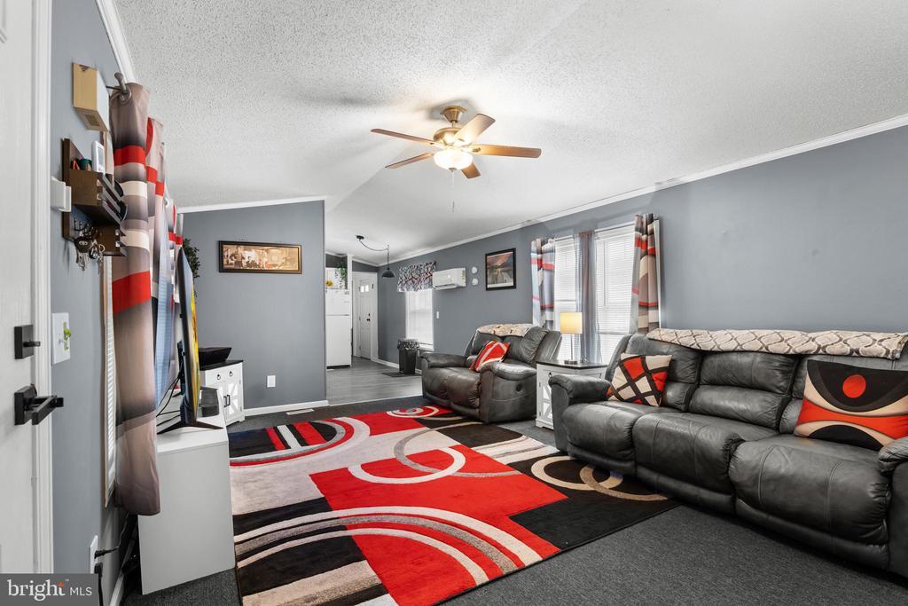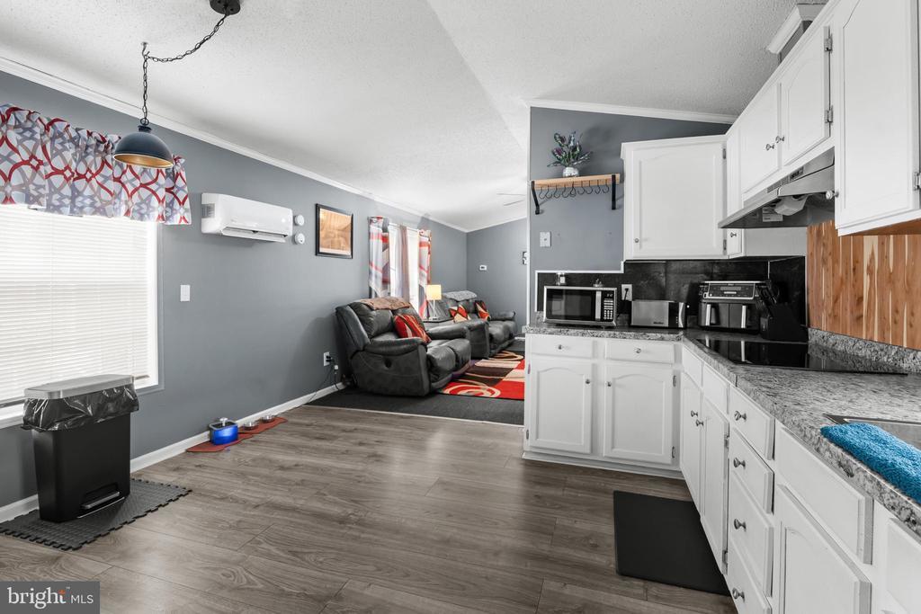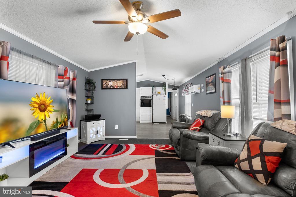 Welcome to 74 Kathy Ln in the desirable Murray Manor community. This well-maintained home offers 2 bedrooms and 2 full baths with an easy, open layout and LVP flooring and neutral paint throughout. Arrive to a private two-car driveway and an enclosed front porch—a great spot to relax most of the year. Inside, the central living room features an efficient, recently added mini-split for year-round comfort and flows into the eat-in kitchen with a flat-top stove, wall oven, dishwasher, and generous counter space. Tucked at the back of the home, the primary suite impresses with a vaulted ceiling, walk-in closet, and private bath. A second bedroom sits toward the front near a full hall bath and offers a wall-length closet for excellent storage. Outside, you’ll find a large shed with separate power, perfect for hobbies or extra storage. Community perks include water, sewer, trash pickup (5 days/week), and basic cable —all included—plus a convenient location just minutes to everyday essentials. Schedule your tour today!