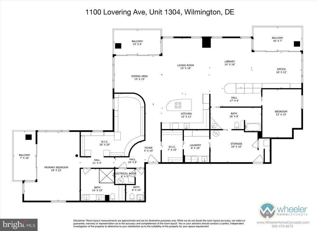 Indulge in the epitome of sophisticated living at Park Plaza Condominiums. Units 1304 and 1306 were combined to create a single residence unlike any other in the building. This exquisite 3,051 square foot retreat offers an open floor plan with two bedrooms and 2.1 baths, showcasing breathtaking views of Brandywine Park, downtown Wilmington, and Rockford Tower. The expansive open concept living area is adorned with cherry hardwood floors, complemented by a stainless-steel kitchen and custom cabinetry that elegantly delineates the living room, dining room, office, and bedrooms. Ample storage is thoughtfully integrated throughout the unit, including a generous bar area and walk-in closets. The master suite is a sanctuary of comfort, featuring a sitting area, sumptuous walk-in shower and bathroom, and a private balcony. Fully equipped laundry room and bonus storage room provide additional organizational options. Recent updates include new windows, balcony doors, and blinds, enhancing the residence's allure. In addition to the opulent interiors, Park Plaza offers a wealth of amenities, ensuring a lifestyle of ease and luxury. Residents enjoy assigned parking in an underground, gated garage along with the services of 24-hour front desk security located in a beautifully renovated lobby. The building amenities include a fully equipped fitness center, indoor pool and spa, community room, outdoor recreational space, and additional storage. Park Plaza Condominiums is a pet-free and smoke-free community, providing a serene living environment. Its prime location adjacent to Brandywine River Park with walking trails along the river and public pickleball, tennis & basketball courts, places you within minutes of the vibrant offerings of downtown Wilmington, including its offices, restaurants, arts venues, and Amtrak station with connections to Philadelphia, New York, and Washington. Trolley Square is nearby, offering an array of restaurants, pubs, coffee shops, grocery stores, and a pharmacy. This residence presents a rare opportunity to enjoy a refined lifestyle in an unparalleled setting.