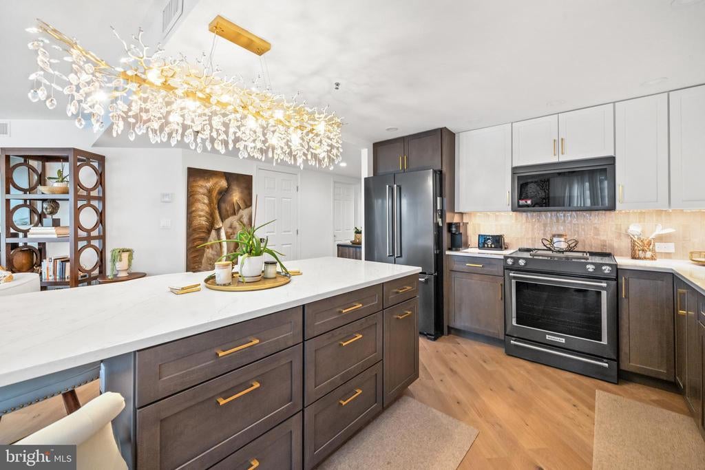 Park Plaza Living at Its Finest! This fully renovated one-bedroom plus den, two-bath residence has been transformed into a true luxury apartment. The stunning new kitchen features brand-new appliances, a gorgeous backsplash, and the largest island ever in Park Plaza—perfect for entertaining or everyday living. Quartz countertops and spectacular designer lighting throughout add to the elegance. The primary suite is tucked away at the back of the condo for privacy and includes an alcove—ideal for a home office or sitting area—along with a spacious walk-in dream closet and another closet. The flexible den space adds even more versatility to the layout. This condo also comes with a deeded parking space and a private storage locker. An additional tandem parking space and extra storage units are currently rented and may be transferred to the new owner if desired. Located in a 24/7 secured building, residents enjoy a brand-new lobby and an array of premium amenities: a fitness center, indoor pool, spa, community room, and outdoor recreation areas. This prime location places you steps from Brandywine River Park with scenic walking trails, public pickle ball, tennis, and basketball courts. You’ll also be just minutes from downtown Wilmington’s great restaurants, the Amtrak station, and I-95 for easy commuting. This is a one-of-a-kind condo that combines elegance, comfort, and convenience—truly unlike anything you’ve seen before.