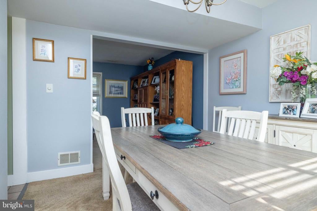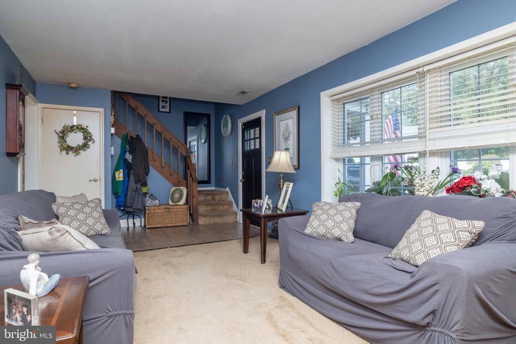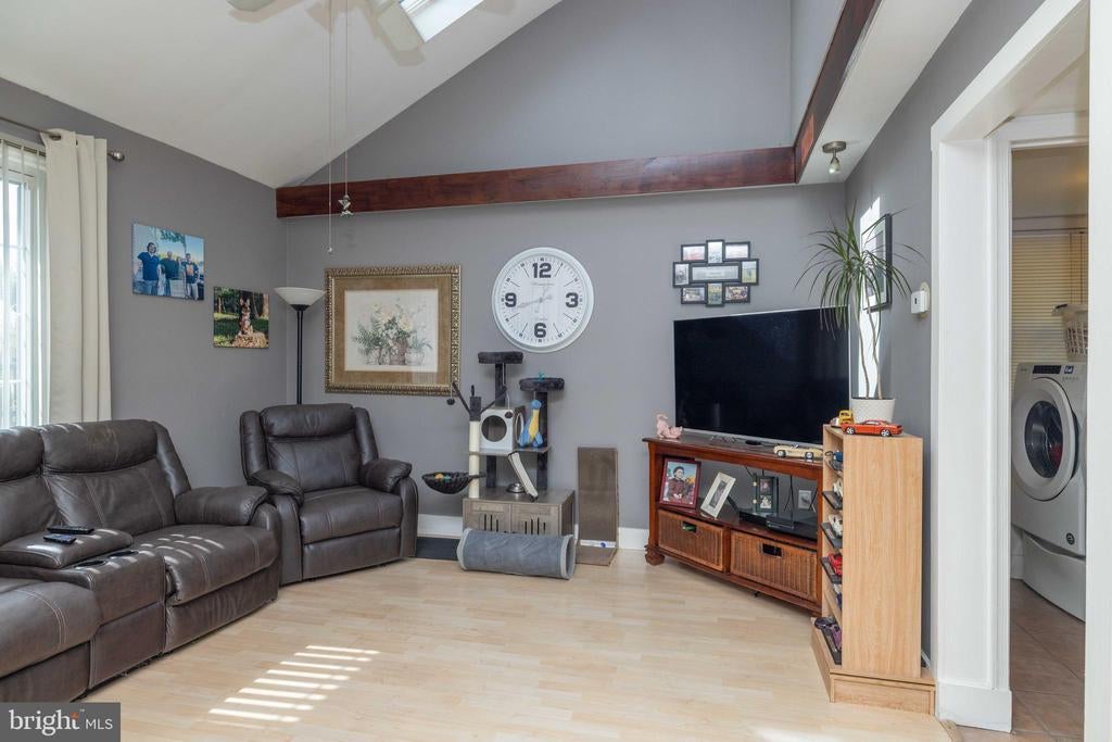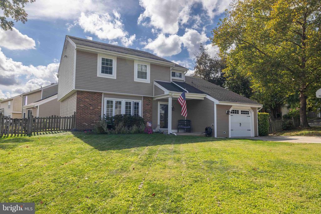 Welcome to this inviting 3 bedroom, 1.5 bath colonial, ideally situated on a peaceful cul-de-sac in Woodmill Village. A charming front porch adds curb appeal and a warm welcome as you enter the home. Inside, the sunlit living room features a cathedral ceiling, skylights, and large windows that fill the space with natural light. The open floor plan flows into the eat-in kitchen, complete with wooden cabinets, a breakfast bar, and sliding glass doors that lead to a flat, private backyard - perfect for everyday living or casual entertaining. A separate dining room provides additional space for meals or gatherings. Upstairs, the primary bedroom offers a generous walk-in closet and a large vanity in the full bath. The home also includes a cozy family room, a dedicated laundry area, an attached garage, and double driveway providing ample parking. This home is being sold as-is at an incredible price, offering a rare opportunity to make it your own!