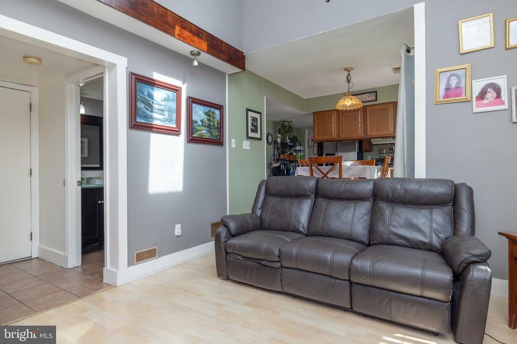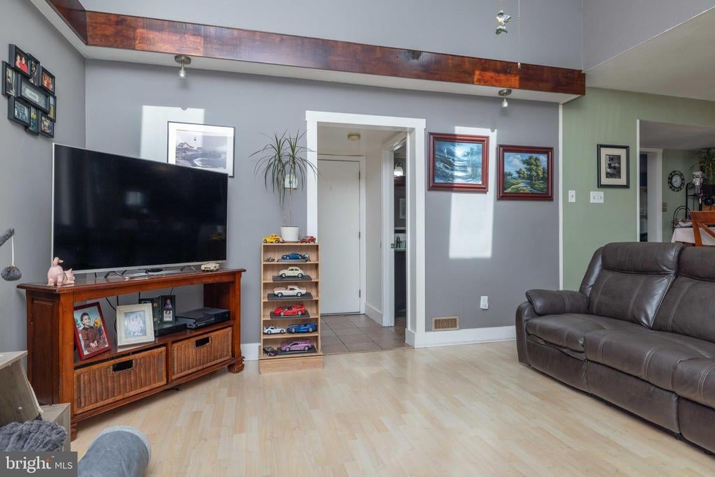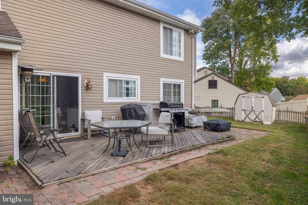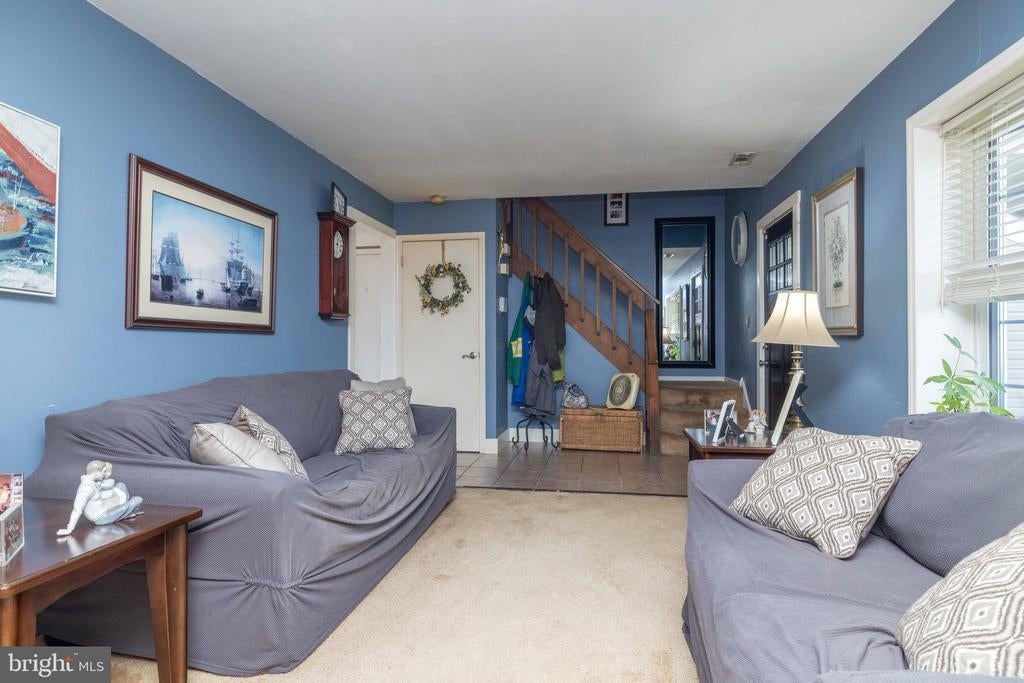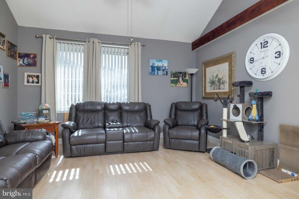 Welcome to this inviting 3 bedroom, 1.5 bath colonial, ideally situated on a peaceful cul-de-sac in Woodmill Village. A charming front porch adds curb appeal and a warm welcome as you enter the home. Inside, the sunlit living room features a cathedral ceiling, skylights, and large windows that fill the space with natural light. The open floor plan flows into the eat-in kitchen, complete with wooden cabinets, a breakfast bar, and sliding glass doors that lead to a flat, private backyard - perfect for everyday living or casual entertaining. A separate dining room provides additional space for meals or gatherings. Upstairs, the primary bedroom offers a generous walk-in closet and a large vanity in the full bath. The home also includes a cozy family room, a dedicated laundry area, an attached garage, and double driveway providing ample parking. This home is being sold as-is at an incredible price, offering a rare opportunity to make it your own!