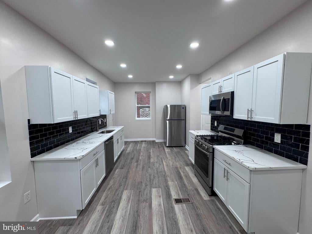 Welcome to 104 Fulton Street — a beautifully updated 4-bedroom, 2-bath end-unit townhouse offering 1,450 square feet of stylish and comfortable living space. Step onto the inviting front porch before entering the bright foyer. To the left, the spacious living room flows seamlessly into the dining area and open-concept kitchen — perfect for entertaining and everyday living. The kitchen has been fully renovated with brand-new appliances, sleek quartz countertops, modern cabinetry, and contemporary finishes. A full bath completes the main level for added convenience. Upstairs, you’ll find four generous bedrooms and a second full bath, also completely remodeled with updated fixtures and finishes. This home has been fully refreshed with new paint, luxury vinyl plank flooring, brand-new HVAC, water heater, updated plumbing and electric, and all-new windows — giving you peace of mind for years to come. Conveniently located near I-95, public transportation, and local amenities, this move-in-ready home combines modern updates with an unbeatable location. Don’t miss your chance to own this turnkey Wilmington gem!