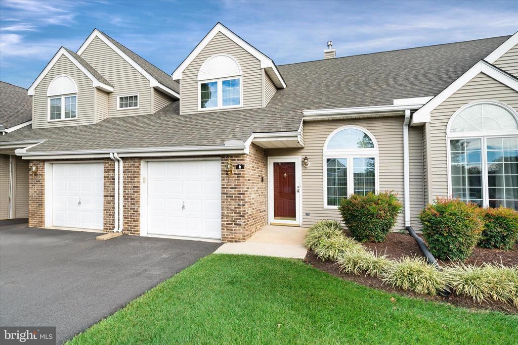 This lovely Hershey Run townhome WITH GARAGE is ready for a new owner. Be in by the holidays! Featuring a gracious living room with tiled entry, vaulted ceiling and picture window with additional arched accent window for lots of light. The double sided gas fireplace provides ambiance to both the living and dining rooms. Generous kitchen offers a pantry closet, newer solid surface counters and there’s plenty of space for a table. The new sliding doors open to a patio. The main level bedroom offers more new sliders and nice closet space. The main bath has a walk in shower which was recently updated. Convenient laundry closet with newer W/D. Upstairs, the 2nd bedroom is huge, offering a sitting area as well as a walk-in closet and en-suite bath with soaking tub, shower, double sinks. A large unfinished storage closet completes this level. Hershey Run offers a community pool, tennis courts, walking path and clubhouse. Enjoy the 55+ lifestyle that Hershey Run offers. All in a super convenient location. This home is in very good condition, but is being sold in “as-is” condition, with seller making no repairs.
