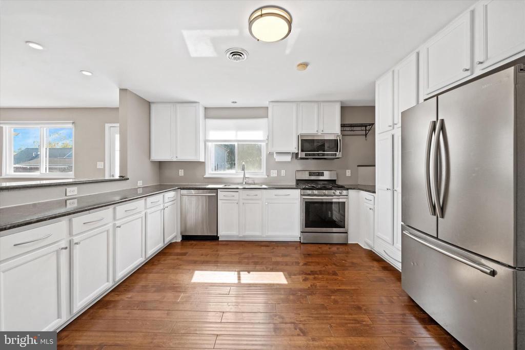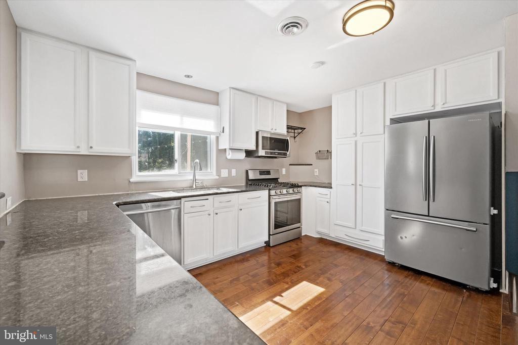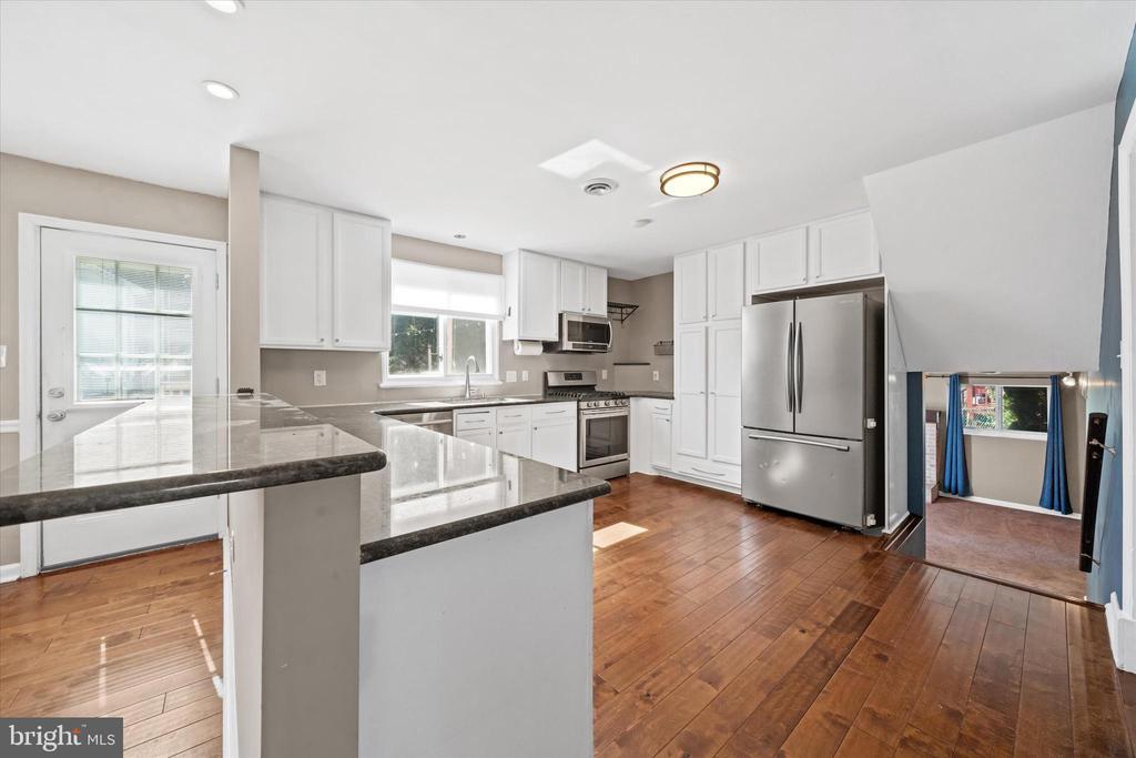Welcome home to 4002 Delaware Street, where space, comfort, and versatility come together beautifully. This move-in-ready home has been thoughtfully updated and offers an incredible amount of living space along with income potential. Step into the foyer and take in the gleaming hardwood flooring that continues throughout much of the main level. The light-filled living room chair rail moldings and a warm, inviting atmosphere. The open-concept kitchen and dining area is ideal for entertaining, boasting granite countertops, a breakfast bar, stainless steel appliances, LED lighting, and plenty of cabinetry. From the dining area, step out onto the deck overlooking the private backyard, perfect for morning coffee or evening gatherings. The lower level features a spacious recreation room complete with a brick fireplace and a door leading to a covered porch, currently used as a fun bar and entertainment area. There is also a full bath, a laundry room, and flex space that can serve as a guest bedroom or home office. Upstairs, you’ll find three generous bedrooms, each with ample closet space and a full bath. The primary suite includes its own private bath, while the fourth floor offers another expansive flex space, ideal for a home gym, playroom, studio, office or additional bedroom. Adding even more value is the detached garage with a permitted one-bedroom apartment featuring a full bath, kitchen, and living area, perfect for rental income, guests, or extended family. A full basement provides abundant storage. There is also an attached garage in addition to the detached. The parking is incredible. 10+ cars on the driveway. Additional highlights include solar panels for energy efficiency and neutral décor throughout. All of this is set in a convenient location just minutes from extensive shopping, restaurants, and major highways. 4002 Delaware Street is a rare find offering space, flexibility, and income potential, a true value in today’s market. * home has central airconditioning.