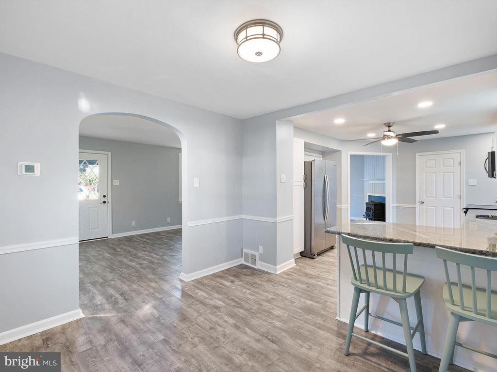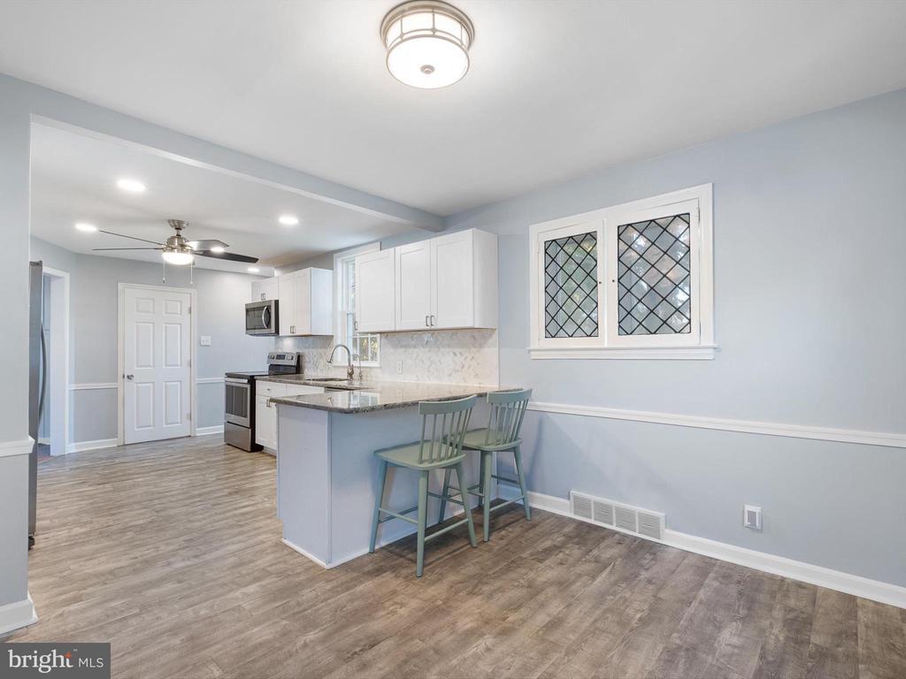 Charming 3 bedroom 1 1/2 bath Cape cod in Blue Rock Manor features a welcoming brick covered porch, new natural gas HVAC (2025) LPV in living room, dining room and kitchen, stainless steel appliances, granite countertops and marble backsplash, family room with ceiling fan, woodstove, and half bath/laundry, all conveniently located on the first floor. 3 bedrooms and a full bath finish off the second floor. The spacious backyard features a deck, perfect for outdoor entertaining, and shed which has plenty of storage space for garden/yard tools and equipment. Close to shopping, parks and easy access to major roads, make your appointment today to see 120 Prospect Drive in North Wilmington!