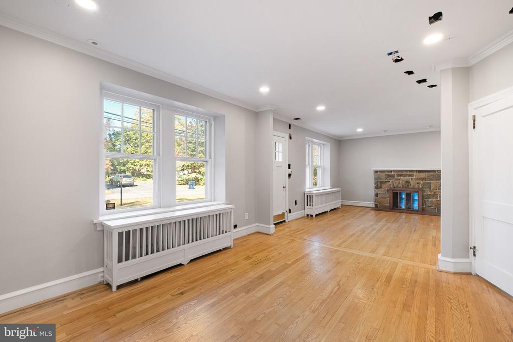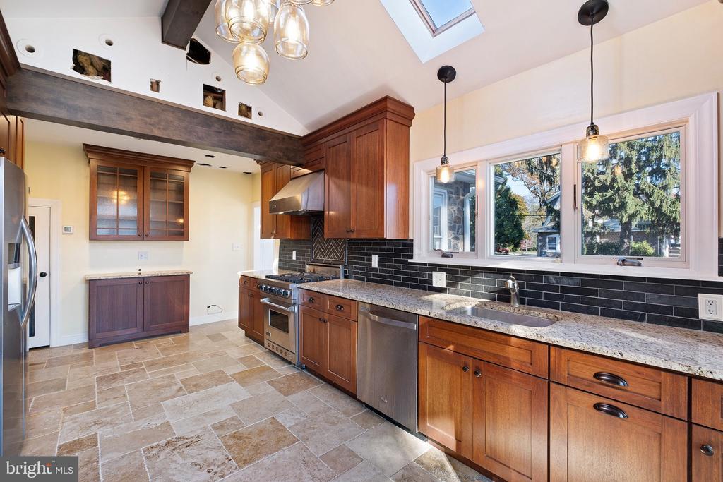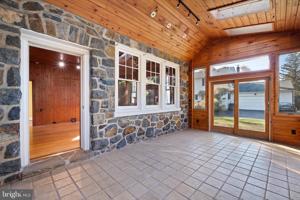 Must-see gem in highly desirable Carrcroft! This charming stone-front home blends classic character with modern updates and great curb appeal. Step inside to a welcoming living area with a beautiful stone fireplace that flows into the dining room featuring hardwood floors, crown molding, and a built-in corner cupboard. Enjoy one of two sunrooms showcasing original stone walls and floors with sliders to the outdoors. The updated kitchen offers 42" wood cabinets, granite counters, slate backsplash, and stainless steel appliances, including a gas Viking range. A private main-floor bedroom suite with full bath is perfect for guests. The wood-paneled family room with the home’s second fireplace connects to a bright, heated sunroom—ideal as a play or hobby space. A quiet office sits just behind. Upstairs, the primary bedroom features a sitting area and large walk-in closet, with two additional rooms offering flexibility for bedrooms, study, or laundry. The hall bath boasts Carrara marble floors and shower. The basement provides laundry and bonus space. Neutral paint throughout enhances the home’s inviting feel. Set on a quiet corner lot on the peaceful side of Baynard Boulevard—this Carrcroft classic is full of warmth, space, and charm!