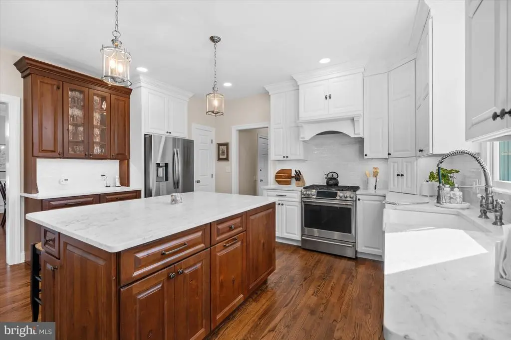 Welcome to this beautiful 4-bedroom, 2.5-bathroom brick, center hall colonial located in the sought-after community of Westridge. Situated on a cul-de-sac lot, this meticulously maintained property shines with pride of ownership. Upon entry, you are greeted by a two-story foyer with turned staircase flanked by generous-sized living and dining rooms with plenty of space for large gatherings. The open floor plan boasts 9’ ceilings, extensive decorative molding, recessed lighting and gleaming hardwood floors throughout the first floor. The heart of the home is the stunning 3-year-old custom kitchen, complete with soft-close 42” cabinets, marble countertops, aged brass fixtures, stainless steel appliances, 6-burner gas cooktop, and farmhouse sink. The large center island and bar cabinet make the kitchen perfect for entertaining. The adjacent breakfast area has a new sliding glass door leading to the rear. The spacious family room, open to the kitchen, has a lovely gas fireplace. Completing the main level is a playroom/office with built-in desk and cabinetry, laundry room with access to the rear, and a renovated powder room. Upstairs, you will find four spacious bedrooms (newly carpeted), including the primary bedroom with office/exercise room, two walk-in closets, and a newly updated bathroom with skylight, glass shower, soaking tub, and quartz vanity with double sinks. The updated hall bathroom serves the remaining bedrooms. The open, unfinished lower level provides the opportunity for your customization. The home sits on a flat, well-landscaped lot, complete with fenced rear yard and extra-large paver patio. Additional features include 8-year-old roof, 5-year-old HVAC system, and 6-year-old hot water heater. Enjoy being close to schools (walkable to HB duPont Middle School), parks, restaurants, and shopping, all while residing in the award-winning Red Clay Consolidated School District!