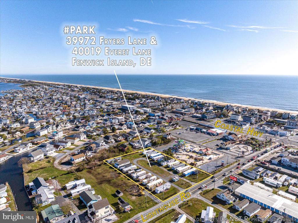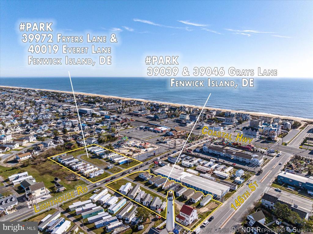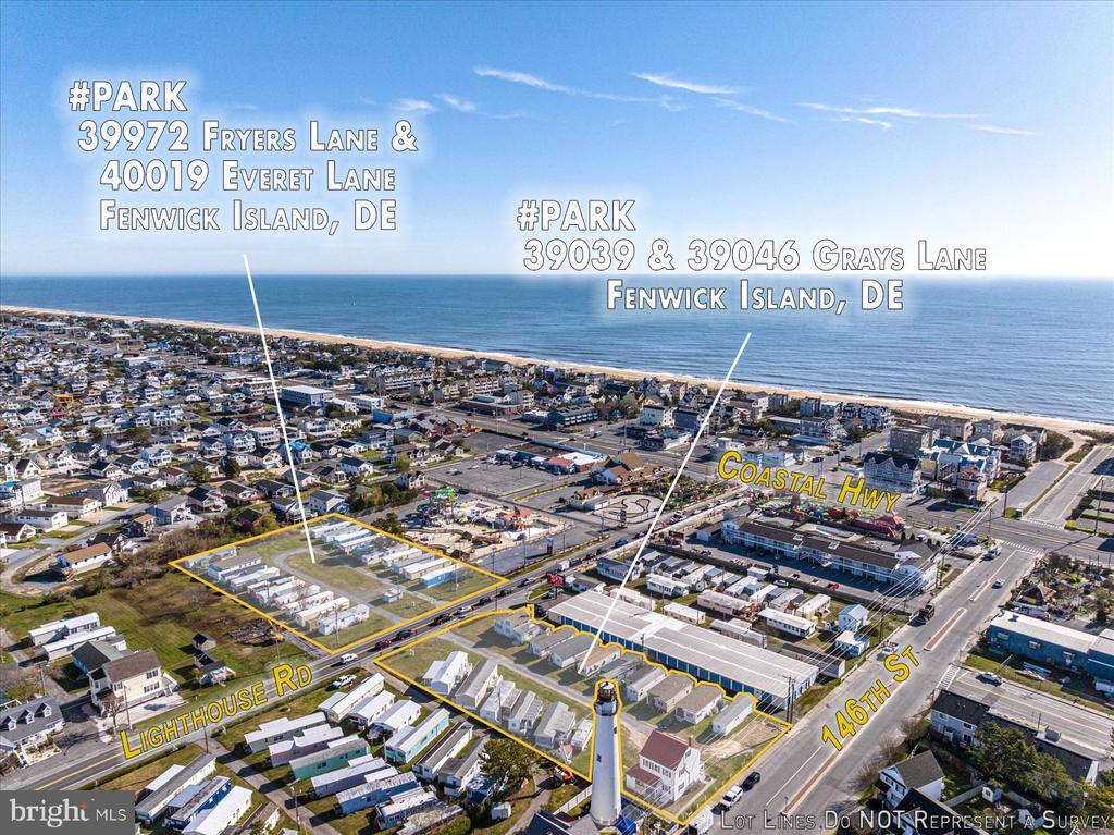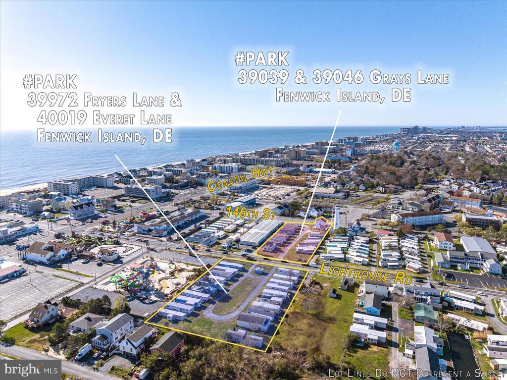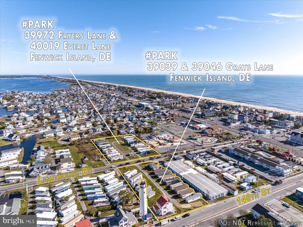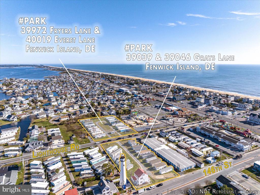 This is a prime location in sought-after Fenwick Island! This is an extremely rare opportunity to purchase C-1 commercial land in Fenwick Island DE close to the beach and Atlantic Ocean. A salty breeze carries the scent of the Atlantic Ocean as you stand on these 4 commercially zoned C-1 parcels in Fenwick Island. Just a few blocks east the waves crash against the shore, a constant reminder of the area's beachside charm. The possibilities are endless. One potential would be a vibrant multifamily community development that caters to a variety of residents seeking a comfortable and convenient beach lifestyle. The development could offer a range of unit sizes, from cozy cottages to spacious multi-bedroom townhomes. The potential for shared amenities adds another layer to the multifamily living experience. Perhaps even a swimming pool or fitness center could be incorporated, creating a space for relaxation and healthy living. Other possibilities include a shopping center, multiple smaller retail businesses, and/or medical or other professional offices or leave as mobile home parks. This land is close to the Fenwick and Ocean City beaches, shops, restaurants, mini golf, water parks, and entertainment. The land is located off Rt 54 Lighthouse Rd and is currently used as a mobile home park (Gray's Lane Park) consisting of Tax ID 134-23.02-75.00-Park (18,295 sq ft) and Tax ID 134-23.02-76.00-Park (24,394 sq ft). Purchaser must buy both parcels at the same time. The historic Fenwick Island Lighthouse is directly next to the parcel and the historic lighthouse keeper's house is part of the sale. A possible Air B&B unique experience for that residence awaits! On the opposite side of the road is another mobile home park (Fryers Lane Park), consisting of Tax ID 134-23.02-56-Park (29,621 sq ft) and Tax ID 134-23.02-57.00-Park (30,492 sq ft). Purchaser must buy both parcels at the same time. Total acreage for the four parcels is 2.34 Acres (acreage on the North side of Rt. 54 is 1.36 Acres and the South Side of Rt. 54 is .98 Acres). Mobile homes belong to the tenants. The buyer must honor this season's existing rentals or settle on Nov. 1st after this coming rental season ends. PURCHASER MUST ALSO PURCHASE 39972 FRYERS LANE #PARK AND SETTLE BOTH PROPERTIES AT THE SAME TIME. TAX ID 134-23.20-56.00-PARK. Property is not in Fenwick Town Limits falls under Sussex County.