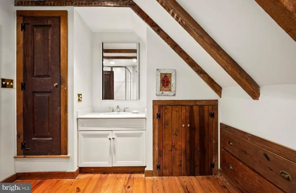 Built-Ins, Entry Level Bedroom, Walk-in Closet(s), Wood Floors, Exposed Beams, Additional Stairway, Attic, Bathroom - Walk-In Shower, Ceiling Fan(s), Curved Staircase, Double/Dual Staircase, Recessed Lighting, Upgraded Countertops, Wet/Dry Bar, Window Treatments
