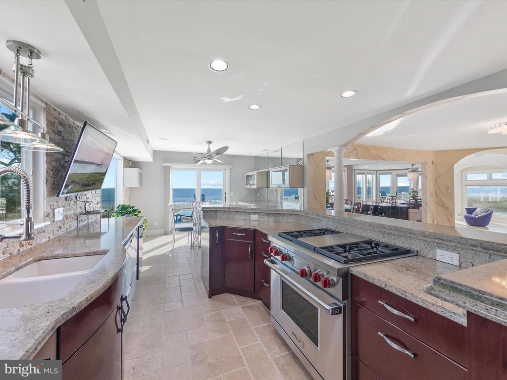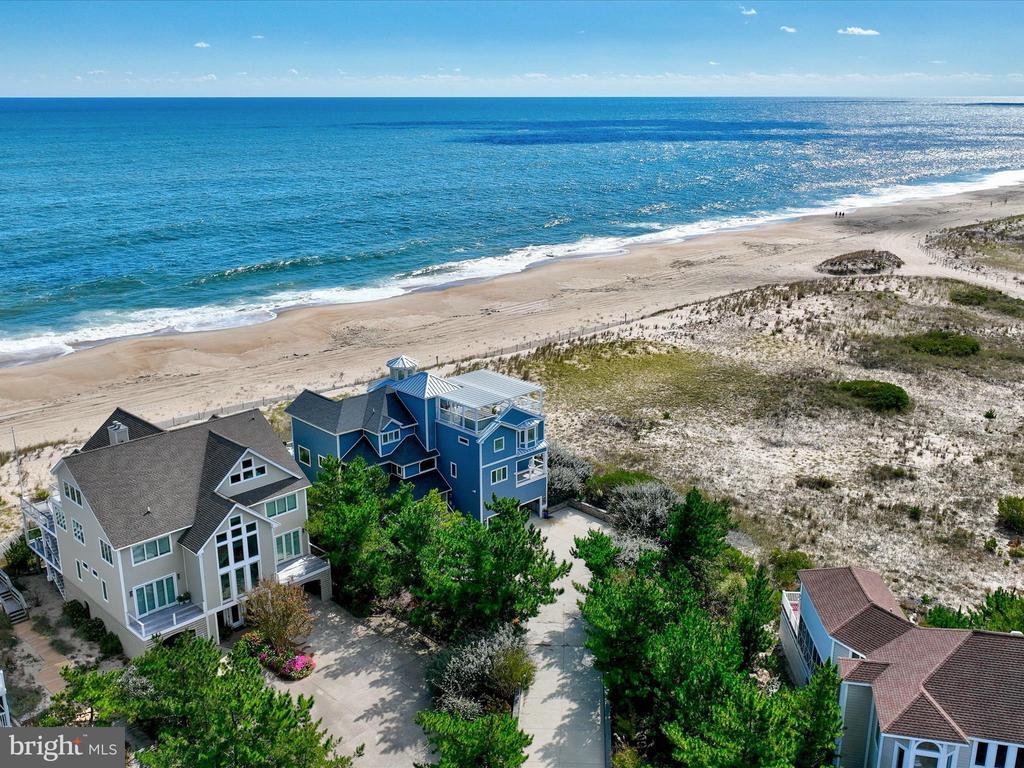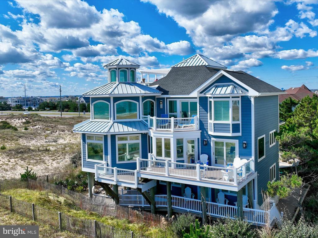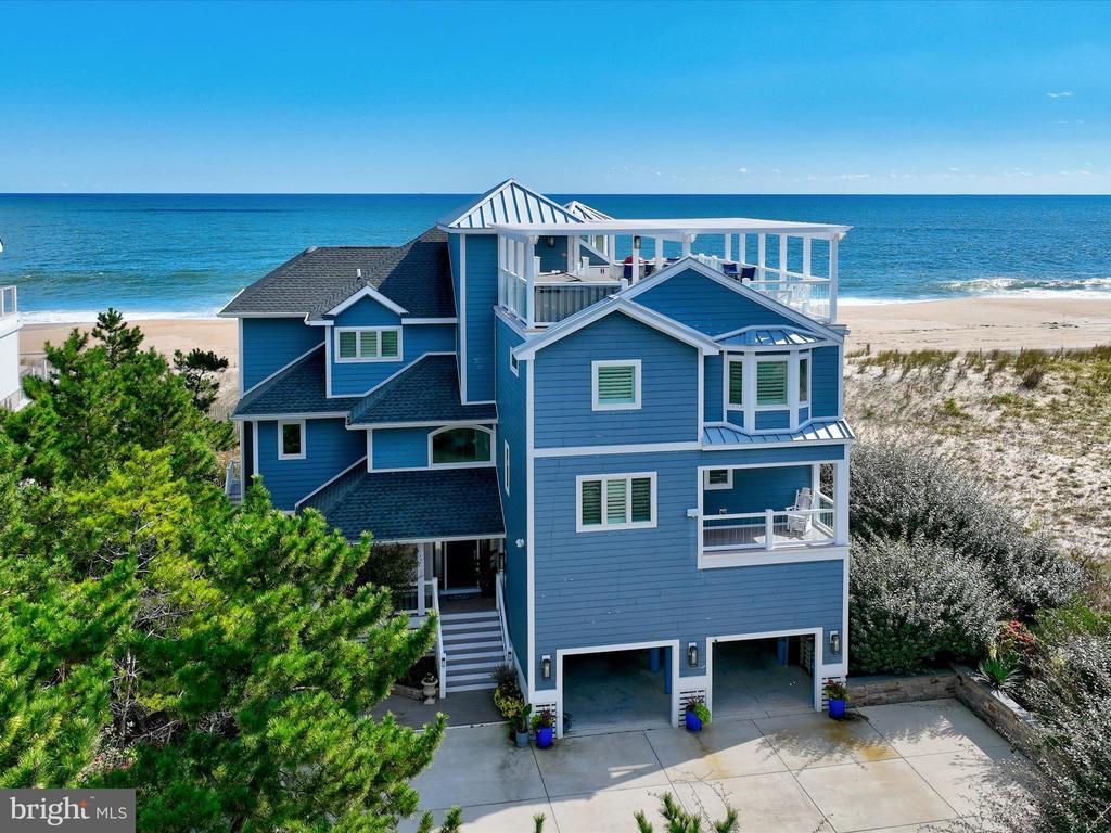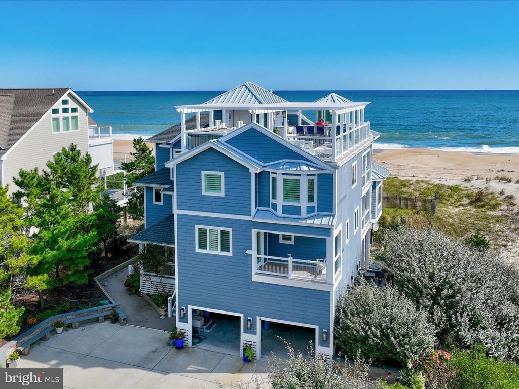 A Castle on the Beach. Discover the coastal elegance of 40110 Owens Court, an extraordinary custom oceanfront home, perfectly nestled beside Fenwick Island State Park. This luxurious coastal retreat spans four levels, offering unparalleled living and entertaining spaces with breathtaking, panoramic views of the ocean, bay, and surrounding wildlife. Updated and expanded in 2017, this home combines modern luxury with timeless coastal charm. Key updates include a new roof, siding, hurricane-proof windows, expanded living areas, and enhanced outdoor spaces, complete with new decking, railings, and an elevator. Designed to immerse you in the beauty of the ocean and bay, natural light floods every corner of the home, creating a seamless connection between indoor and outdoor living. The 2nd floor is a celebration of oceanfront living, where expansive windows and multiple balconies frame the Atlantic’s stunning vistas. At the heart of this level lies the grand living room, crowned by a soaring two-story copula, offering an inviting space for gathering and entertaining while enjoying uninterrupted ocean views. The gourmet kitchen is a chef’s dream, equipped with top-tier appliances including a Wolf stove, Viking fridge/freezer, two dishwashers, and a wine bar. Granite countertops, custom 42" cabinetry, and a sprawling island with generous seating make this kitchen both functional and stylish. Adjacent to the kitchen, a cozy breakfast room offers additional display cabinetry and opens onto the balcony, perfect for morning coffee with ocean breezes. For grander occasions, the formal dining room provides an exquisite setting with the backdrop of the sea, while the family room, doubling as a theater room with surround sound, remote screen, and a fireplace, offers a cozy retreat for movie nights. This level also features two guest bedrooms, each with unique touches and access to private balconies, sharing a well-appointed bath, offering a tranquil retreat for family and friends. The 3rd level is dedicated to two luxurious bedroom suites. The primary suite is a serene sanctuary, complete with an office space, custom cabinetry, a spacious ensuite featuring a dual vanity and walk-in shower, and a private balcony offering serene bay and ocean views. The second suite is equally opulent, with a spa-like bath, access to the main deck, and breathtaking ocean views. A cozy sitting area between the suites provides the perfect nook for reading while surrounded by stunning scenery. Ascend to the rooftop deck and experience the ultimate outdoor living space. Complete with ample seating, a grill, refrigerator, dishwasher, and even a hot tub, it’s an entertainer's paradise. Enjoy the tranquil ambiance of the sunset over the bay, while music from the integrated sound system fills the air. With a half-bath and extra storage on this level, every convenience is at your fingertips. The 1st level of the home offers a separate two-bedroom apartment, each with ensuite baths, a kitchenette, family room, laundry center, and access to the deck and outdoor shower—ideal for guests to have their own private space during their stay. This home also features a handicap-accessible entrance and an elevator, ensuring easy access to many of its living levels. Parking is never an issue, with a beautifully hardscaped driveway that accommodates 8-10 cars, a two-car carport, and elegant landscaping. Located just a short bike ride from the heart of Fenwick Island, you'll enjoy easy access to charming restaurants, boutiques, and entertainment. Come and experience the ultimate oceanfront lifestyle at 40110 Owens Court—where luxury, comfort, and coastal living meet.