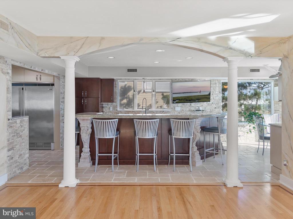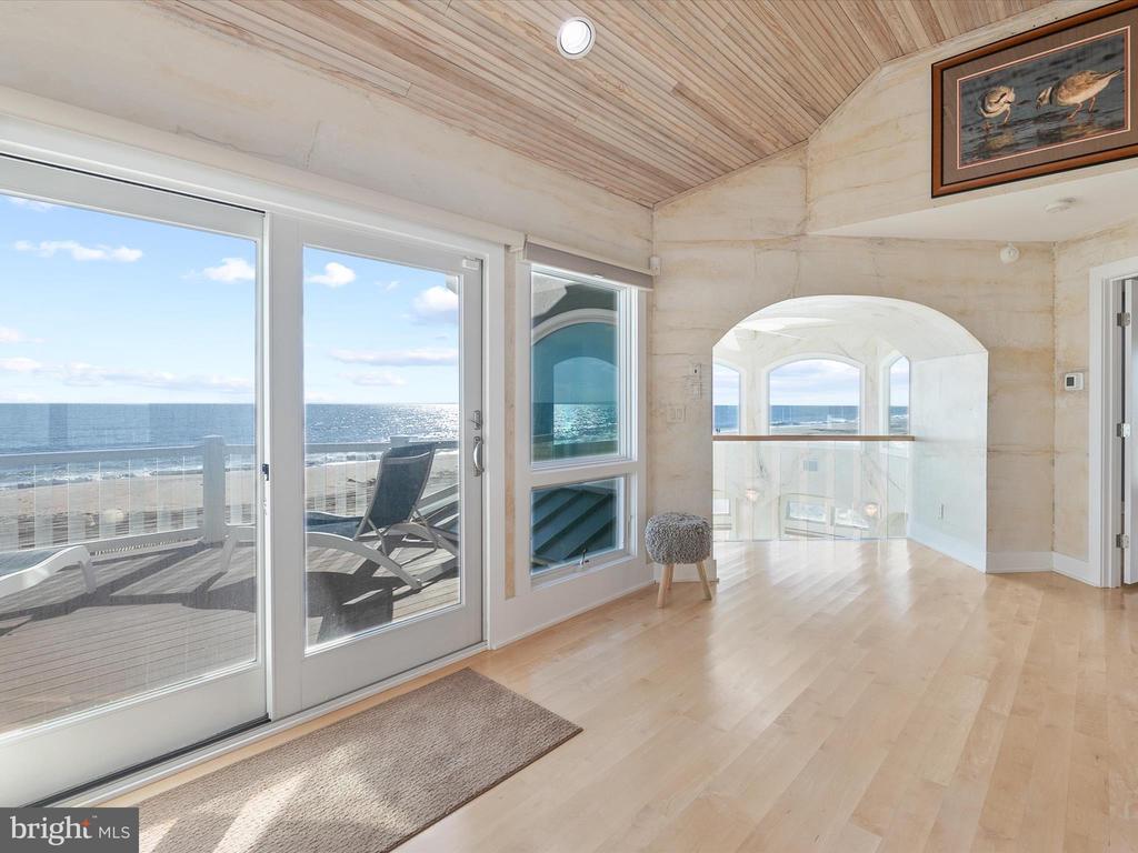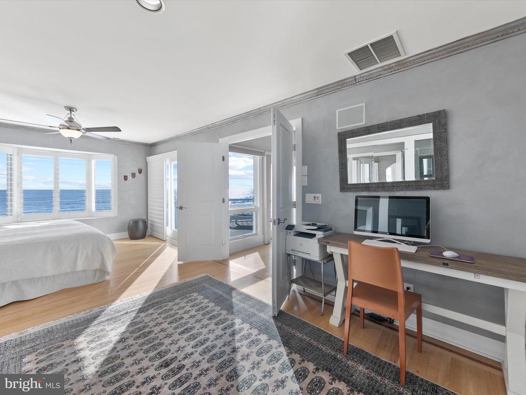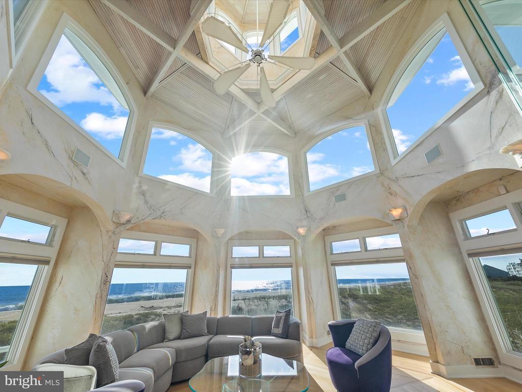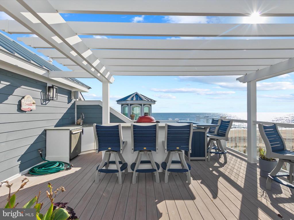 A Castle on the Beach. Discover the coastal elegance of 40110 Owens Court, an extraordinary custom oceanfront home, perfectly nestled beside Fenwick Island State Park. This luxurious coastal retreat spans four levels, offering unparalleled living and entertaining spaces with breathtaking, panoramic views of the ocean, bay, and surrounding wildlife. Updated and expanded in 2017, this home combines modern luxury with timeless coastal charm. Key updates include a new roof, siding, hurricane-proof windows, expanded living areas, and enhanced outdoor spaces, complete with new decking, railings, and an elevator. Designed to immerse you in the beauty of the ocean and bay, natural light floods every corner of the home, creating a seamless connection between indoor and outdoor living. The 2nd floor is a celebration of oceanfront living, where expansive windows and multiple balconies frame the Atlantic’s stunning vistas. At the heart of this level lies the grand living room, crowned by a soaring two-story copula, offering an inviting space for gathering and entertaining while enjoying uninterrupted ocean views. The gourmet kitchen is a chef’s dream, equipped with top-tier appliances including a Wolf stove, Viking fridge/freezer, two dishwashers, and a wine bar. Granite countertops, custom 42" cabinetry, and a sprawling island with generous seating make this kitchen both functional and stylish. Adjacent to the kitchen, a cozy breakfast room offers additional display cabinetry and opens onto the balcony, perfect for morning coffee with ocean breezes. For grander occasions, the formal dining room provides an exquisite setting with the backdrop of the sea, while the family room, doubling as a theater room with surround sound, remote screen, and a fireplace, offers a cozy retreat for movie nights. This level also features two guest bedrooms, each with unique touches and access to private balconies, sharing a well-appointed bath, offering a tranquil retreat for family and friends. The 3rd level is dedicated to two luxurious bedroom suites. The primary suite is a serene sanctuary, complete with an office space, custom cabinetry, a spacious ensuite featuring a dual vanity and walk-in shower, and a private balcony offering serene bay and ocean views. The second suite is equally opulent, with a spa-like bath, access to the main deck, and breathtaking ocean views. A cozy sitting area between the suites provides the perfect nook for reading while surrounded by stunning scenery. Ascend to the rooftop deck and experience the ultimate outdoor living space. Complete with ample seating, a grill, refrigerator, dishwasher, and even a hot tub, it’s an entertainer's paradise. Enjoy the tranquil ambiance of the sunset over the bay, while music from the integrated sound system fills the air. With a half-bath and extra storage on this level, every convenience is at your fingertips. The 1st level of the home offers a separate two-bedroom apartment, each with ensuite baths, a kitchenette, family room, laundry center, and access to the deck and outdoor shower—ideal for guests to have their own private space during their stay. This home also features a handicap-accessible entrance and an elevator, ensuring easy access to many of its living levels. Parking is never an issue, with a beautifully hardscaped driveway that accommodates 8-10 cars, a two-car carport, and elegant landscaping. Located just a short bike ride from the heart of Fenwick Island, you'll enjoy easy access to charming restaurants, boutiques, and entertainment. Come and experience the ultimate oceanfront lifestyle at 40110 Owens Court—where luxury, comfort, and coastal living meet.