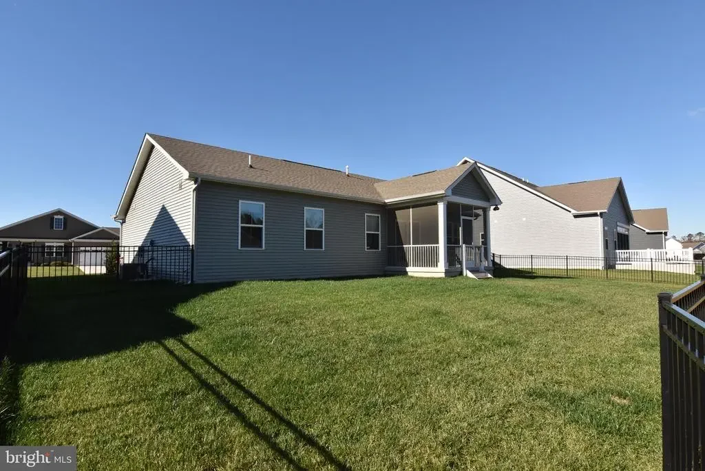 This charming, nearly-new 3-bedroom, 2-bathroom single-story home is situated in a desirable new development offering a wide range of amenities. Just a short drive to the vibrant downtown areas of Lewes and Rehoboth, you'll have easy access to fantastic shopping, dining, and the renowned Delaware beaches. Built only two years ago, this well-maintained home boasts upgraded vinyl flooring throughout, providing durability and easy upkeep. Custom window treatments add a personal touch, while the screened-in back porch and fenced yard offer privacy and comfort. The front of the home features a poured concrete porch, detailed landscaping, and a concrete driveway. An irrigation system covers both the front and back yards, keeping everything lush and green. The community is thoughtfully designed with sidewalks and streetlights for safety and convenience. HOA benefits include trash and snow removal, lawn care, access to an outdoor pool, and a club house equipped with a kitchen, gym, and billiards room. Enjoy an active lifestyle with amenities such as tennis courts, pickleball, shuffleboard, a fire pit, and an outdoor grill area.