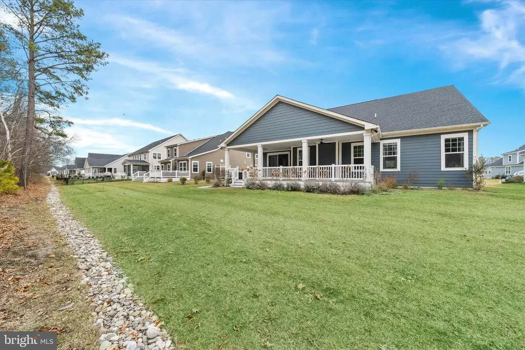 Welcome to your luxury coastal retreat!! This stunning, nearly new dream home offers 3 spacious bedrooms and 2 modern bathrooms, and generous size open porch, perfectly designed for comfort and relaxation. As you step inside you'll be greeted by the open-concept living area filled with natural light, highlighting the custom finishes and warm coastal feel. The white gourmet kitchen features sleek granite countertops and tile backsplash, a gas 5 burner cooktop, wall ovens, upgraded 42" soft close cabinets, a generous size walk-in pantry and a large inviting island with seating for 6 perfectly situated for gathering. The adjoining living room featuring a trey ceiling & fireplace, and dining room with sliders out to the rear open porch, makes it perfect for hosting get-togethers with family and friends. Retreat to the luxurious primary suite, complete with a private ensuite bath that includes an oversized shower, double vanities, linen closet, private water closet and a massive owners closet (part of which could be used to accommodate a 3rd full bath for the front guest bedroom). The additional bedrooms are equally inviting for family or guests. The hall bath is tastefully designed with modern fixtures and finishes. The mudroom, just inside the garage, offers a built-in bench with hooks & storage, while the well-designed laundry room is equipped with a convenient laundry tub & ample shelving. Step outside onto the 35 x 17 covered porch where you can enjoy a summer breeze, host a barbecue or simply take in a starry evening. The beautifully landscaped rear yard, that backs to woods, is filled with lovely hydrangeas & lavender. Additional features include a 2-car garage that offers extra room for outdoor items or recreational gear, an outdoor shower for rinsing off after a day at the beach, an irrigation system to keep the plantings well nourished, and Hardy Plank exterior ensuring the property maintains its attractive appearance. Lastly, there is a full basement with egress that could easily provide additional living space, and is already plumbed for another bath. Located just a few miles from both Rehoboth Beach and the town of Lewes, Wellesley is an amenity rich community designed to enhance residents' lifestyles with their outdoor pool, a well appointed clubhouse with a bar & lounge area, a well-equipped fitness center, sidewalks and street lights. Don't miss the opportunity to make this exquisite home your own and embrace the serene way of living that awaits you here at the Delaware Beaches.