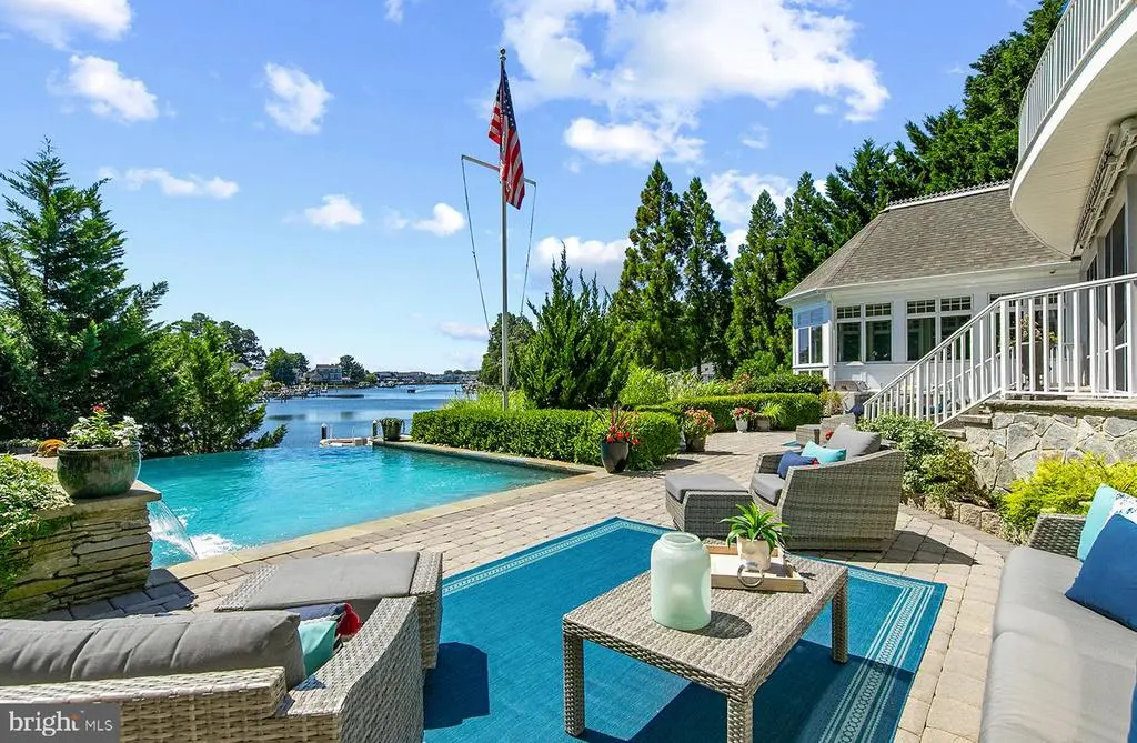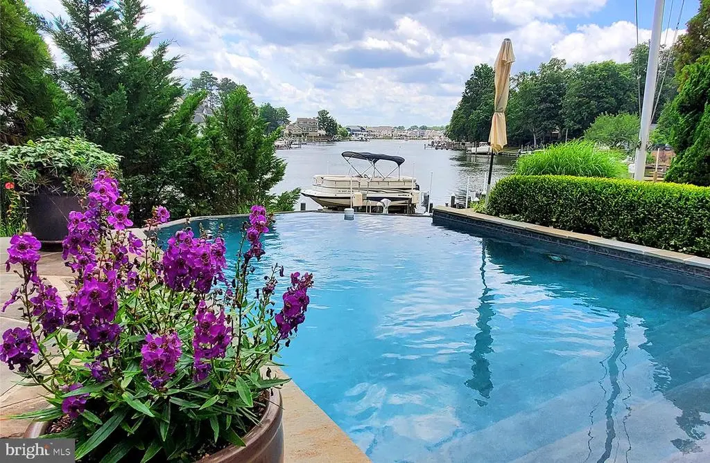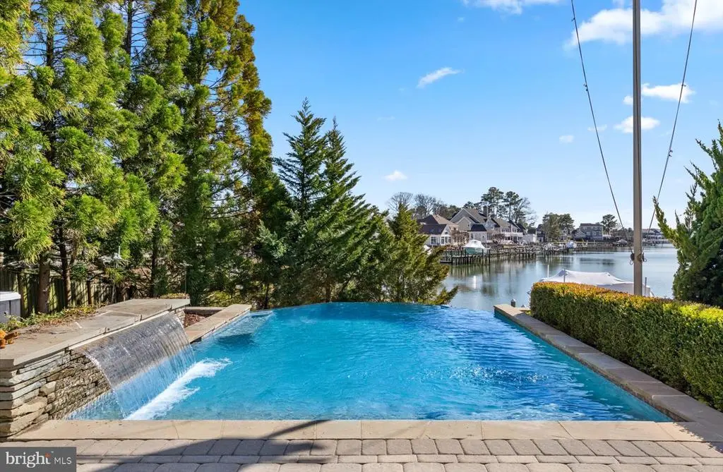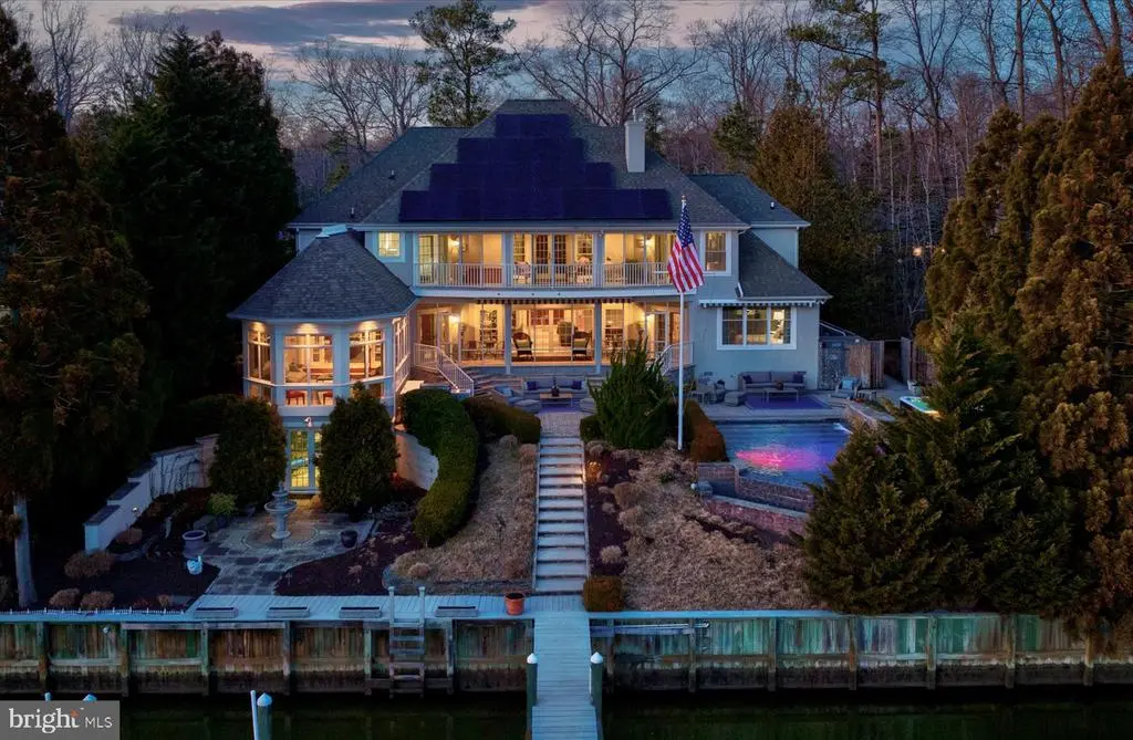 Unparalleled waterfront luxury home with breathtaking views. Nestled along the tranquil shore of the Bald Eagle Lagoon on a high bulkheaded lot, this 5,300 sq. ft. waterfront estate is an extraordinary blend of elegance, comfort, and modern sophistication. Thoughtfully designed to capture unobstructed water views, this stunning residence features 5 spacious bedrooms, 4.5 baths, and multiple indoor and outdoor living spaces, all crafted for the ultimate coastal lifestyle. Upon arrival, you'll be captivated by the hardscape driveway, stone retaining wall, and professionally designed landscaping with accent lighting, setting the stage for the beauty within. Step through the grand 2-story foyer into an inviting living room with a gas fireplace and beautiful water views. Adjacent to this space, the gourmet kitchen is a chef’s delight, featuring granite countertops, 6-burner range, center island, and breakfast area, all open to a cozy family/media room with a second fireplace. Just beyond, a gorgeous sunroom wrapped in glass showcases the tiered landscape grounds and long, serene water views down the lagoon. The first-level primary suite is a private retreat offering a spa-inspired ensuite bath and fireplace, two custom-designed closets, and direct access to the screened porch. The second level boasts 4 additional bedrooms, 2 of which feature ensuite baths with jetted tubs, ensuring ample space and privacy for family and guests. A handsome library doubles as an executive office complete with built-ins, fireplace, and panoramic water views, creating a refined yet functional workspace. Meanwhile, the solarium overlooking the Bald Eagle Lagoon offers a peaceful escape bathed in natural light. The resort-style exterior is designed for relaxation and entertaining. A heated infinity-edge pool, hot tub, and extensive hardscaping create a private oasis while the outdoor kitchen is perfect for al fresco dining. Boating enthusiasts will appreciate the private dock with 2 lifts, offering effortless access to Rehoboth Bay. Additional premium features include a 3-zone HVAC system for customized climate control, a security system for peace of mind, a conditioned crawlspace for enhanced efficiency, and an oversized 2-car garage with ample storage, separate storage/workshop, lightning rods, and generator. Sustainability meets luxury with an owned solar panel system, ensuring energy efficiency. This is more than just a home—it’s a waterfront sanctuary offering luxury, privacy, and an unparalleled connection to nature. Don’t miss this rare opportunity to own a piece of coastal paradise!