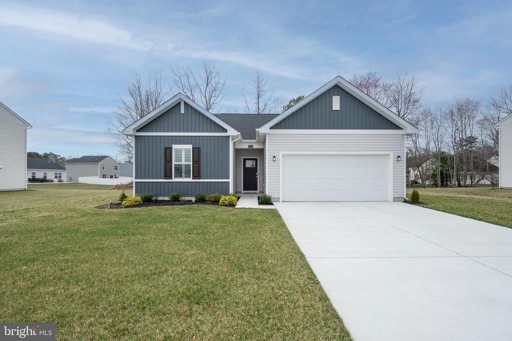 Gorgeous, one-year-old Ranch home in the sought-after community of Schooner Landing. Located on a largepremium lot that backs to trees. The home is decorated with custom plantation shutters on all the windows and Hunter Douglas on the sliding door. Owner had lawn irrigation system installed after purchase. This property is a "must see". Excellent condition! Close walking distance to the community pool. Just a short drive to both Delaware and Maryland beaches, restaurants and activities. Low HOA fees and plenty of space to add a porch or outside living areato the home. Why wait to build....this home is better than new. Come take a look!!