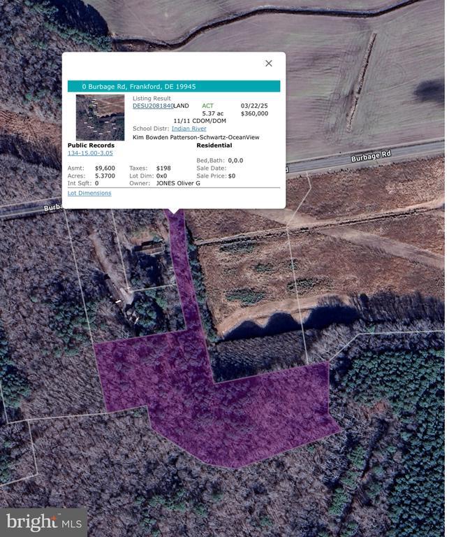 PRICE IMPROVEMENT! Build your dream home on 5.37 acres of wooded bliss just 15 minutes from the beautiful beaches of Delaware / Maryland. Survey attached that shows 5.37 acres + adjoining 1 acre lot - they are deeded separately and the house is not for sale. The driveway is "next" to existing driveway of home.