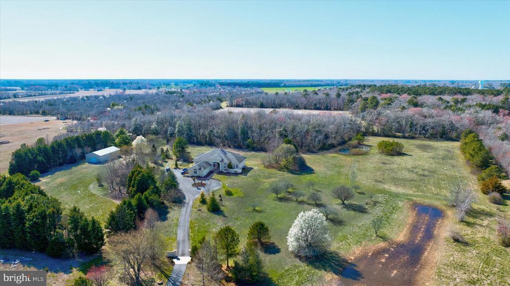 Exquisite Custom Estate on 17 Acres – A Rare Sanctuary Near Delaware & Maryland Beaches Discover the perfect blend of luxury and tranquility in this stunning 3,700 sq. ft. custom-built estate, nestled 17 picturesque acres. Enjoy the tranquility of this botanical setting, away from the crowds, yet just a short drive to the beach and only minutes away from the many dining, shopping, and entertainment options. This is your opportunity to enjoy the best of both worlds—relaxed living with beachside convenience! This stunning estate boasts exceptional craftsmanship, exotic wood finishes, and luxurious amenities throughout. The gourmet kitchen is a chef’s dream, featuring granite countertops, an Italian Verona gas range, Bosch electric oven & microwave, a Rangemaster hood, dual farmhouse sinks, and a commercial Samsung refrigerator. The kitchen counter was artfully designed with a brass footrest and decorative, hand-carved corbels. The open-concept layout provides gorgeous views of the paved outdoor veranda and the property beyond. Every room in the home has doors leading to this expansive veranda with beadboard ceiling, 4 large southern-inspired columns and a watering system for plants. The spacious dining room exudes elegance with a tray ceiling, chair rail, picture molding, and a stunning chandelier. Glass French doors open to the sunroom, a serene retreat featuring a sauna crafted from Alaskan Yellow Cedar. This versatile sunroom could also serve as a fourth bedroom. The master suite features custom cabinetry in the walk-in closet and a luxurious fully-tiled spa-like bathroom with a massive doorless spa shower, rainfall showerhead and body jets. Windows etched with water lilies and bamboo enhance the bright, airy space, which opens to a serene Zen garden adorned with dwarf Japanese shrubs and cobalt blue roof tiles from Japan. The large living room showcases a stone floor-to-ceiling wood-burning fireplace. Two executive offices offer exceptional workspace—one featuring floor-to-ceiling teak library and the other showcasing a stunning domed lighted ceiling. Additional highlights include a spacious ensuite guest bedroom with a Jacuzzi tub, a third bedroom with a half bath, and two additional half baths for convenience. A mudroom and large laundry room enhance the home’s thoughtful design and functionality. An elevator provides access to the partially finished, full-house , 3,700 square foot basement, offering endless possibilities. This expansive space includes mechanical rooms, ample storage, and plenty of room to create a workshop, home theater, gym, or any space you envision. The estate extends beyond the home with a 30x70 pole barn with 10 ft electric doors and a full bath. There is a separate guest cabin with shower, electric, propane heat and wired internet. The grounds are a nature lover’s paradise, boasting botanical landscaping, an apple orchard and a stocked pond . Herring Branch stream borders the rear of the property along with four acres of mature woods adding to the natural beauty and assuring your privacy. A true nature lover’s paradise, this one-of-a-kind estate offers unparalleled elegance, modern convenience, and absolute privacy. Don’t miss this extraordinary opportunity—schedule your private tour today!