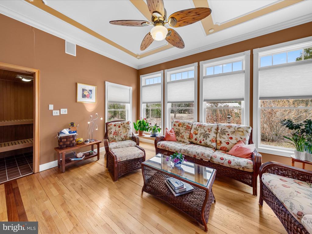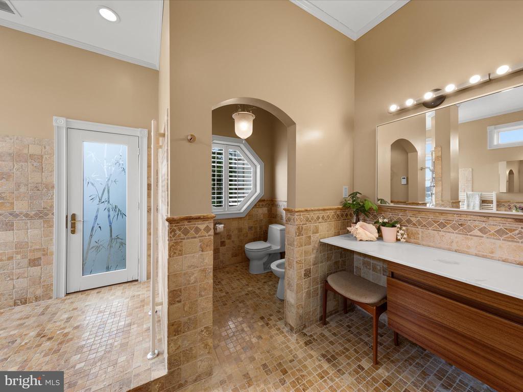 Bathroom - Jetted Tub, Bathroom - Walk-In Shower, CeilngFan(s), Central Vacuum, Chair Railing, Crown Molding, Elevator, Entry Lvl BR, Pantry, Master Bath(s), Sauna, Sound System, Walk-in Closet(s), Wood Floors