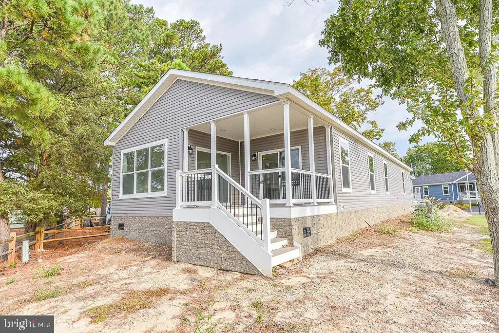 Welcome to Seaside – Feel the ocean breeze! This 3 bedroom, 2 bath new construction home is just minutes from the ocean by boat and reflects the charm and tranquility that is characteristic of Pot-Nets! Nestled along the Indian River Bay, Pot-Nets Seaside boasts towering pines, refreshing ocean breezes and outstanding water access. Enjoy the water views off of your covered porch or inside from your sitting room! The owners suite is among the largest we offer at 26' x 13' with a large walk in closet with barn doors. The attached bath has a barn door double sinks and a 4' x 6' tiled shower. This home features a kitchen with stainless steel appliances, ample countertop space and a large island. The family room features an LVP fireplace and a bar area with a sink and a space for your wine fridge. The lot has a site built 20' x 24' garage that is included in the price. Speak with one of our sales consultants to discuss pricing for the garage and any additional features you would like to make this home yours! *This is a spec home that has recently been set, and is under construction. Please be mindful of this when viewing. There is still time for customizations as well, including flooring and quartz countertop selections – the perfect opportunity to make this new house your home!*