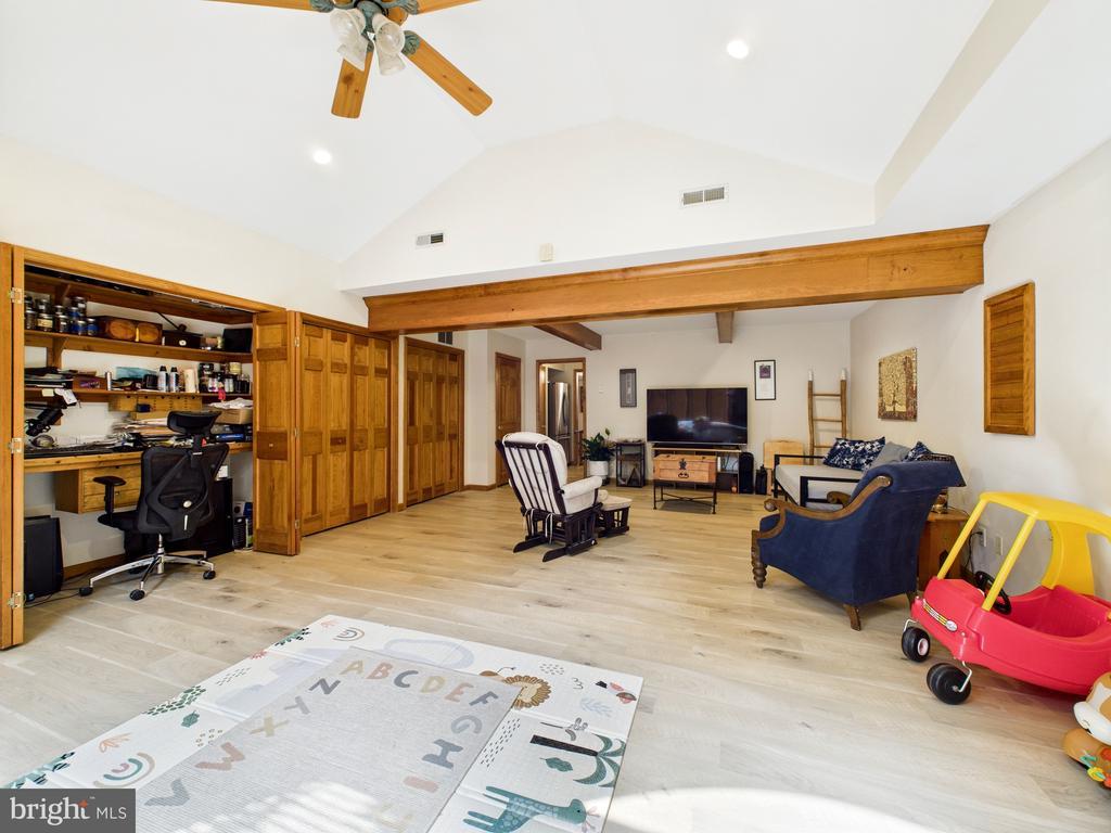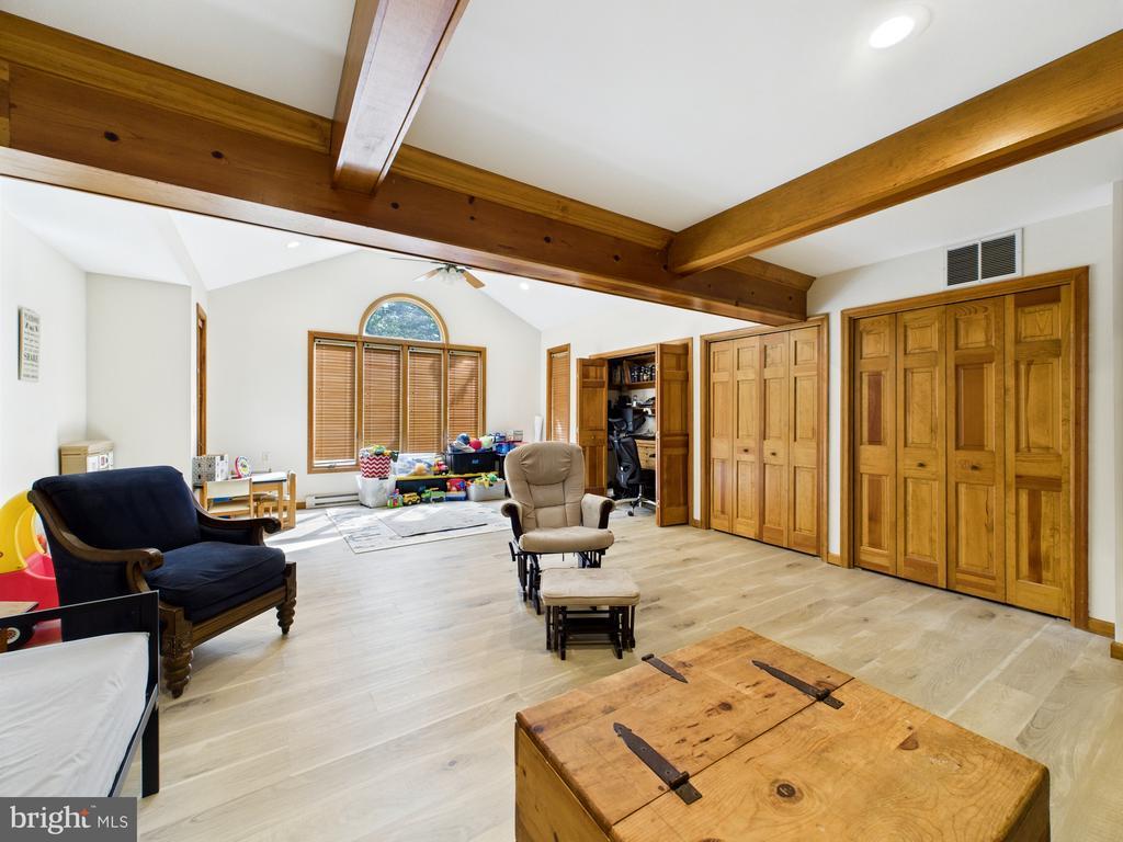 Attic, Exposed Beams, Bathroom - Jetted Tub, Stall Shower, Bathroom - Walk-In Shower, Built-Ins, Carpet, Entry Lvl BR, Pantry, Master Bath(s), Recessed Lighting, Walk-in Closet(s), Wood Floors