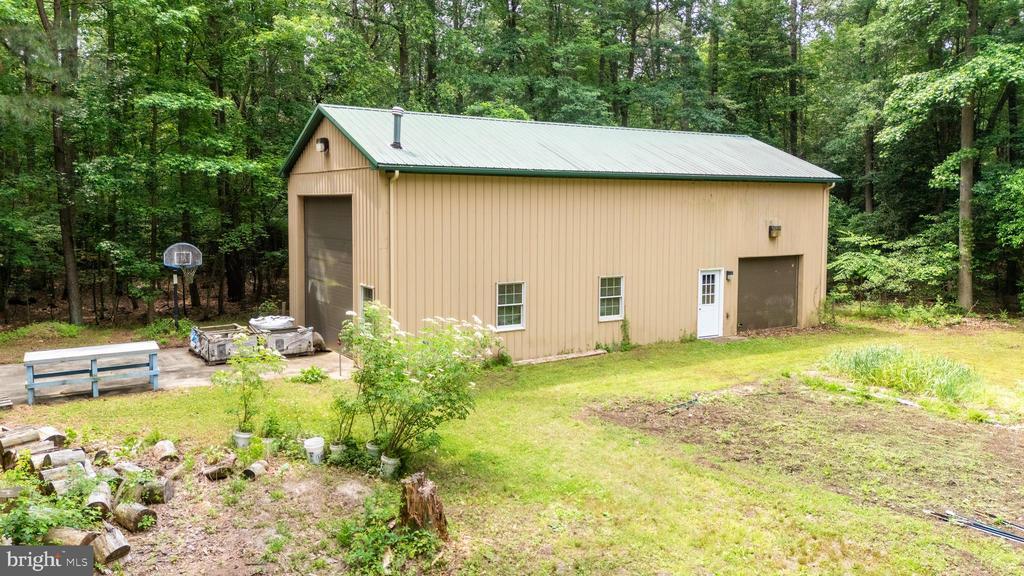 Nestled within the serene Collins Pond Acres community, this one-of-a-kind 3-bedroom, 2.5-bath contemporary home, sits on 1 acre and offers the perfect blend of rustic elegance and thoughtful design. This home has been lovingly maintained, boasting many upgrades including a new roof, all new siding, fresh paint throughout and new gutters just to name a few! From the moment you step inside, you're greeted by soaring vaulted ceilings, rich knotty pine, and the warm glow of a wood-burning fireplace. The spacious living room flows seamlessly into a defined dining area, where sliding doors invite you to step out onto the expansive patio, ideal for entertaining or soaking in the peaceful, wooded surroundings. The kitchen offers custom built Australian Eucalyptus cabinetry and a generous amount of prep space. The separate family room adds versatility, along with additional built-in storage throughout the home. The main-level primary suite is a private sanctuary, featuring a luxurious ensuite bath with jetted tub, and direct access to a sun-drenched Florida room, perfect for a quiet morning coffee or evening unwind. Upstairs, you’ll find two additional bedrooms, a full bath, and plenty of walk-in storage, making this home as functional as it is beautiful. Outside, the backyard offers unmatched privacy, surrounded by towering trees and flowering perennials. A 30x60 pole barn complete with an office, a full bath, and a loft, provides endless options. Whether you need a guest suite, a studio, home office or even more storage, while still providing ample room for your boat or RV! Flowering and fruiting perennials grace the front yard, including mature grape vines, peach and fig trees. Just a short drive provides access to charming local shops, groceries, great restaurants, and only 45 minutes to the beautiful Delaware beaches. No HOA fees, plus a 2-car attached garage, deep-well water, whole-home filtration, and low Sussex County taxes. If you’re searching for character, comfort, and total privacy, this extraordinary property is a must-see. Schedule your private showing today.