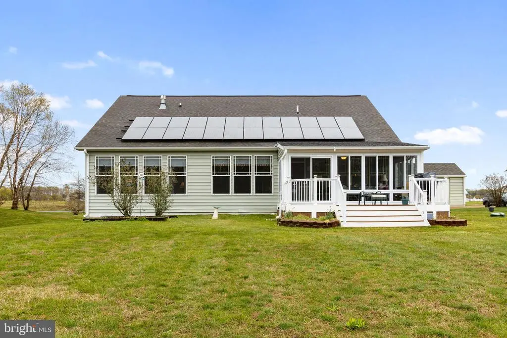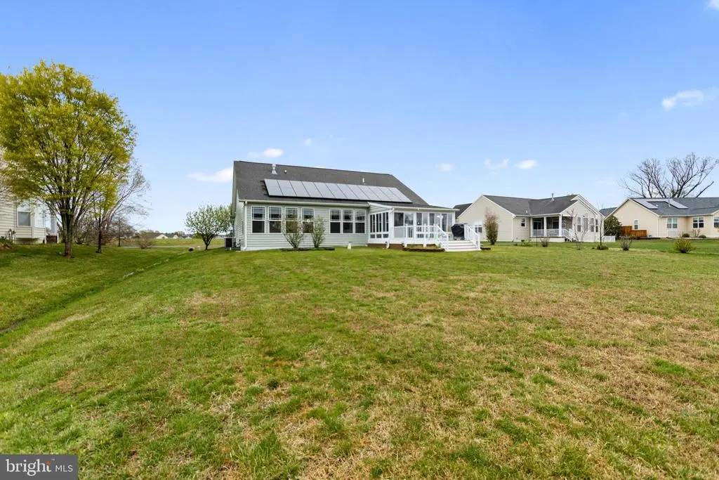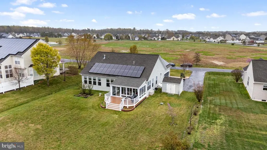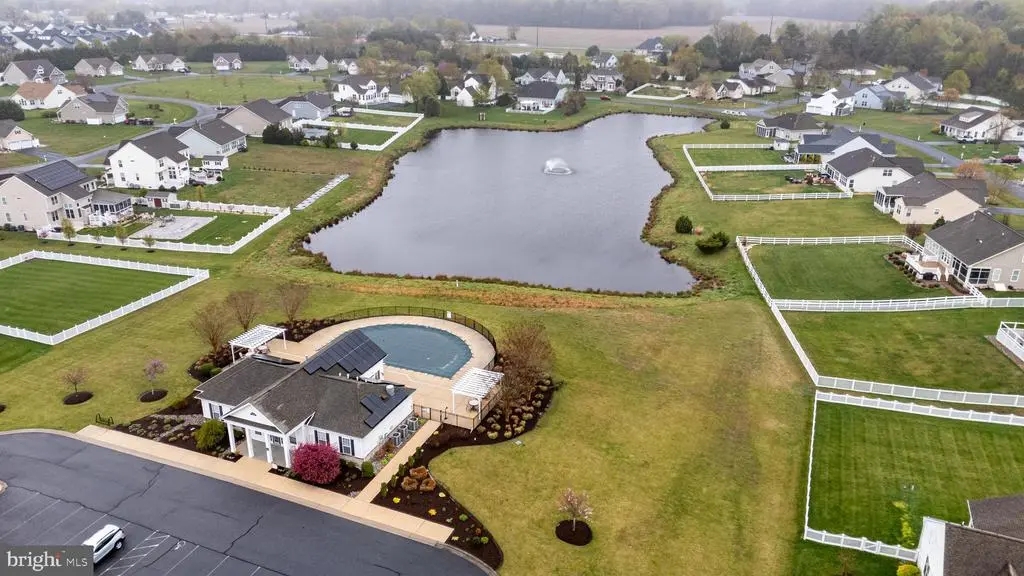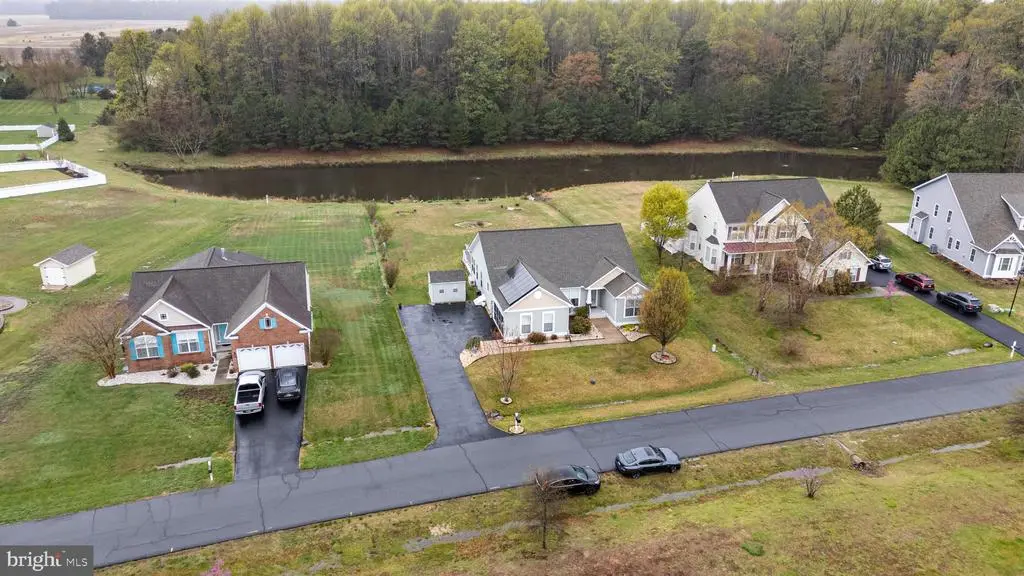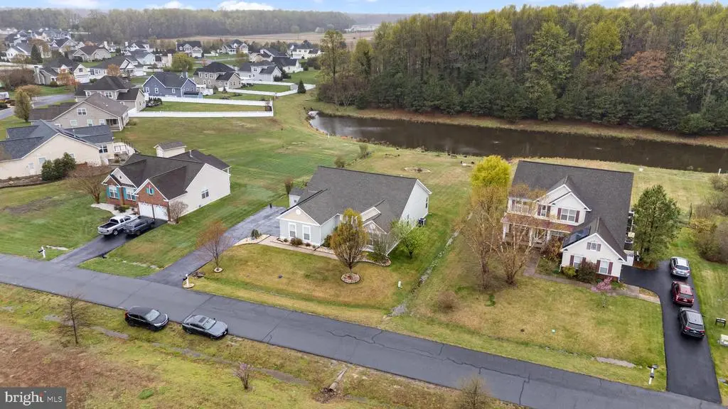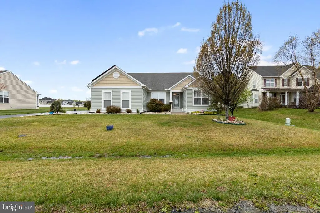 This home is like living on a Golden Pond! This beautiful coastal design is on a magnificent lot. Looking past the water, this home backs to a mature, colorful tree line. Serenity surrounds the water, and the frequent wildlife visitors include swans, ducks, and a variety of other water birds. There are thoughtfully placed perennials all around the lot that you will be able to enjoy in their maturity. This home is owned by the original owner and has been well-cared for and maintained - and it shows! The careful selections made during construction are evident throughout this home. The hardwoods are sparkling! THIS KITCHEN....There is so much cabinet space and counterspace in this well-appointed kitchen. You can see the family room, breakfast nook, den, and enclosed room all directly from your kitchen- such a dynamic feature, not to mention that you have a clear view of the water- how peaceful! The kitchen features a gas cooktop, a double oven, a center island, and stool seating. The family room has large, attractive windows that overlook the rear yard and the water. It also has a gas-burning fireplace and a vaulted ceiling. The breakfast nook also has an expanded water view, rounding out the kitchen with a cheery eat-in area. The den is light and airy and it just relaxes you when you step in. This room leads to an all-glass sunroom that will be the hub of your peacefulness, watching the water, nature, and trees evolve over the seasons. An attractive deck ties this all in. There is a private laundry room off the kitchen that has additional cabinet space. The wide foyer leads you to the open floor plan. The dining room is oversized and elegant. The primary bedroom has a tray ceiling, double walk-in closets, and a large primary tiled bathroom with a walk-in tiled shower stall and separate soaking tub. The two secondary bedrooms are spacious and get plenty of sunshine. Enjoy the side-entry, oversized two-car garage. There is a conveniently placed storage shed which is a welcomed bonus. You can access and stand up in the crawl space. Come and visit and see if this is your new coastal home in the sought-after community, Ridings at Rehoboth. This neighborhood has an active clubhouse with an oversized outdoor pool that backs to a pond.