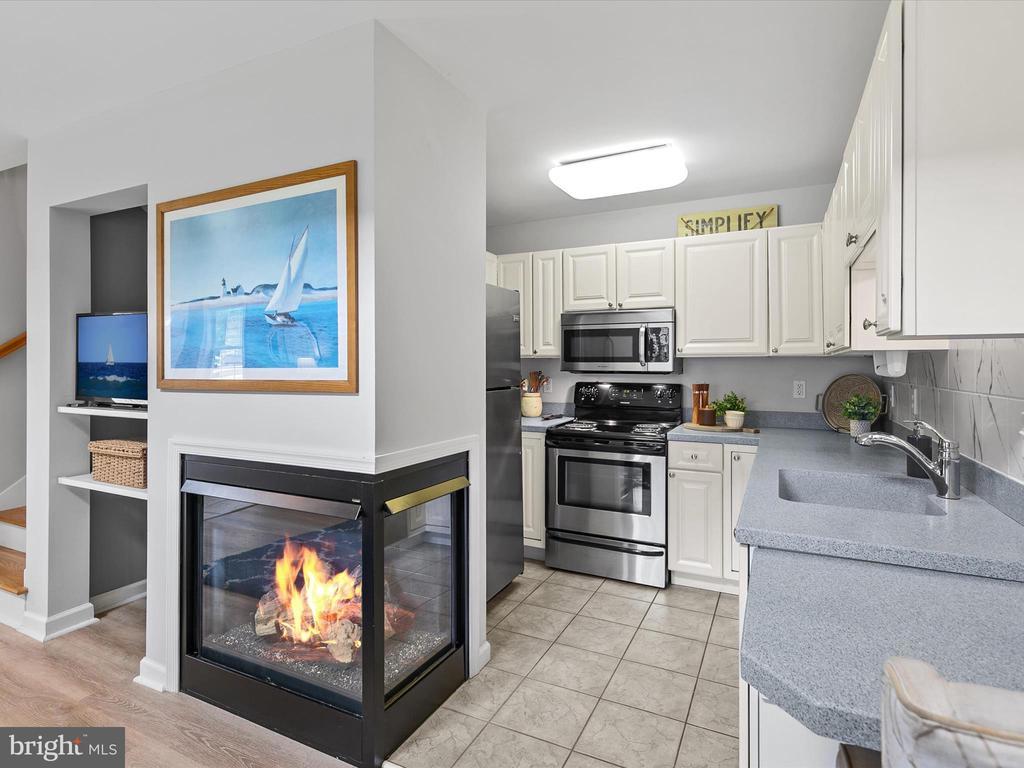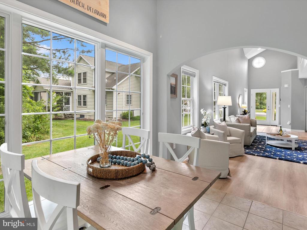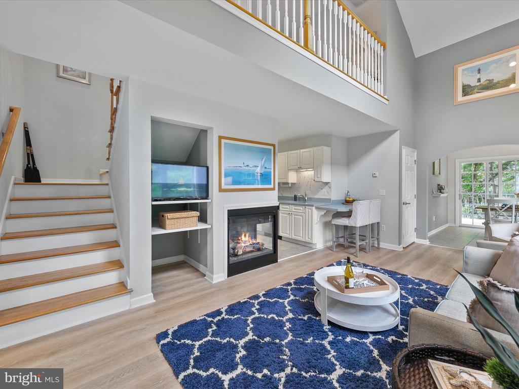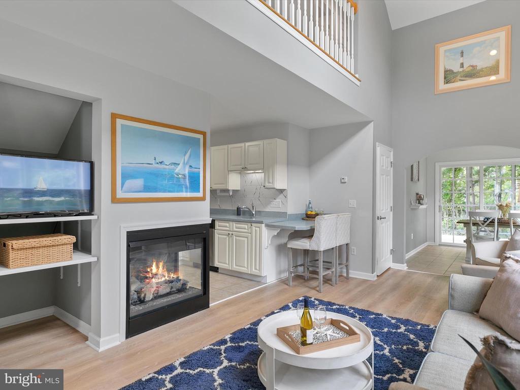 Back on market by no fault of the seller! Buyers' financing fell-through. Welcome to this beautifully appointed end-unit villa in the established community of Waterside—where charm, comfort, and coastal living seamlessly come together. Nestled on a lot framed by mature trees and pretty landscaping, this 2-story, 3-bedroom, 2.5-bath home is highlighted by attractive curb appeal with a welcoming covered front porch that sets the tone for the bright, inviting spaces within. Sold fully furnished, this turnkey property is ready for immediate enjoyment and features newly installed luxury vinyl plank flooring in the main living areas and two upstairs bedrooms, while the main-level bedroom offers plush new carpeting for added comfort. Step inside to a light-filled foyer that flows effortlessly into the open-concept layout. The living room showcases a soaring ceiling and a cozy two-sided gas fireplace, shared with an adjacent sitting area—ideal for relaxing, reading, or hosting guests. The well-appointed kitchen is both functional and stylish, featuring upgraded countertops, a breakfast bar, stainless steel appliances, crisp white cabinetry, and a modern tile backsplash—perfect for everything from casual meals to entertaining. A wide arched doorway leads to the separate dining area, where picture windows and a sliding glass door fill the space with natural light and provide access to the rear deck for seamless indoor-outdoor living. The spacious main-level primary suite offers privacy and ease, complete with an en-suite bath. A powder room and laundry room round out the first floor. Upstairs, a flexible loft space presents endless possibilities, use it as a home office, guest area, or media nook, while the second bedroom is generously sized to accommodate two full-size beds with ease. Additional highlights include a one-car-attached garage for convenience and extra storage. Residents of Waterside enjoy access to a sparkling community pool and are ideally located just a short bike ride or drive to Bethany Beach, with Fenwick Island and Ocean City, MD, just minutes away. Whether you're searching for a year-round residence, weekend escape, or investment opportunity, this fully furnished villa is ready to enjoy—just in time for summer. Don’t miss the chance to make it yours!