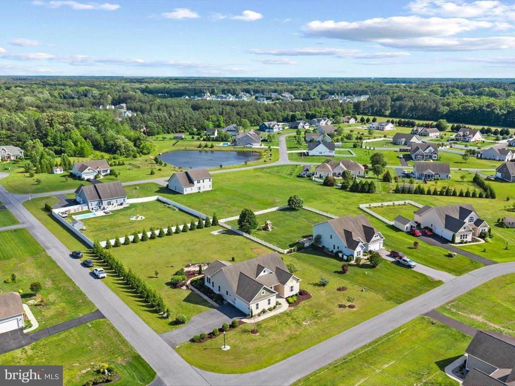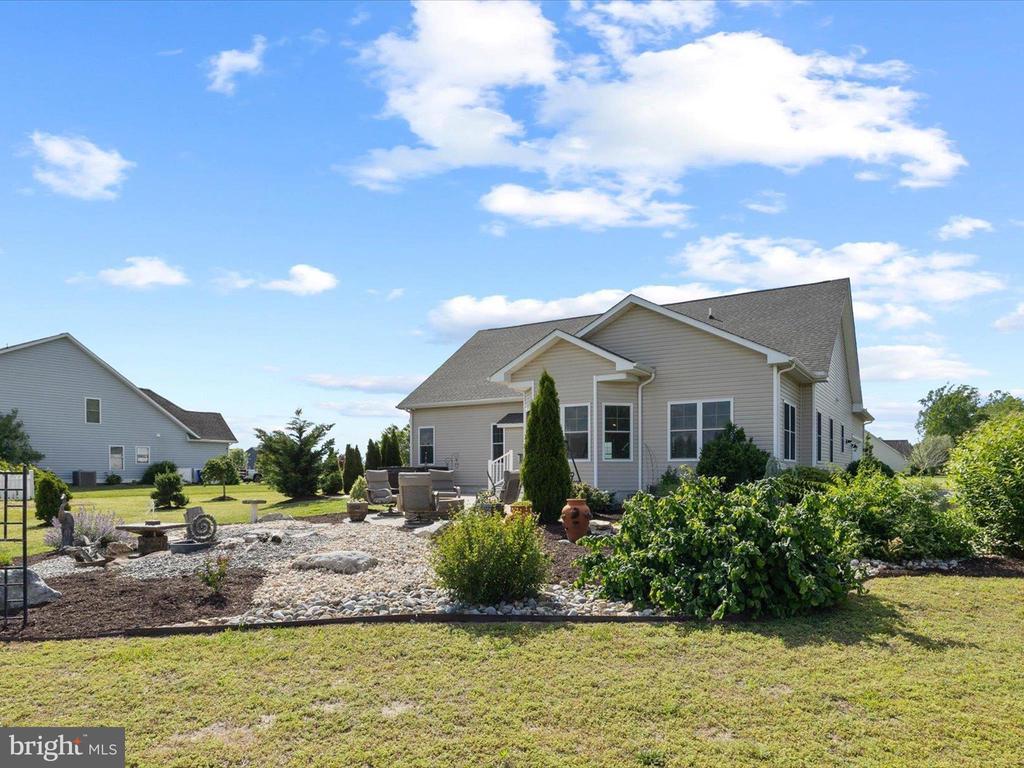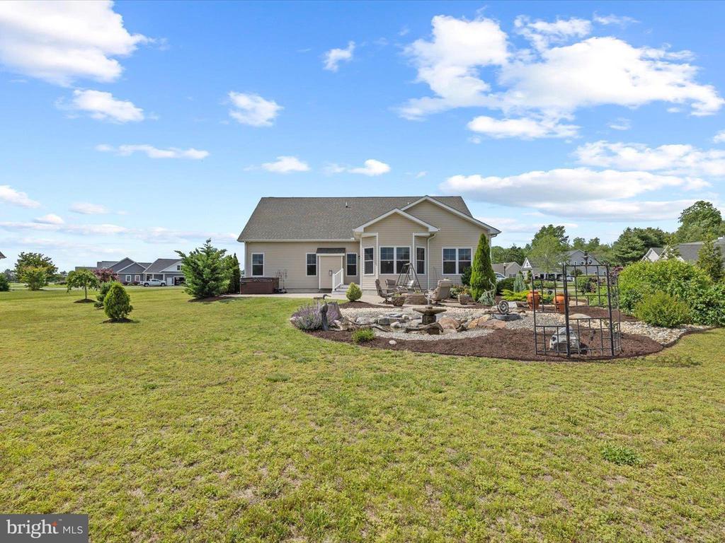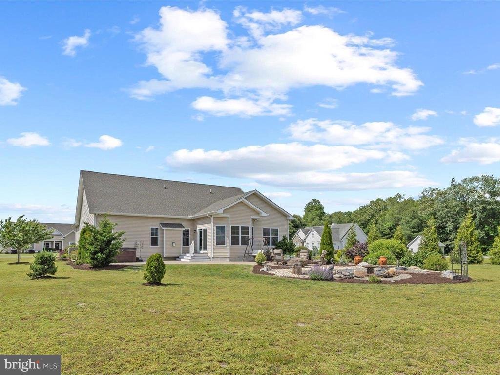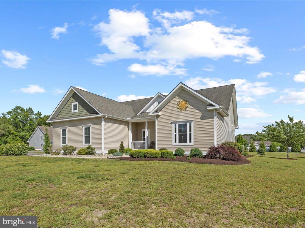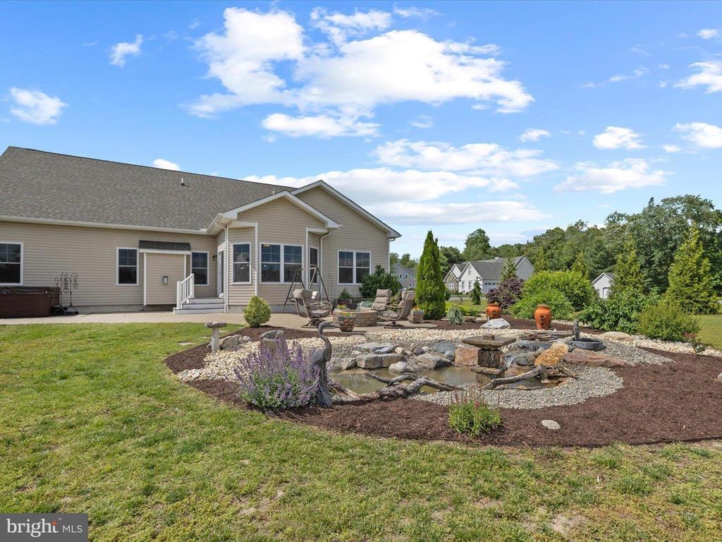 Welcome to your private oasis in Black Creek Cove, where thoughtful design, peaceful surroundings, and meticulous landscaping create the perfect countryside retreat. This beautifully maintained Insight-built home is set on over of an acre in the scenic outskirts of Georgetown, surrounded by nature and mature trees for a sense of privacy and serenity. The tree-lined backyard is the true highlight - professionally landscaped and ready for outdoor enjoyment, featuring a charming garden pond, a cozy fire pit, and a hook-up for a future hot tub. A welcoming front porch invites you to relax and take in the tranquil setting, while inside, the spacious and airy layout is ideal for everyday living and entertaining. As you enter the home, you will be welcomed by a bright foyer that seamlessly flows to a refined open-concept living area complete with a gas fireplace framed by natural light from twin windows. The space is elevated by a custom beach mural that adds a whimsical, coastal charm that infuses the home with warmth, personality, and a relaxed seaside vibe. The gourmet kitchen is a chef’s dream, offering granite countertops, rich wood cabinetry, stainless-steel appliances, a gas cooktop, double wall oven, an island with a sink and breakfast bar all illuminated by tasteful pendant lighting. The open dining area makes gatherings easy and inviting. On one side of the home, you'll find three spacious bedrooms, including two with brand new carpeting, along with a full hall bath. On the opposite side, the primary suite offers a peaceful escape, complete with a tray ceiling, a large walk-in closet, and a private sitting room, ideal for reading, relaxing, or a quiet cup of coffee. The en suite bath features refined finishes for added comfort. Additional highlights include a laundry room, pantry, two-car garage for everyday convenience. The home also comes with a one-year transferable warranty that activates at settlement and an assumable VA loan. Located just 20 miles from both Rehoboth Beach and Bethany Beach, this home offers the perfect blend of rural charm and coastal proximity. Whether you're looking for a year-round residence or a weekend escape, this is a property that delivers comfort, space, and style.