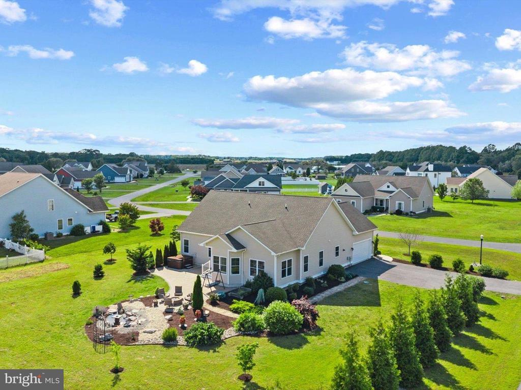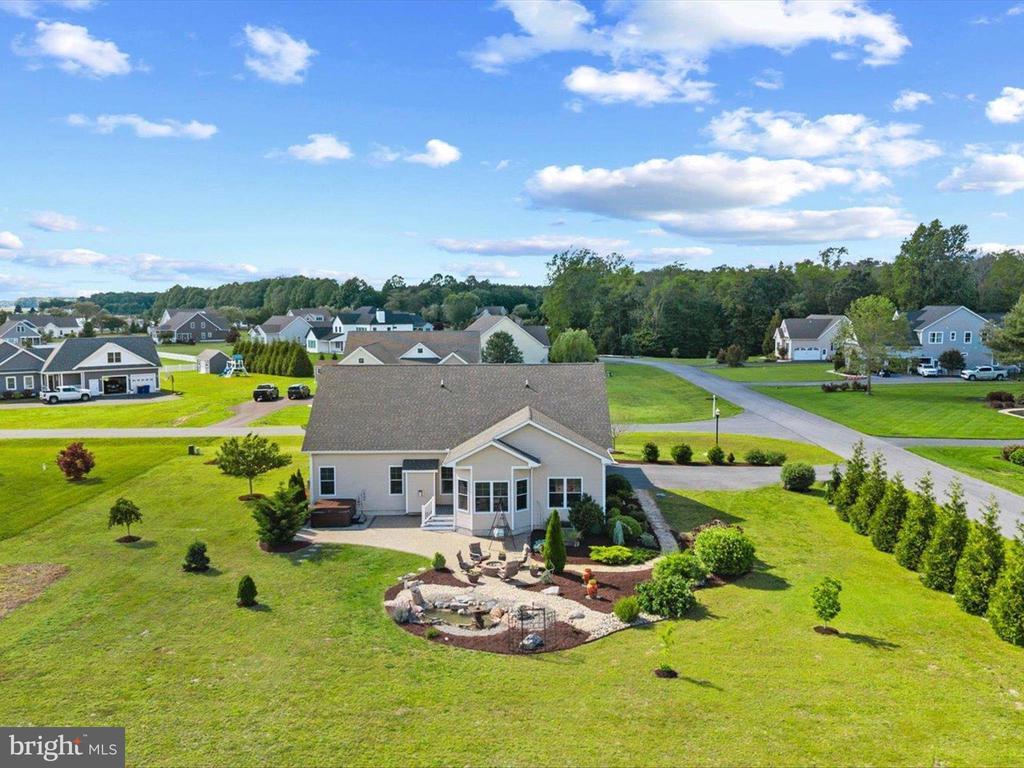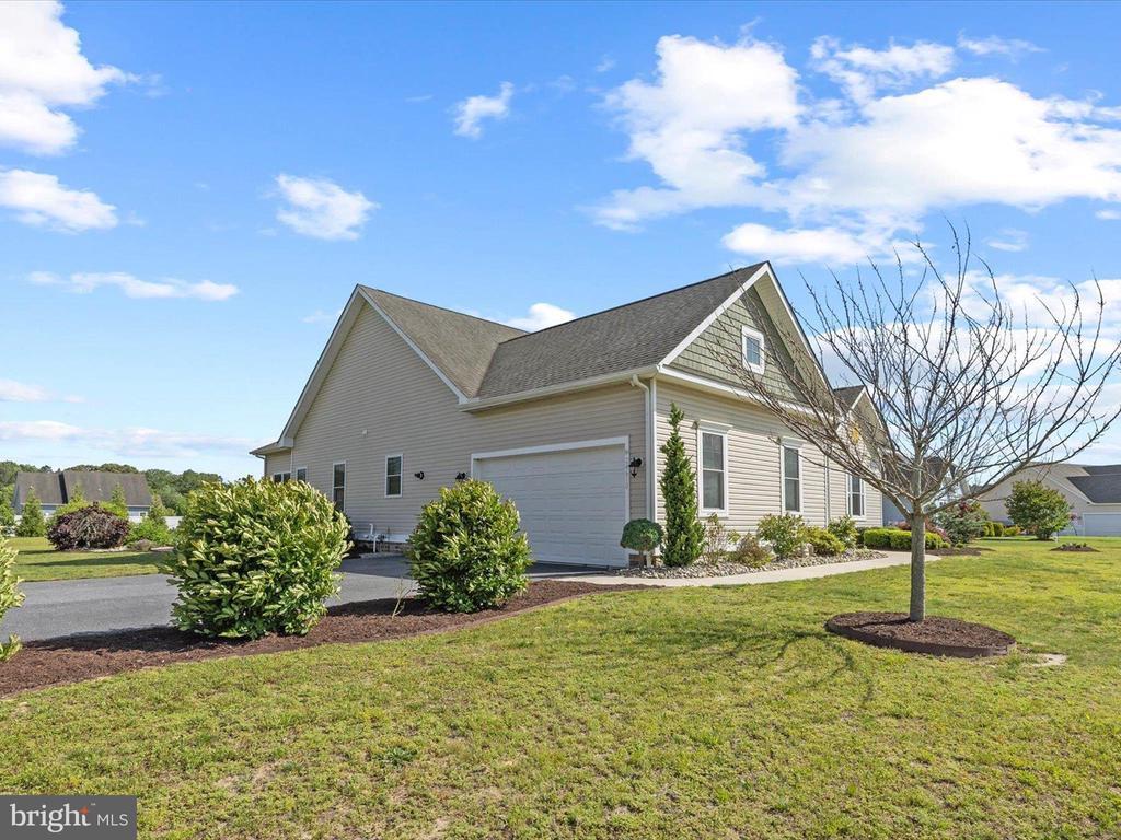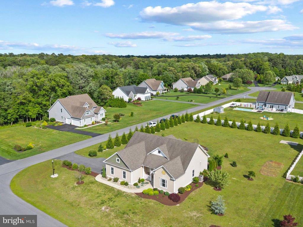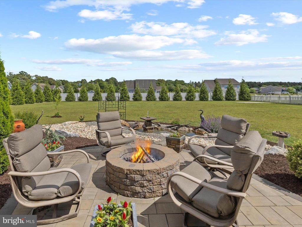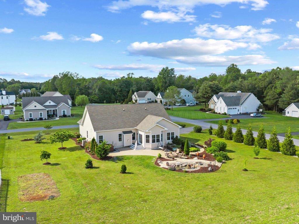 Welcome to your private oasis in Black Creek Cove, where thoughtful design, peaceful surroundings, and meticulous landscaping create the perfect countryside retreat. This beautifully maintained Insight-built home is set on over of an acre in the scenic outskirts of Georgetown, surrounded by nature and mature trees for a sense of privacy and serenity. The tree-lined backyard is the true highlight - professionally landscaped and ready for outdoor enjoyment, featuring a charming garden pond, a cozy fire pit, and a hook-up for a future hot tub. A welcoming front porch invites you to relax and take in the tranquil setting, while inside, the spacious and airy layout is ideal for everyday living and entertaining. As you enter the home, you will be welcomed by a bright foyer that seamlessly flows to a refined open-concept living area complete with a gas fireplace framed by natural light from twin windows. The space is elevated by a custom beach mural that adds a whimsical, coastal charm that infuses the home with warmth, personality, and a relaxed seaside vibe. The gourmet kitchen is a chef’s dream, offering granite countertops, rich wood cabinetry, stainless-steel appliances, a gas cooktop, double wall oven, an island with a sink and breakfast bar all illuminated by tasteful pendant lighting. The open dining area makes gatherings easy and inviting. On one side of the home, you'll find three spacious bedrooms, including two with brand new carpeting, along with a full hall bath. On the opposite side, the primary suite offers a peaceful escape, complete with a tray ceiling, a large walk-in closet, and a private sitting room, ideal for reading, relaxing, or a quiet cup of coffee. The en suite bath features refined finishes for added comfort. Additional highlights include a laundry room, pantry, two-car garage for everyday convenience. The home also comes with a one-year transferable warranty that activates at settlement and an assumable VA loan. Located just 20 miles from both Rehoboth Beach and Bethany Beach, this home offers the perfect blend of rural charm and coastal proximity. Whether you're looking for a year-round residence or a weekend escape, this is a property that delivers comfort, space, and style.