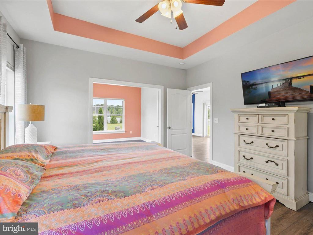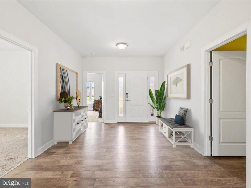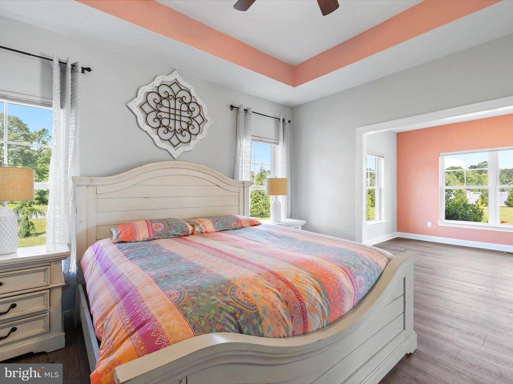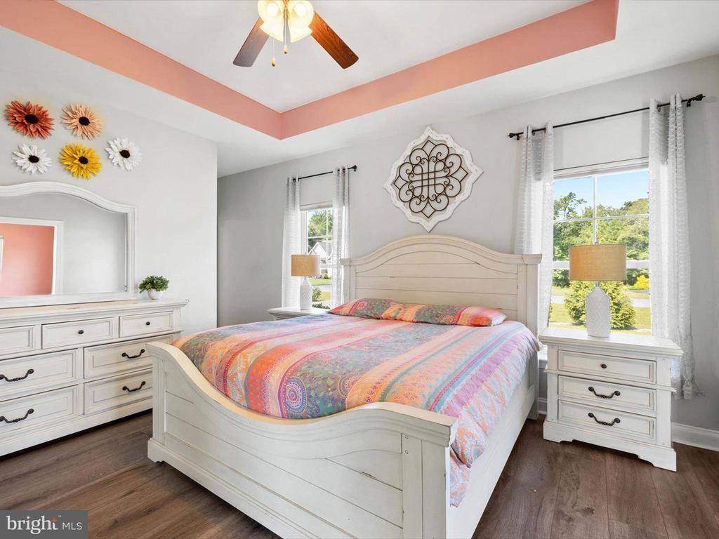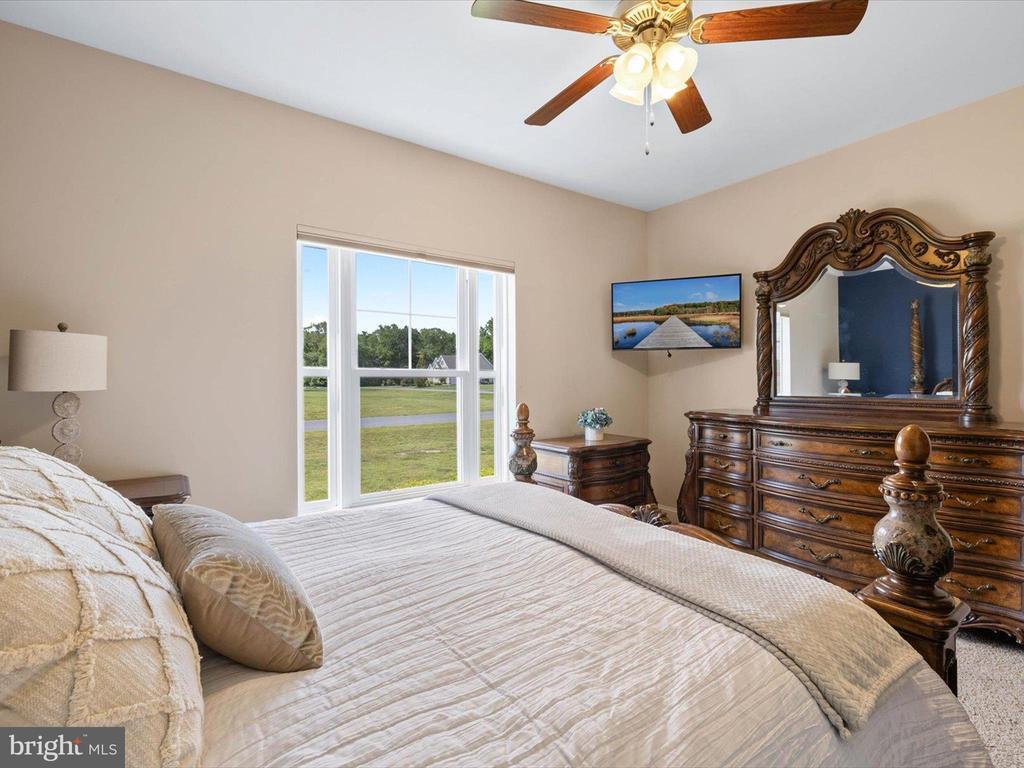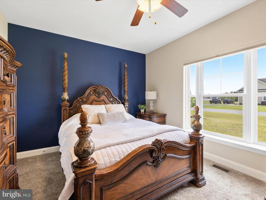 Welcome to your private oasis in Black Creek Cove, where thoughtful design, peaceful surroundings, and meticulous landscaping create the perfect countryside retreat. This beautifully maintained Insight-built home is set on over of an acre in the scenic outskirts of Georgetown, surrounded by nature and mature trees for a sense of privacy and serenity. The tree-lined backyard is the true highlight - professionally landscaped and ready for outdoor enjoyment, featuring a charming garden pond, a cozy fire pit, and a hook-up for a future hot tub. A welcoming front porch invites you to relax and take in the tranquil setting, while inside, the spacious and airy layout is ideal for everyday living and entertaining. As you enter the home, you will be welcomed by a bright foyer that seamlessly flows to a refined open-concept living area complete with a gas fireplace framed by natural light from twin windows. The space is elevated by a custom beach mural that adds a whimsical, coastal charm that infuses the home with warmth, personality, and a relaxed seaside vibe. The gourmet kitchen is a chef’s dream, offering granite countertops, rich wood cabinetry, stainless-steel appliances, a gas cooktop, double wall oven, an island with a sink and breakfast bar all illuminated by tasteful pendant lighting. The open dining area makes gatherings easy and inviting. On one side of the home, you'll find three spacious bedrooms, including two with brand new carpeting, along with a full hall bath. On the opposite side, the primary suite offers a peaceful escape, complete with a tray ceiling, a large walk-in closet, and a private sitting room, ideal for reading, relaxing, or a quiet cup of coffee. The en suite bath features refined finishes for added comfort. Additional highlights include a laundry room, pantry, two-car garage for everyday convenience. The home also comes with a one-year transferable warranty that activates at settlement and an assumable VA loan. Located just 20 miles from both Rehoboth Beach and Bethany Beach, this home offers the perfect blend of rural charm and coastal proximity. Whether you're looking for a year-round residence or a weekend escape, this is a property that delivers comfort, space, and style.
