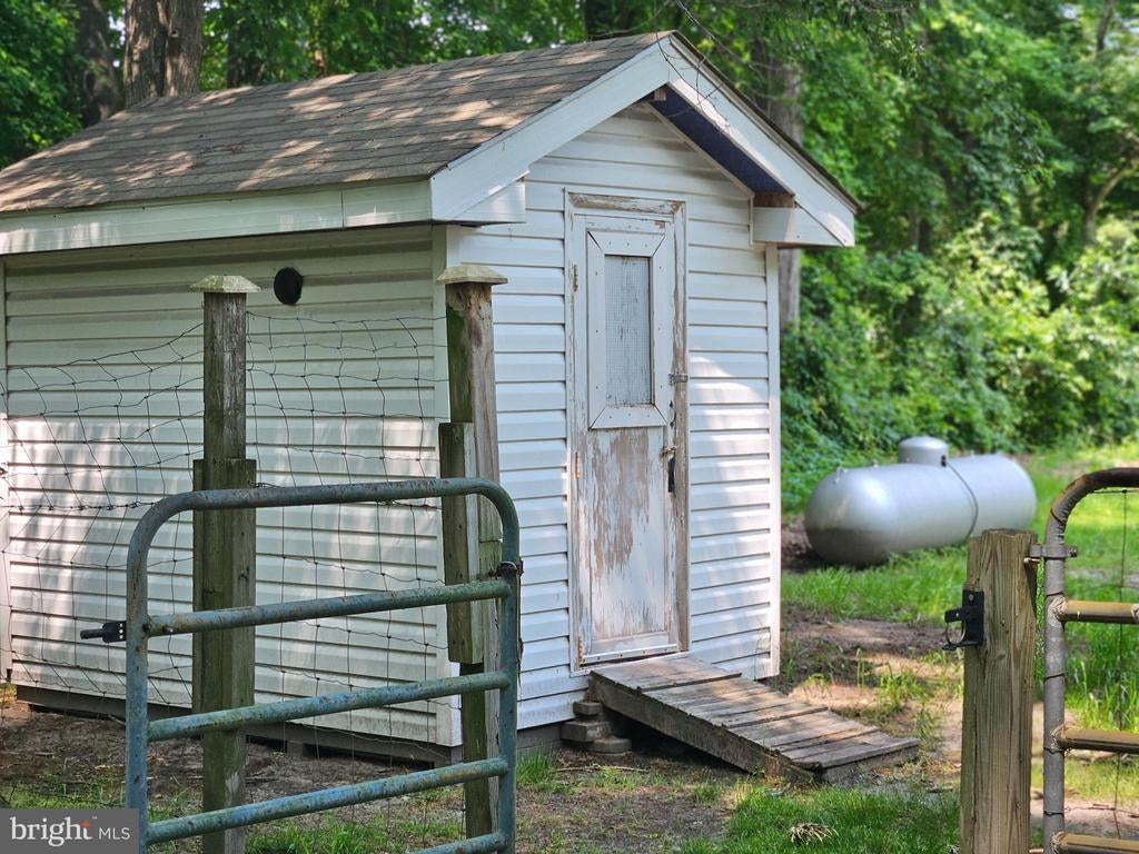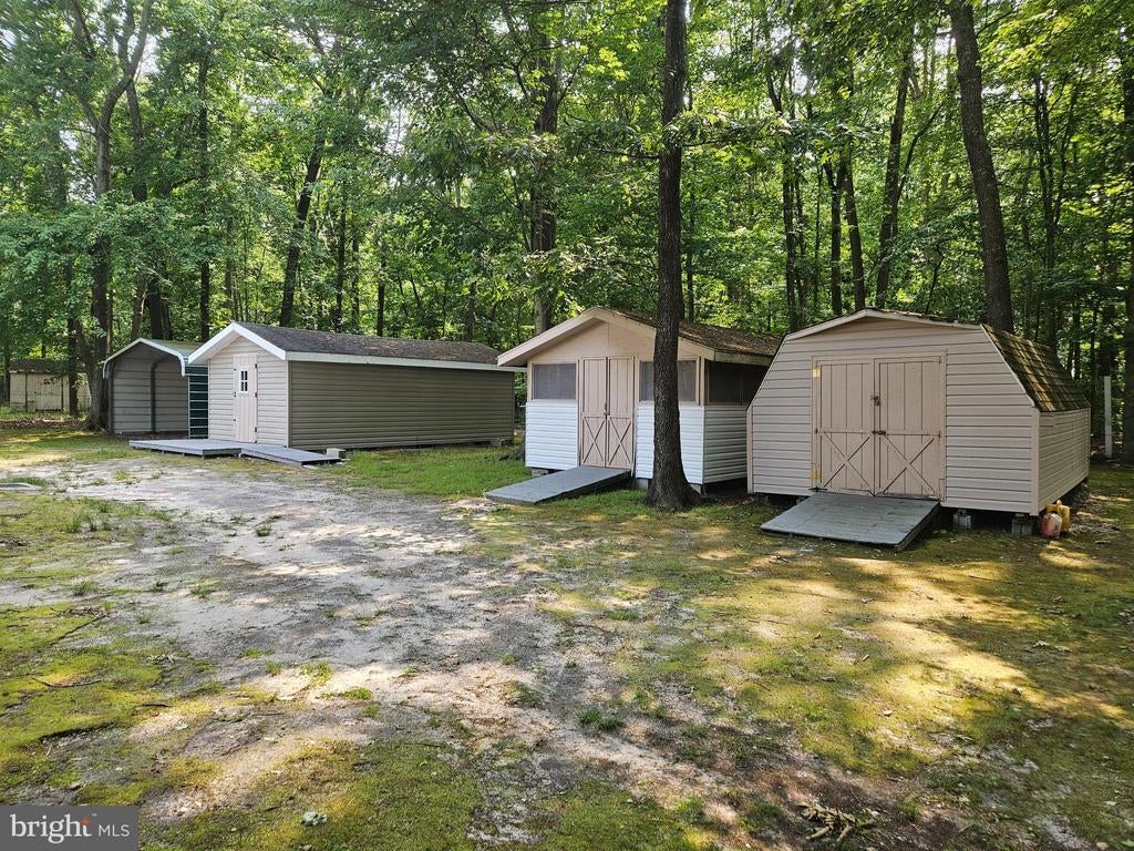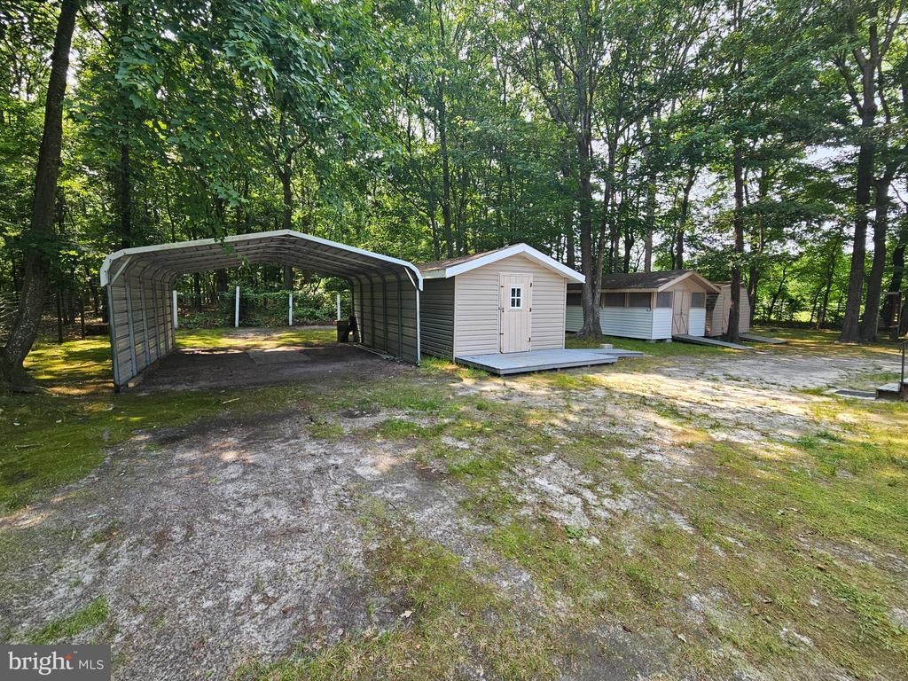 Perfect home for business owner who needs storage sheds. There are 4 on the property! A three bedroom, two bath home sits on .86 acres on a private, fenced, wooded lot. Hardwood floors run throughout most of the house. The primary bedroom has double sinks , a tub and a step in shower. The huge kitchen allows space for meal prep and entertaining, with a large breakfast room attached. The oversized laundry room doubles as pantry/storage space. There is a wonderful 12 x 14 deck off the kitchen for relaxing. The 4 sheds and 2 carports on the property provide plenty of space for your lawn equipment, hobbies or business storage. A circular driveway wraps around the front yard . There is even a crab shack with retractable windows with tile floors that could be used as an office/studio space! The property has a fenced perimeter and best of all NO HOA! This property is move in ready and being sold in "AS IS" condition.