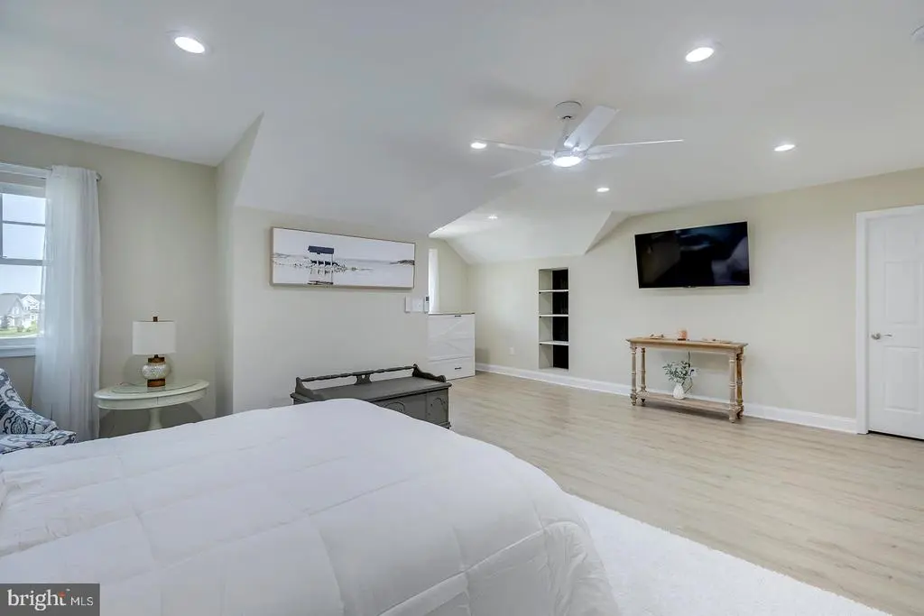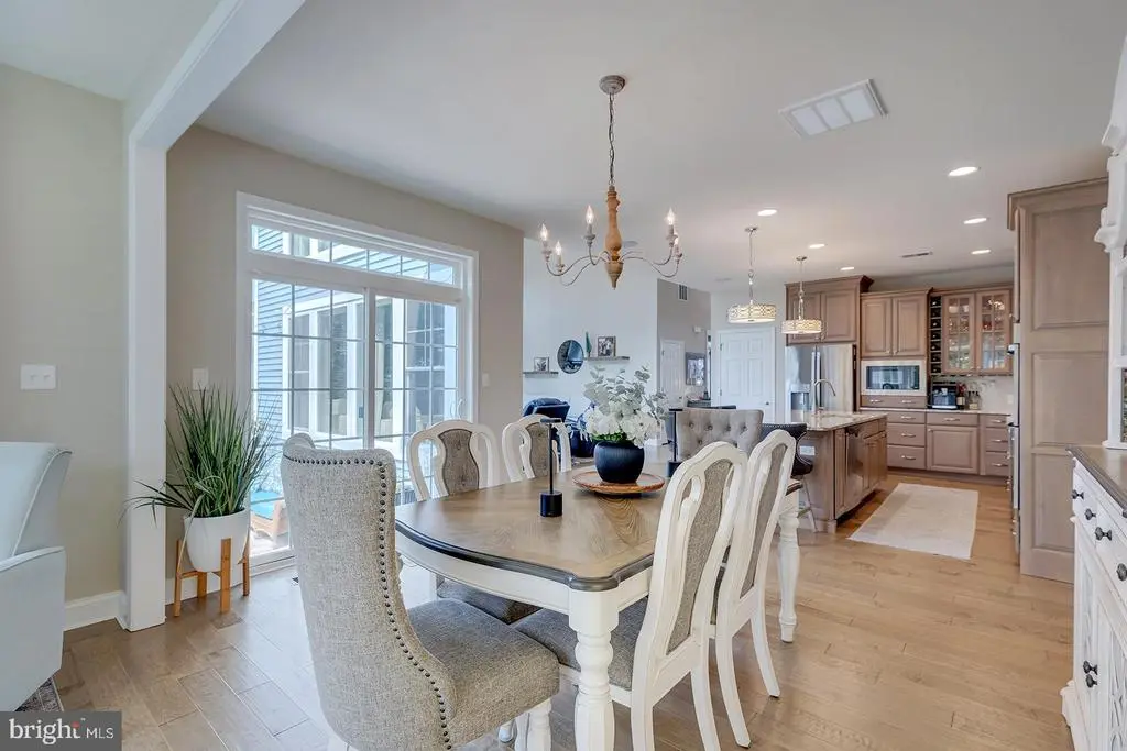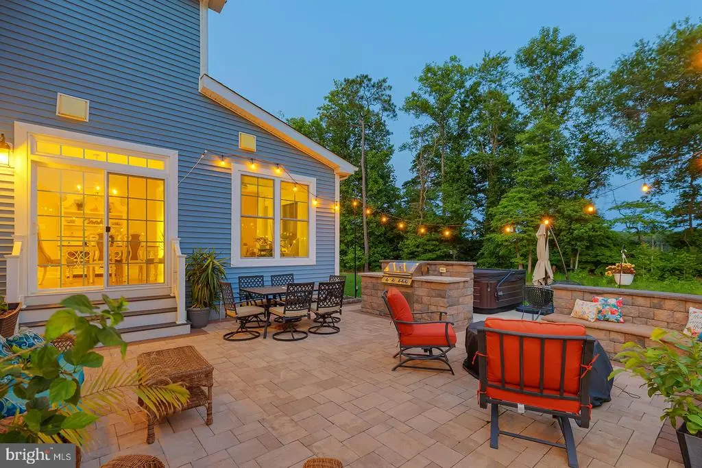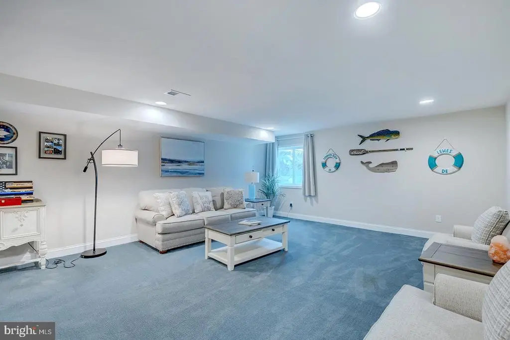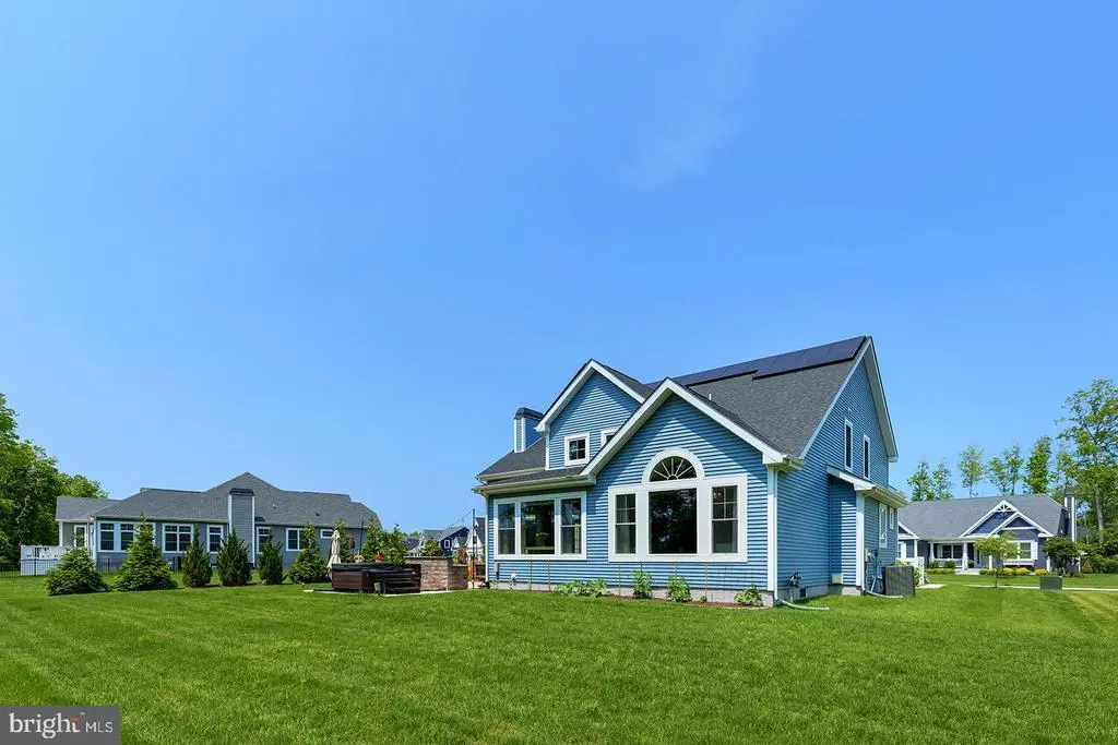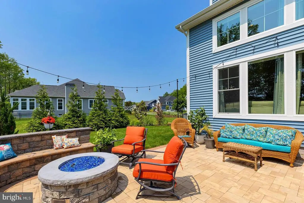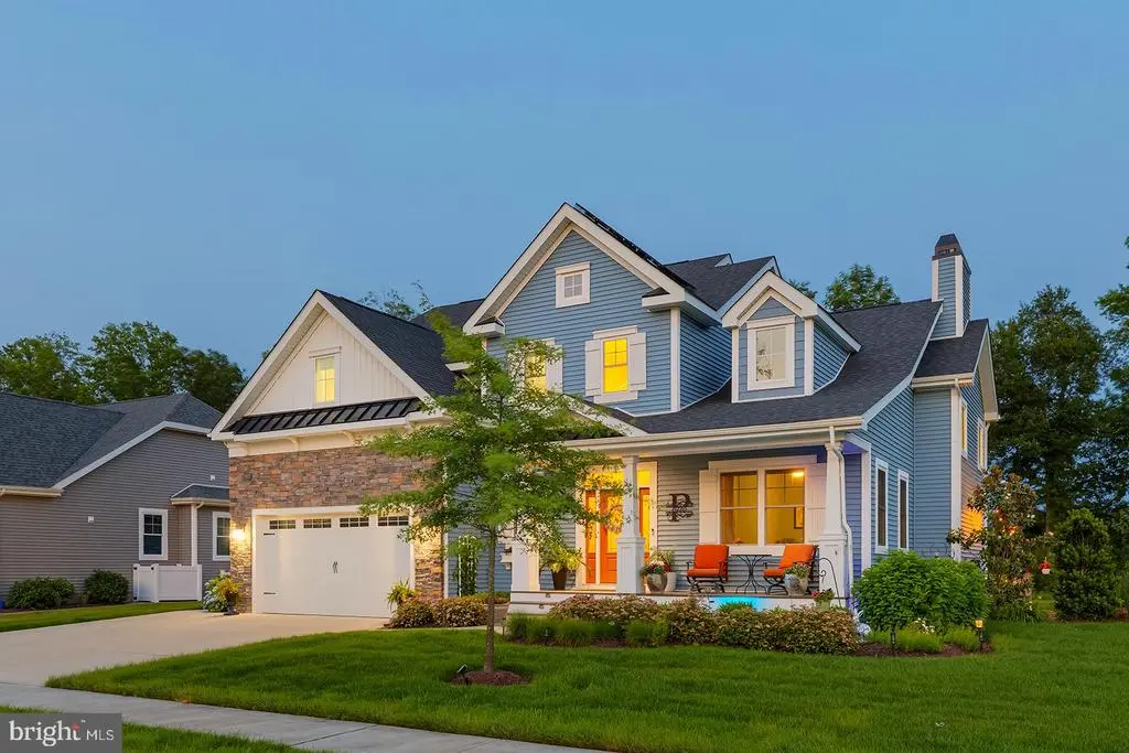 Welcome to this stunning 4-bedroom, 3.5-bathroom residence in the sought-after community of Tidewater Landing in Lewes, Delaware. Offering nearly 5,000 square feet of refined living space, this thoughtfully designed home blends luxury, comfort, and entertaining potential—both indoors and out. Step inside to a grand foyer that opens to a private library/office through elegant French doors. The expansive living room is the heart of the home, featuring a vaulted ceiling, dramatic floor-to-ceiling stone fireplace, and oversized picture windows that flood the space with natural light and include Electric Bond Master shades for those extra sunny days. The open-concept layout seamlessly connects the living room to the chef-inspired kitchen, where you'll find dual wall ovens, a gas cooktop with hood fan, instant hot water tank, center island with added storage and counter seating, SONOS surround sound system, a built-in wine rack, designer light fixtures, recessed lighting, and a spacious pantry. The adjacent dining area, highlighted by a statement chandelier, flows into the sunroom with access to the outdoor oasis. The main-level primary suite is a luxurious retreat with vaulted ceilings, bay and transom windows, Electric Bond Master remote-controlled shades, tray ceiling with fan, crown molding, plush carpeting, and dual walk-in closets. The spa-like ensuite bath offers two separate vanities, a large soaking tub, step-in shower, private water closet, and a bright window for natural light. Upstairs, three additional bedrooms and a full bathroom provide ample space for family or guests, while a loft area with ceiling fan overlooks the main living space, perfect for a quiet reading nook or office. The finished lower level expands your lifestyle options with a media area, bonus room, wet bar with built-in cabinetry and pendant lighting, poker nook, full bathroom, and abundant unfinished storage with a framed 5th bedroom in the basement ready for your vision. The backyard is an entertainer’s dream. A massive hardscaped patio includes a chef’s-grade grill island, cozy fire pit with built-in stone banquette seating, hot tub, and al fresco dining area—all surrounded by a generous, well-maintained yard. This remarkable home in Tidewater Landing offers the best of coastal living, just minutes from Lewes Beach, dining, shopping, and outdoor recreation. Designed for everyday comfort and effortless entertaining, enjoy features like an owned solar panel system with critter guard, natural gas hookups to both the firepit and grill, a Rinnai tankless water heater with individual shut-offs, gutter guards, and garage storage solutions (including shelving and bike racks) reflect the smart functionality throughout. The 2-car garage and driveway with parking for 3 cars accommodate guests when entertaining. Additional irrigation supports your dream garden, while the peaceful wooded backdrop offers rare privacy. With multiple community amenities, a strong neighborhood presence, and furniture negotiable. Don't miss the opportunity to make this home yours!