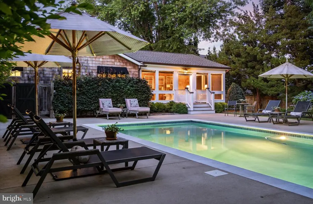 English countryside charm meets coastal cottage living in this exceptional home tucked within the desirable Schoolvue community of Rehoboth Beach. Set on an expansive 125' x 100' lot, the property offers privacy and serenity surrounded by mature trees and lush landscaping. A slate walkway leads to the inviting entrance of this classic shaker-style cottage, where a welcoming front porch sets the tone for seaside living. Inside, timeless details abound. Crisp white pine paneling and wide-plank oak flooring flow throughout, while carefully curated lighting adds warmth and character to each space. The kitchen is a chef’s dream, designed with both form and function in mind, featuring abundant storage, a 6-burner Thermador gas cooktop, dual ovens, and a Sub-Zero refrigerator. The cozy family room is anchored by a gas fireplace, beamed ceilings, and sun-filled windows that frame the natural beauty outside. The thoughtful split floor plan includes four comfortable bedrooms, each with its own designer personality, and two bathrooms with classic finishes, including carefully selected Barber Wilson fixtures. Outdoor living is where this property truly shines. A spacious screened porch provides the perfect setting for casual dining or quiet evenings, while the large 15’ x 30’ heated pool, patio, and professionally landscaped grounds create an ideal space for entertaining or unwinding. Located just a few blocks from downtown Rehoboth and its renowned beaches, this home blends timeless style, modern comforts, and rare privacy in one of the area’s most sought-after neighborhoods. A truly unique opportunity for the most discerning buyer.