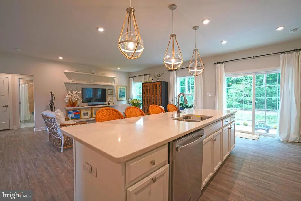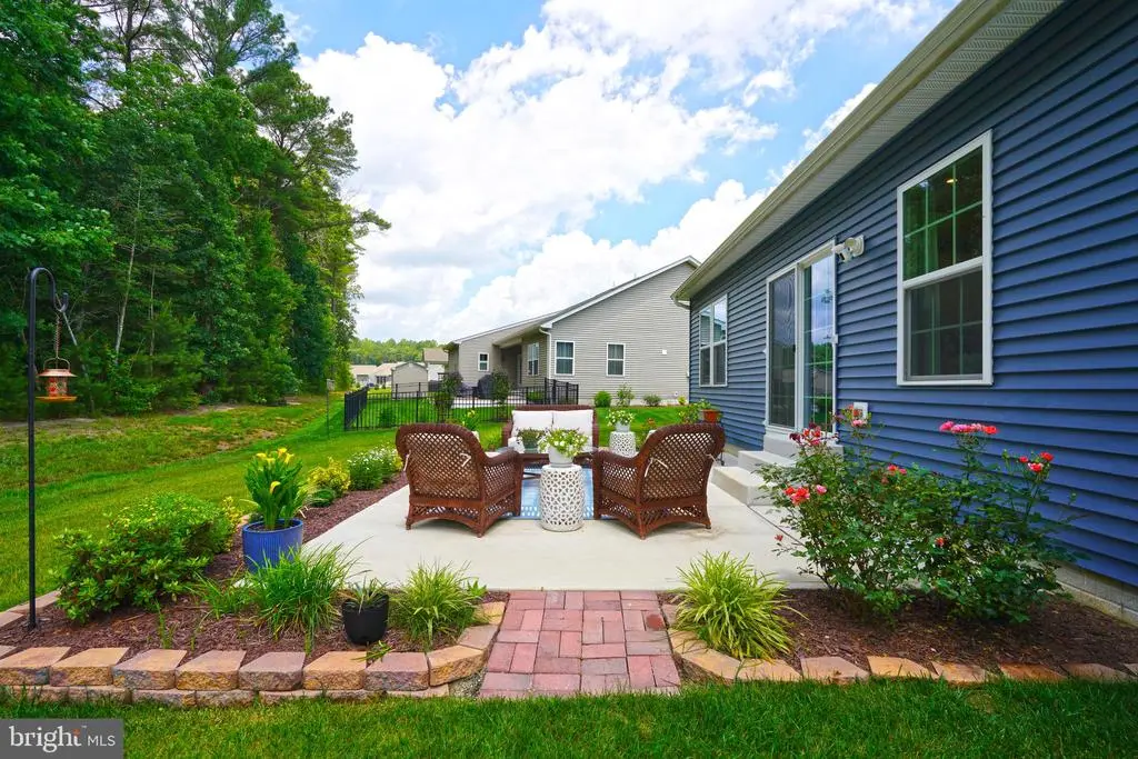 SHOWS LIKE A MODEL! Picture perfect, like new home with a bright open floor plan and upgrades throughout. Home features 3 bedrooms, including the primary suite with custom built-ins, walk-in closet & en suite bath. The gourmet kitchen has quartz counters breakfast bar/island, stainless steel appliances & a gas range. There is luxury vinyl flooring throughout the main living area. The full unfinished basement with rough in plumbing, offers plenty of storage or additional living space options. Situated on a private, landscaped lot backing to trees, the outdoor features include the serene & inviting rear patio overlooking the wooded backdrop and private irrigation system. Affordable HOA fees provide for lawn maintenance, snow and trash removal as well as access to the community clubhouse, fitness room and pool. Truly a private oasis, yet only minutes to downtown Rehoboth and Lewes. Don’t let the Harbeson address fool you – this sought-after community borders the Lewes footprint with easy access to all the area amenities including the beaches. Enjoy proximity to the beach amenities while enjoying the ideal location of this home - all with shopping and restaurants right around the corner. Everything at your finger tips whether you want to stay close to home or head to downtown Lewes and Rehoboth Beach.