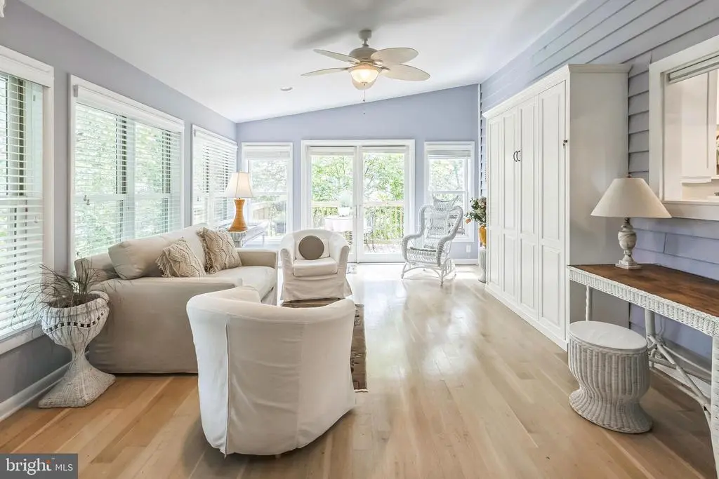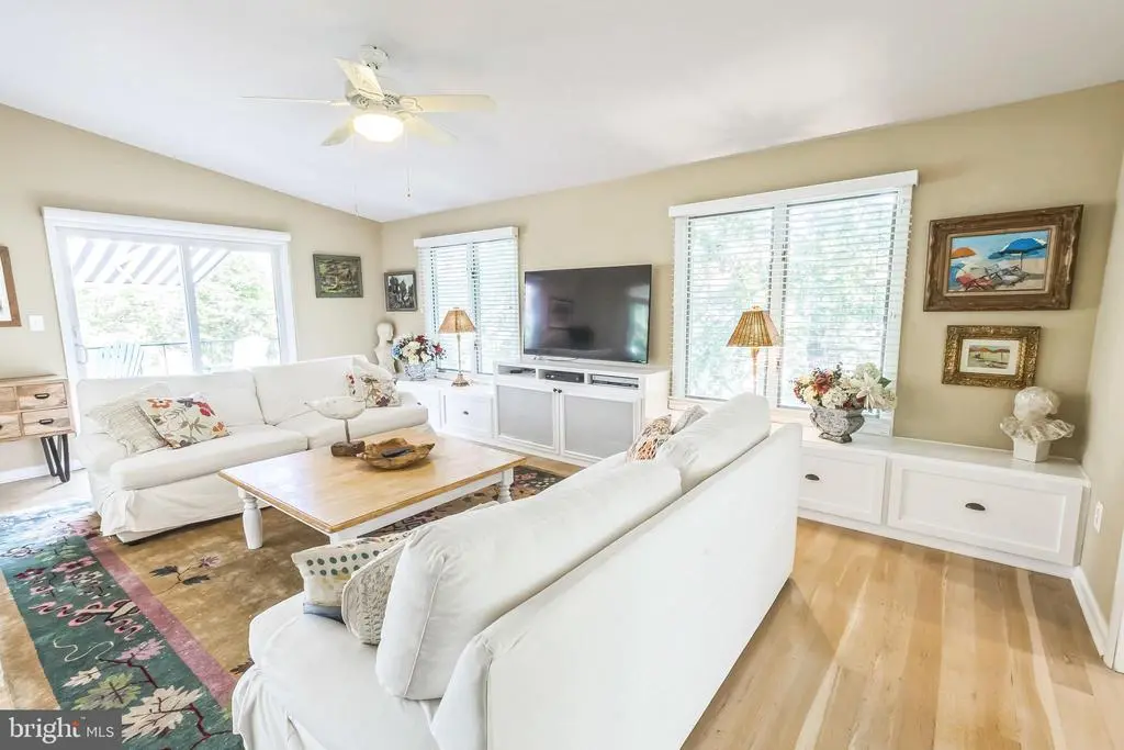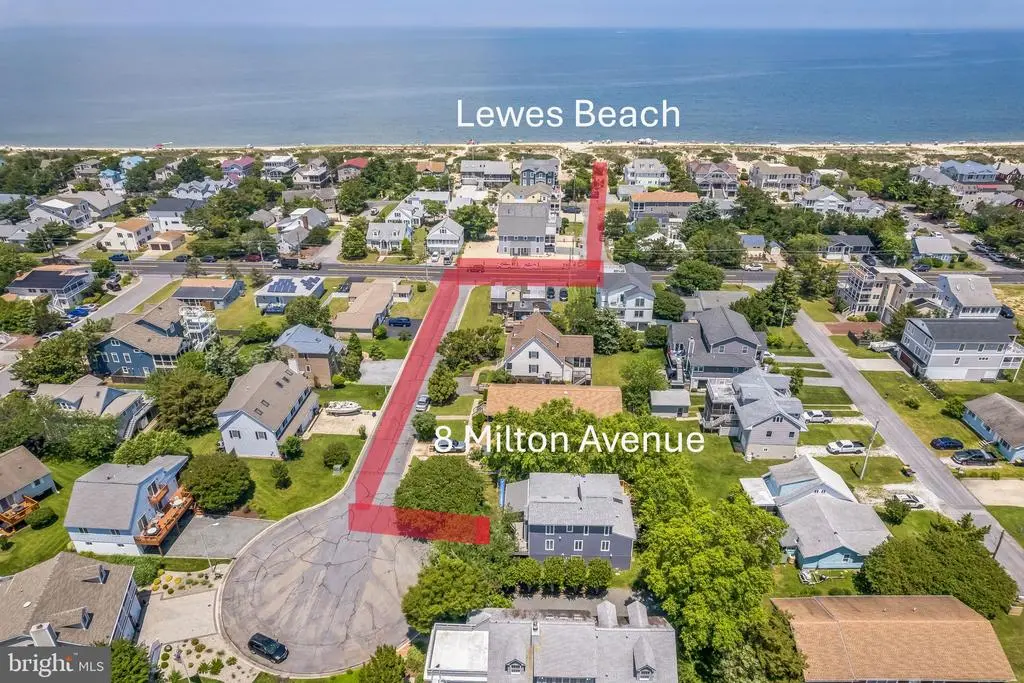 This quintessential Lewes beach cottage, two minutes (five homes), from a picture-perfect, family-friendly beach, is far from day-trip crowds and parking lots. +++The stylish home offers light-drenched open-concept social spaces, high ceilings, and every conceivable seaside amenity, all within a brief stroll of the Lewes Canal and prime shops and restaurants. <br><br> From the beach, you can view visiting dolphins and participate in a range of water sports and activities. +++ sunset bonfires, and off-hour doggie beach walks await. Safely park kayaks and beach chairs by the boardwalk overnight.<br><br>Cape Henlopen State Park, with its broad array of programs, activities, and biking/nature trails, is only two miles away. +++The home is ideally located in a private green oasis, surrounded by tall, dense trees, at the end of a quiet cul-de-sac abutting Lewes’ protected marshes. <br><br> From the large new deck along the front of the house, view cattails, deer, foxes, hawks, and ubiquitous bunnies. +++Walls of windows, vaulted ceilings, and remote-controlled skylights illuminate the interior, which extends from the large, multi-chef kitchen through a dining room easily seating twelve, to a big comfy living-entertainment room and giant enclosable sunroom with Murphy bed to use as an extra bedroom. +++<br><br>Two sets of double glass doors in the dining and living rooms open onto a huge front deck with an elegant, remotely-retractable awning. <br><br>The leafy back deck outside the glass sunroom French doors is perfect for morning coffee, private chats, and, thanks to a large stainless utility sink and propane line, easy BBQ prep.. +++<br><br>Gleaming pale oak hardwood floors unify the main level. A muted indoor-outdoor carpet covers the upper stairs, bedrooms, and hall. Each window is fitted with real wood plantation shutters. +++Five ample bedrooms and 3 ½ bathrooms, plus a sunny small room perfect for nursery or child’s hideaway, are spread across three floors. The two main-floor bedrooms have en-suite bathrooms. <br><br>The large, modern, open kitchen features spectacular, custom-made beach-glass counters (costing more than $20,000), and can accommodate several chefs hosting many friends at the eat-in counter bar. +++The kitchen’s white wood, custom, inner-lit cabinets boast self-close doors, slide-out shelves, and a large pantry. High-end appliances include gas stove, large dishwasher, double-wide stainless steel fridge, and separate wine cooler. Three vintage Deco ceiling lights overlook all. +++In the living room, six large storage drawers, along an entire wall, allow convenient storage of games, puzzles, and beach paraphernalia. <br><br>On the upstairs landing, a large built-in computer area, with five-foot drawered desk and open shelving, allows for quick email checks or printing tickets for the next flight. <br><br>The house features a huge above-grade lower level for conversion to a mother-in-law suite, with two outside entrances, bright front windows, new floors, separate storage room, double closet, cable TV, and lots more storage. +++The big lower-level laundry room, has an extra-large washer and dryer for beach towels and quick linen changes, plus ample folding, drying, and ironing space, a large stainless utility sink, and a spare toilet. (Part of the area now stores items awaiting a mid-July auction and yard sale.) +++<br><br>The lot features a double-wide outdoor shower, four off-street parking spaces, a large cedarwood play structure, and a carport for kayaks, bikes, folding chairs and other beach gear.<br><br>The house was improved with all-around, top-line Hardie Board siding, upgraded electrical panels, new HVAC system, and sump pump. +++No power outages thanks to a propane back-up generator and large storage tanks. There’s an irrigation system, and a propane water heater for many hot showers at once.