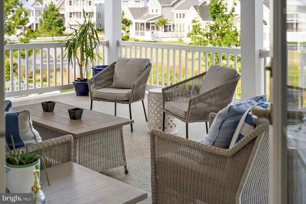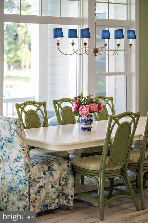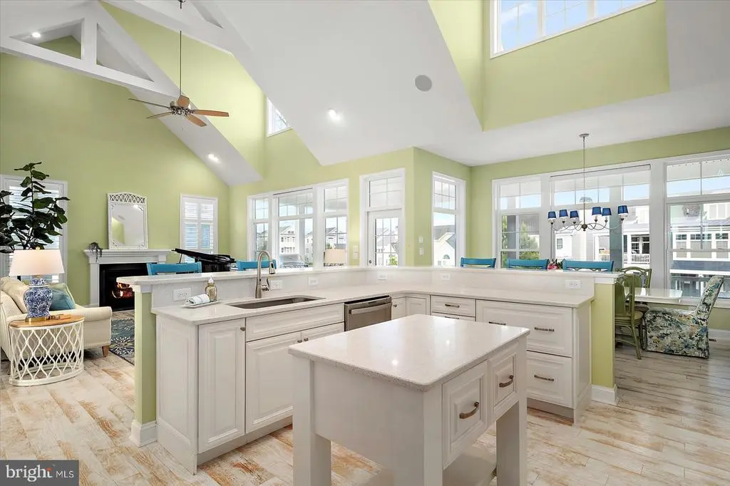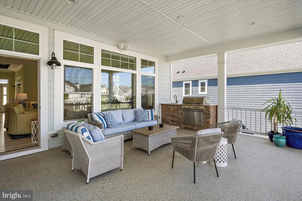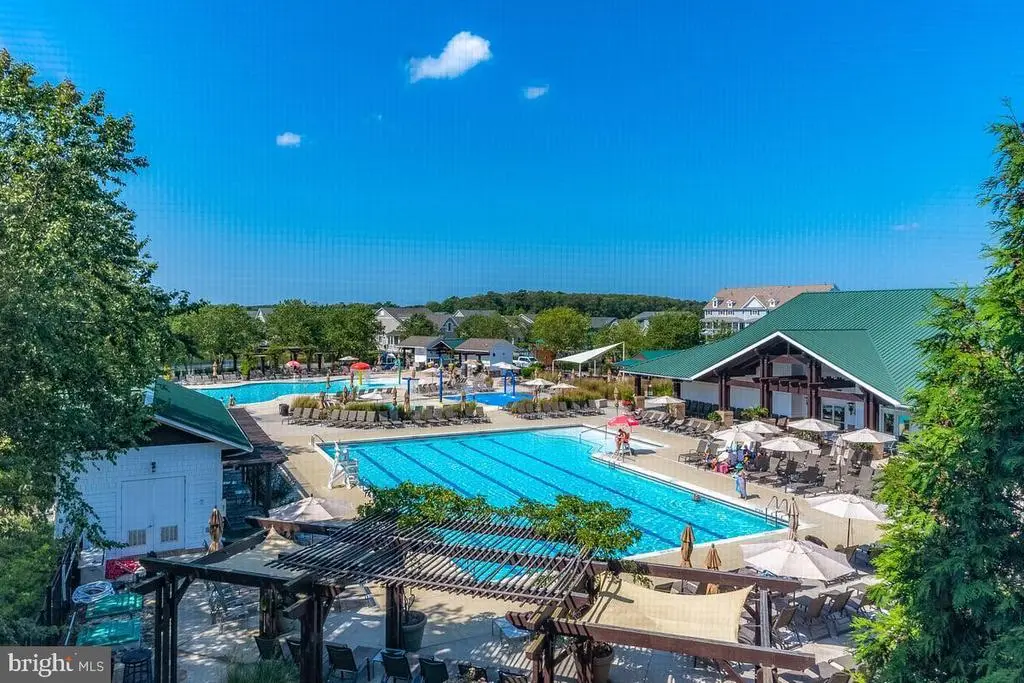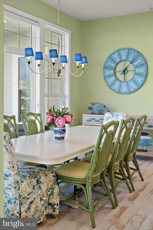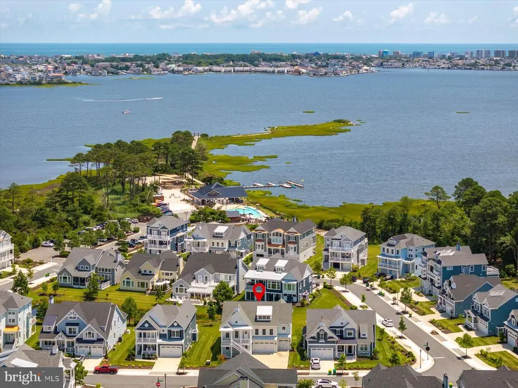 Nestled in the highly desirable Eastpoint Beach enclave of the resort-style Bayside community, this stunning coastal retreat blends sophisticated luxury with laidback charm. Offering four spacious bedrooms and four and a half baths, the home features soaring ceilings, whitewashed hardwood floors, shiplap wainscoting, painted beams, and an abundance of natural light. With a reverse floor plan, the main living area is located on the second floor, providing privacy and sweeping views of the tranquil pond and fountain. Step onto the expansive covered veranda with a built-in grill and sink. Perfect for quiet morning coffee and sunset gatherings. Back inside, the open concept allows for entertaining ease. The chef’s kitchen is a stunning expression of coastal charm, featuring a gas cooktop and wall oven, premium stainless steel appliances, quartz counters, island, walk-in pantry, ample counter seating, and counter space for prepping large meals. The sizeable dining area with large windows overlooking the veranda makes hosting a true delight. The spacious, light, and bright family room with upper windows and a gas fireplace couldn't be more comfortable. The primary suite is the perfect ending to a beach-filled day with dual walk-in closets, a luxurious spa-inspired bath with two vanities, a separate water closet, a soaking tub, a tiled walk-in shower, and private access to the laundry room. The versatile front bedroom with French doors and its own private bath currently serves as an office, while the lower level offers two additional guest suites, one with an en-suite bath, and another conveniently near the second full bath. The 1st floor den has custom-built-ins, a wet bar with beverage fridge, and large windows. Access to the screened porch with easy breeze windows and the outdoor covered patio. Access to the oversized three-bay garage is also on this level. This oversized homesite is just steps away from The Point with the 38 Degrees Coastal Eatery, crabbing, and fishing pier, kayak launch, and paddle boarding. Bayside boasts unparalleled amenities that include a health and aquatic club, indoor lap swimming pools, a state-of-the-art fitness center, and a sauna. Outdoor swimming pools with splash zones, hot tubs, poolside bar/grille, Basketball, tennis, and racquetball courts, and playgrounds. Take the beach shuttle, lounge on the bayfront beach, listen to live performances at Freeman Stage, and walk or bike on the many trails available. With multiple porches, ample space for all, proximity to all of the amenities that Bayside offers, its location less than 5 miles to the magnificent beaches of Fenwick Island and Ocean City, makes this special home more than just a beach house.