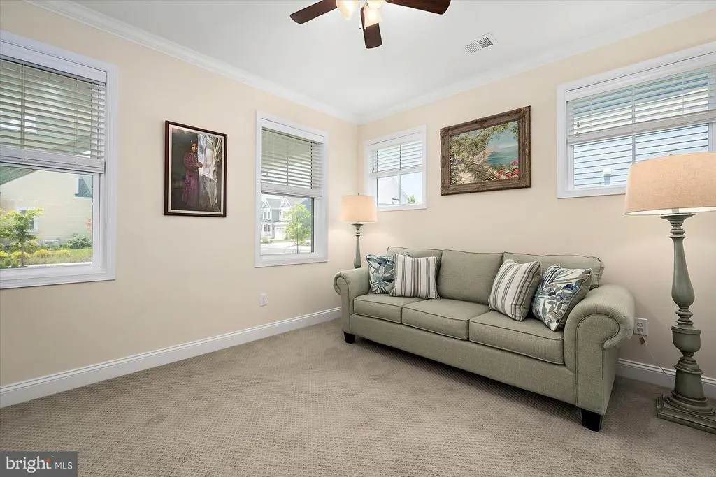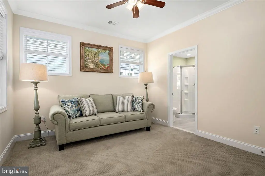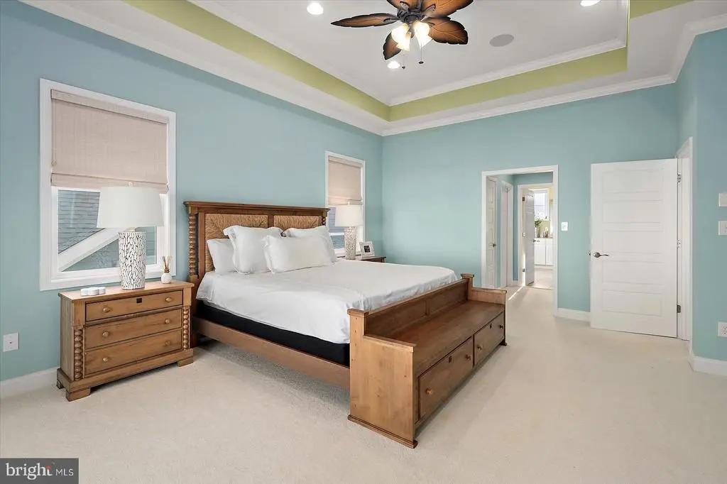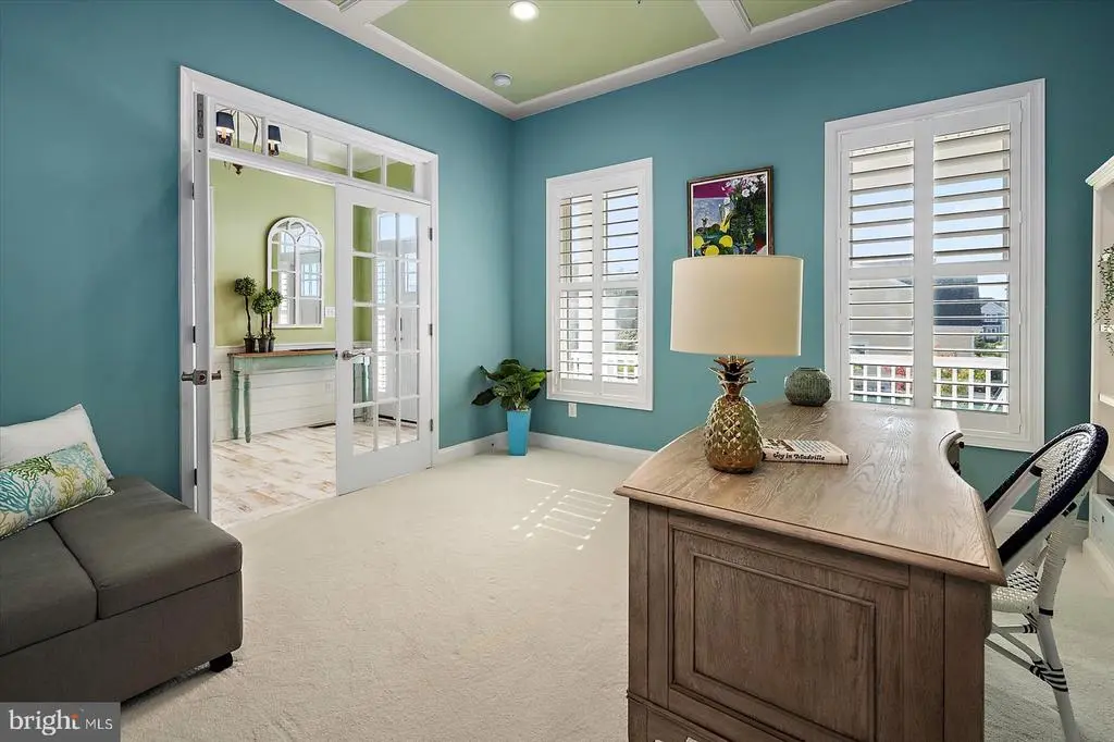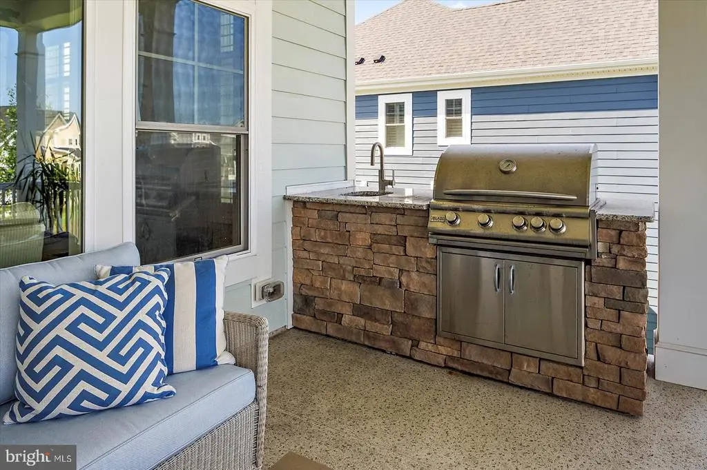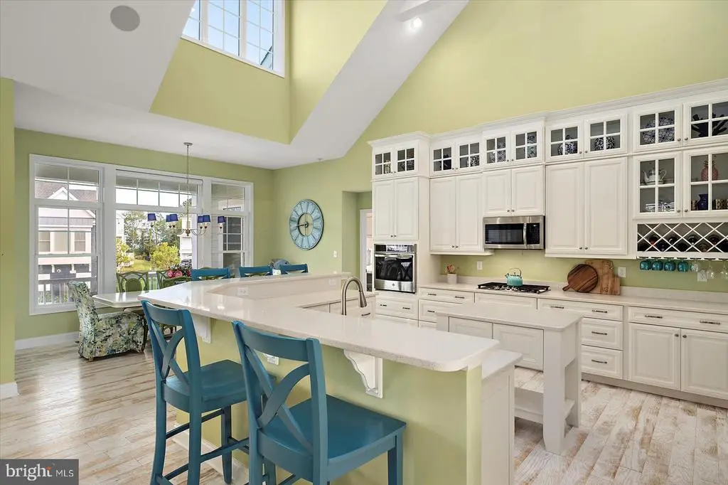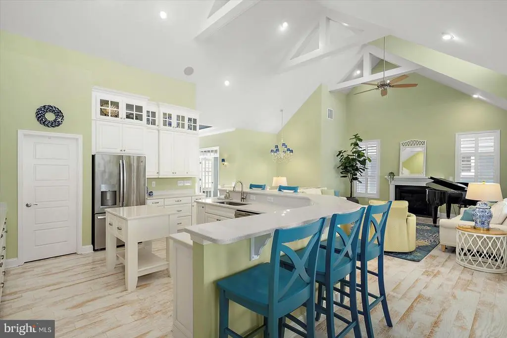Nestled in the highly desirable Eastpoint Beach enclave of the resort-style Bayside community, this stunning coastal retreat blends sophisticated luxury with laidback charm. Offering four spacious bedrooms and four and a half baths, the home features soaring ceilings, whitewashed hardwood floors, shiplap wainscoting, painted beams, and an abundance of natural light. With a reverse floor plan, the main living area is located on the second floor, providing privacy and sweeping views of the tranquil pond and fountain. Step onto the expansive covered veranda with a built-in grill and sink. Perfect for quiet morning coffee and sunset gatherings. Back inside, the open concept allows for entertaining ease. The chef’s kitchen is a stunning expression of coastal charm, featuring a gas cooktop and wall oven, premium stainless steel appliances, quartz counters, island, walk-in pantry, ample counter seating, and counter space for prepping large meals. The sizeable dining area with large windows overlooking the veranda makes hosting a true delight. The spacious, light, and bright family room with upper windows and a gas fireplace couldn't be more comfortable. The primary suite is the perfect ending to a beach-filled day with dual walk-in closets, a luxurious spa-inspired bath with two vanities, a separate water closet, a soaking tub, a tiled walk-in shower, and private access to the laundry room. The versatile front bedroom with French doors and its own private bath currently serves as an office, while the lower level offers two additional guest suites, one with an en-suite bath, and another conveniently near the second full bath. The 1st floor den has custom-built-ins, a wet bar with beverage fridge, and large windows. Access to the screened porch with easy breeze windows and the outdoor covered patio. Access to the oversized three-bay garage is also on this level. This oversized homesite is just steps away from The Point with the 38 Degrees Coastal Eatery, crabbing, and fishing pier, kayak launch, and paddle boarding. Bayside boasts unparalleled amenities that include a health and aquatic club, indoor lap swimming pools, a state-of-the-art fitness center, and a sauna. Outdoor swimming pools with splash zones, hot tubs, poolside bar/grille, Basketball, tennis, and racquetball courts, and playgrounds. Take the beach shuttle, lounge on the bayfront beach, listen to live performances at Freeman Stage, and walk or bike on the many trails available. With multiple porches, ample space for all, proximity to all of the amenities that Bayside offers, its location less than 5 miles to the magnificent beaches of Fenwick Island and Ocean City, makes this special home more than just a beach house.