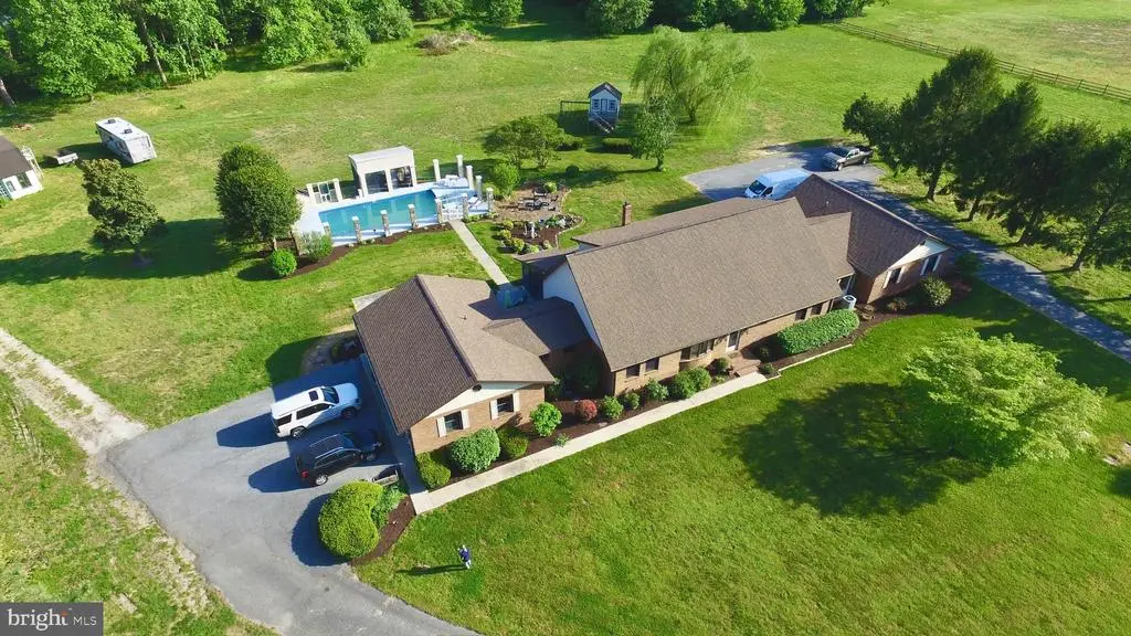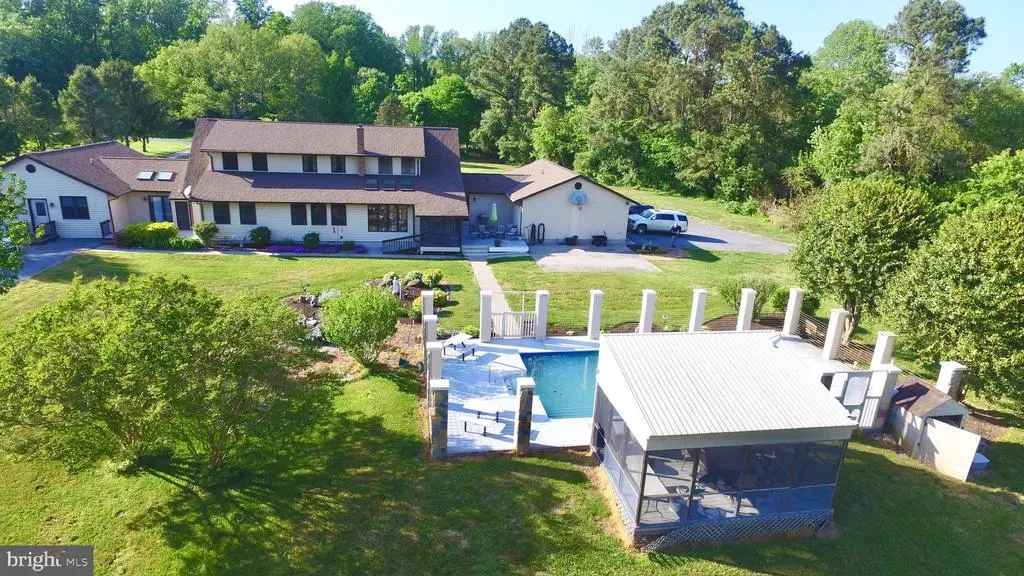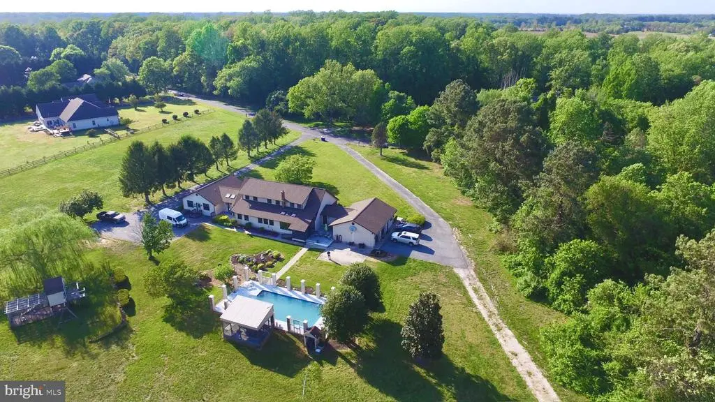East of Rt. One. This large home with an attached home office with separate entrance. The office was used for the owners' parents as a 2 bedroom, 1.5 bath apartment with LR, eat-in kitchen,sunroom and laundry, so hook-ups are in place. It is approx. 1222 sq.ft, making the home sq ft. approx. 3732.The main house has 5 bedrooms, 3.5 baths. First floor has foyer entrance, LR (serves as a game room), carpeted family room, Sunroom, large eat in kitchen, formal dining room, laundry room going to the garage. The kitchen has granite countertops and was updated approx. 4 years ago. also soft close maple cabinets. The sunroom is off the kitchen with large windows overlooking the pool and beautiful gardens and leads out to a screen in porch, and the pool area also has a screened in area. There are two bedrooms on the first floor. This home has a lot of built in shelving, storage areas, and the family room has pocket doors and an electric fireplace with heat and colors and a built in TV above it. There is a geothermal heat pump for the first floor, a heat pump on the second floor and another heat pump for the office space. This spacious home was built by a local contractor-CFS Construction, having an excellent reputation throughout lower Delaware. There is a large barn in the back with concrete flooring, and a garage door with opener, and a loft area. The property has 550 ft. on Old Mill Creek. From this property, it is 7 miles to Lewes Beach. If you are looking for wildlife acreage, seclusion , serenity, peace and quiet, this could be your place. This property is well suited for horses, gardening, with low maintenance fees. the acreage goes down to the middle of Old Mill Creek. Some furniture could be for sale. The few chickens can stay or go.