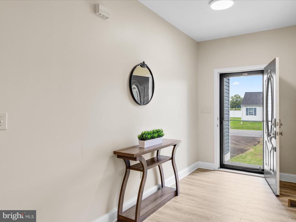 Welcome to 18362 Pin Oak Street, a delightful contemporary retreat just north in Ellendale, built in 2021 and brimming with charm, function, and style. Whether you're searching for a starter home, a forever nest, or a weekend coastal escape, this almost-new custom-built home offers the perfect blend of modern living and small-town ease. Wrapped in a coastal palette of soft blue, gray, and crisp white, the exterior is accented with board-and-batten details and tin roof trim that add architectural flair and curb appeal. Inside, the home unfolds with luxury vinyl plank flooring that runs throughout, creating a seamless flow and enhancing the sense of space. Step into the living room and you’ll instantly feel at home. The open layout carries into the dining area and continues into a thoughtfully designed kitchen featuring white shaker-style cabinetry with bold black hardware, a wide stainless steel sink framed by a sunny window, and a suite of stainless steel appliances ready for your favorite recipes. An atrium door opens from the dining space to the rear deck, perfect for alfresco dinners or morning coffee under the sky. Just off the kitchen, a laundry room provides a functional connection to the two-car garage, while a nearby closet offers the option to be converted into a pantry for added storage. Designed for easy single-level living, this home offers three bedrooms and two full baths. The spacious primary suite invites relaxation with room for a sitting area, a large walk-in closet, and a private ensuite bath. Two additional bedrooms, each with its own charm, share a well-appointed hall bath with a tub-shower combination. Outside, a detached garage adds even more flexibility, whether you're storing outdoor gear, setting up a workshop, or tucking away your beach chairs after a day on the coast. Located within walking distance to the quaint town center of Ellendale, you’re just minutes from local favorites like the beloved Southern Grille, known for its down-home cooking and delectable baked goods. When adventure calls, you’ll find easy access to Route 113, the historic town of Milton, and the sun-soaked Delaware Bay beaches just a short drive away.