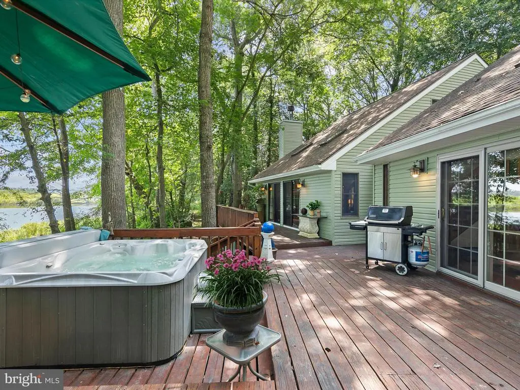 A Unique Waterfront Retreat at Wood Duck Hollow Nestled along the tranquil shoreline of Goslee Mill Pond, welcome to 19082 Robinsonville Road, a custom-designed coastal retreat that seamlessly blends contemporary architecture with the warmth of a cabin-like sanctuary. This is not just a home, it’s a waterfront experience, uniquely suited for serene everyday living or an unforgettable destination rental. From the moment you arrive, you’ll sense the difference. Inside, an airy open layout unfolds beneath vaulted ceilings and brilliant skylights. Walls of glass sliders frame panoramic views of the pond and surrounding woodlands, flooding the home with natural light and connecting every room to the outdoors. Custom millwork, gleaming hardwood floors, and thoughtful design elements make every space feel purposeful and inviting. The main living area offers a cozy yet grand setting anchored by a handsome brick fireplace, perfect for curling up on cool evenings. The chef’s kitchen is a showstopper, with custom solid wood display cabinetry, stainless steel appliances, an island with breakfast bar, and a built-in bar nook that makes entertaining effortless. Serve meals at the island, gather in the adjacent dining room, or take the celebration outdoors to the expansive rear deck, where nature’s beauty becomes your backdrop. Need a quiet place to work or unwind? A light-filled solarium just off the dining area is the ideal retreat for reading, reflection, or remote work. On the same wing of the home, a guest bedroom features a private balcony and ensuite bath, while a lofted family room and additional guest bedroom with ensuite await upstairs, perfect for visitors or multi-generational living. On the opposite end of this thoughtfully planned home lies the primary bedroom suite. Under vaulted ceilings and warmed by its own fireplace, the bedroom offers a peaceful sitting area and a wall of windows capturing the pond’s ever-changing vistas. The suite includes a walk-in dressing area with direct access to a spa-like ensuite bath. An upper-level loft and additional guest bedroom, complete with balcony and private bath, offer even more flexibility for guests or family. A large mudroom and laundry area with separate entry provide practical storage and everyday convenience, while the outdoors invites you to stay a while longer. Multiple zones along the elevated deck offer places to lounge, dine, soak in the hot tub, or simply take in the rustling trees and wildlife that surround you. Gardeners will be delighted with a charming potting shed, complete with chandelier, two greenhouses, a storage shed for tools, and lush grounds ready for your green thumb. Two private piers extend into the pond, granting direct access to explore the water by paddleboard or kayak, right from your own backyard. Whether you're dreaming of a one-of-a-kind primary residence, an inspiring second home, or a unique income-generating retreat, this property delivers. Its layout offers the potential for two families to share space comfortably, which is ideal for Airbnb or multi-generational stays. And with its location just minutes from the coastal resort towns of Lewes and Rehoboth Beach, upscale shopping, dining, and endless stretches of pristine shoreline are all within easy reach. Come see this magical waterfront haven for yourself, there’s nothing else quite like it. Schedule your private tour today.