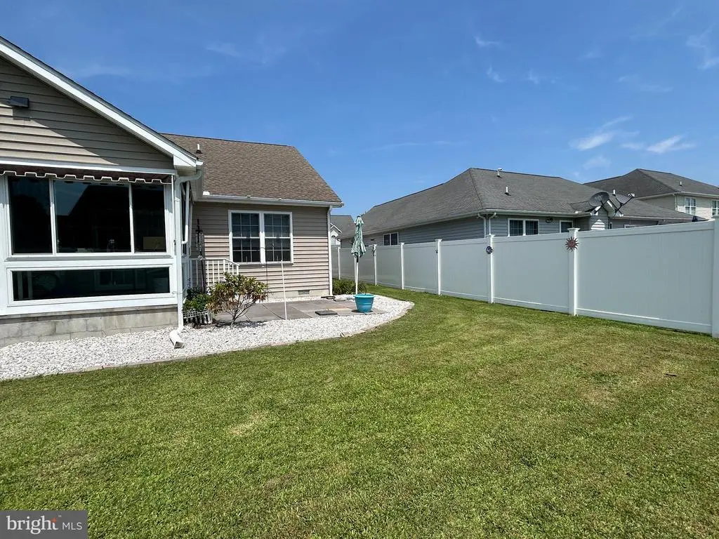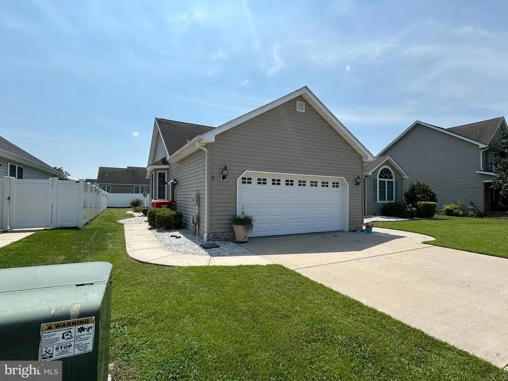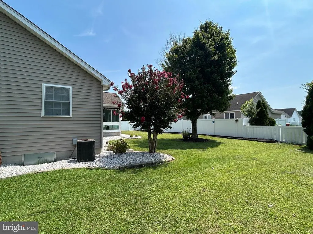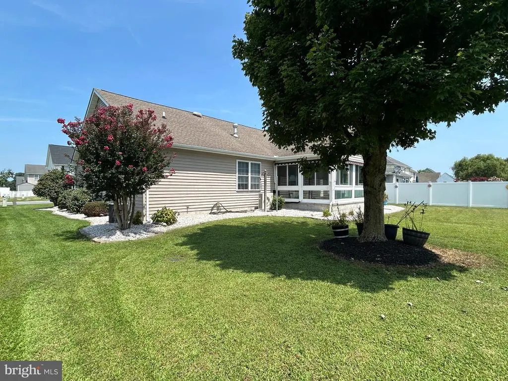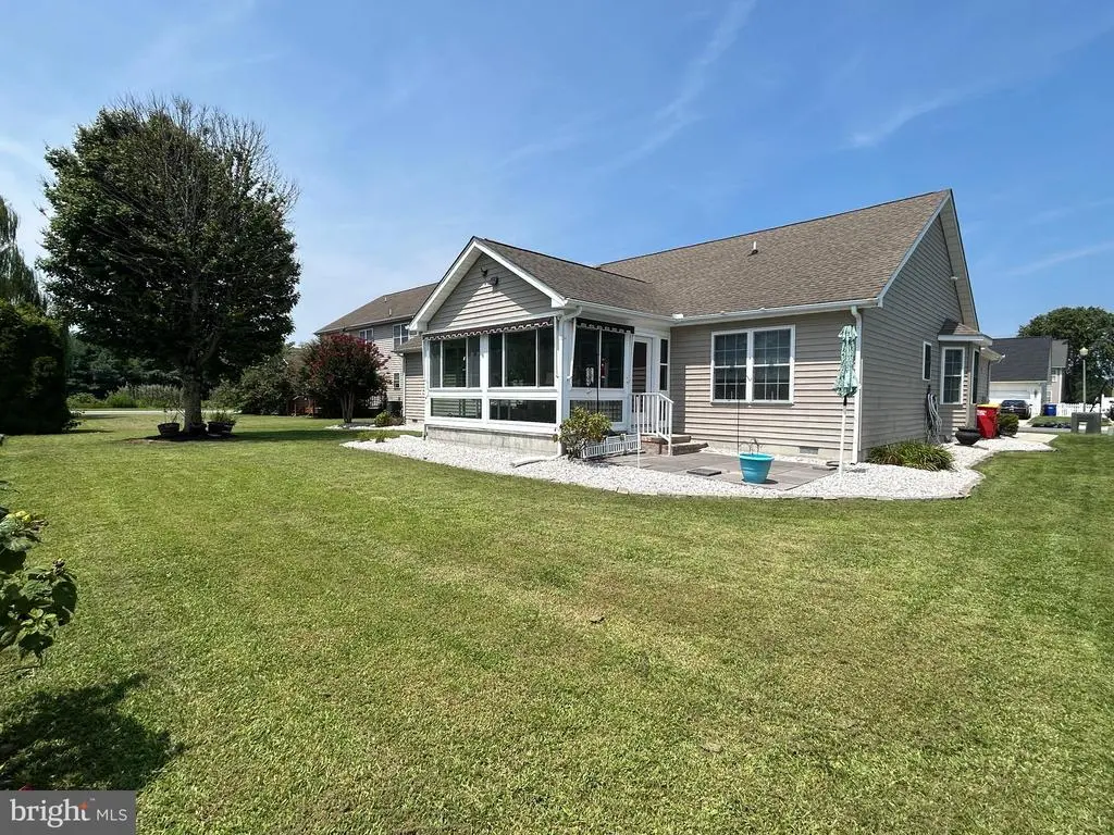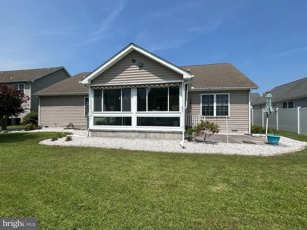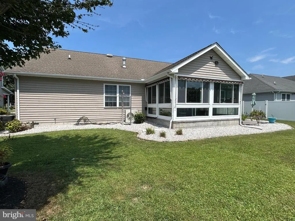 Welcome to this beautifully maintained one-level home built in 2006, and located in the desirable community of Governor’s Grant off Atlanta Road in Seaford, DE. From the moment you arrive, the curb appeal is enhanced by tasteful landscaping, a covered front entry, and a spacious two-car garage. Step inside to a formal foyer that leads to an expansive living room with vaulted ceilings and a cozy gas fireplace, perfect for gatherings. A formal dining room opens seamlessly to the living area, offering an ideal flow for entertaining. The home showcases oak hardwood flooring throughout the living room, dining room, kitchen, and hallways, adding warmth and elegance. The large kitchen is a chef’s delight, featuring stainless steel appliances, ample cabinetry, and a generous breakfast room filled with natural light. A special touch throughout the home includes electric candle lights, all of which are operated from a single switch for added charm and ease. Offering three spacious bedrooms and two full bathrooms, the primary suite boasts comfort and style. The bathrooms are well-appointed, with plenty of storage space. Enjoy the outdoors year-round in the sun porch, featuring sliding windows, screens, and a mini-split system that provides year-round comfort with AC and heat for three-season use. The private backyard is fenced and beautifully maintained, perfect for relaxing or entertaining. Additional highlights include: •
